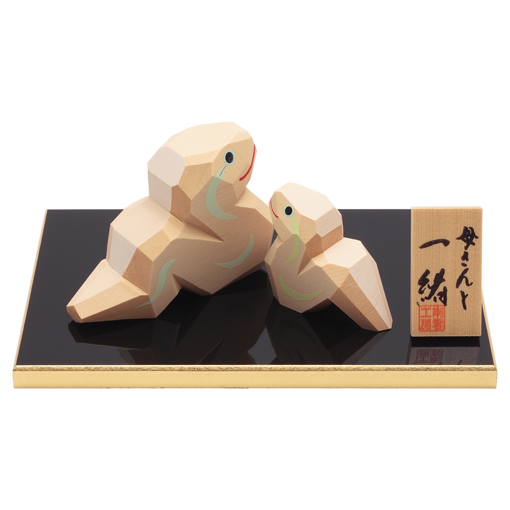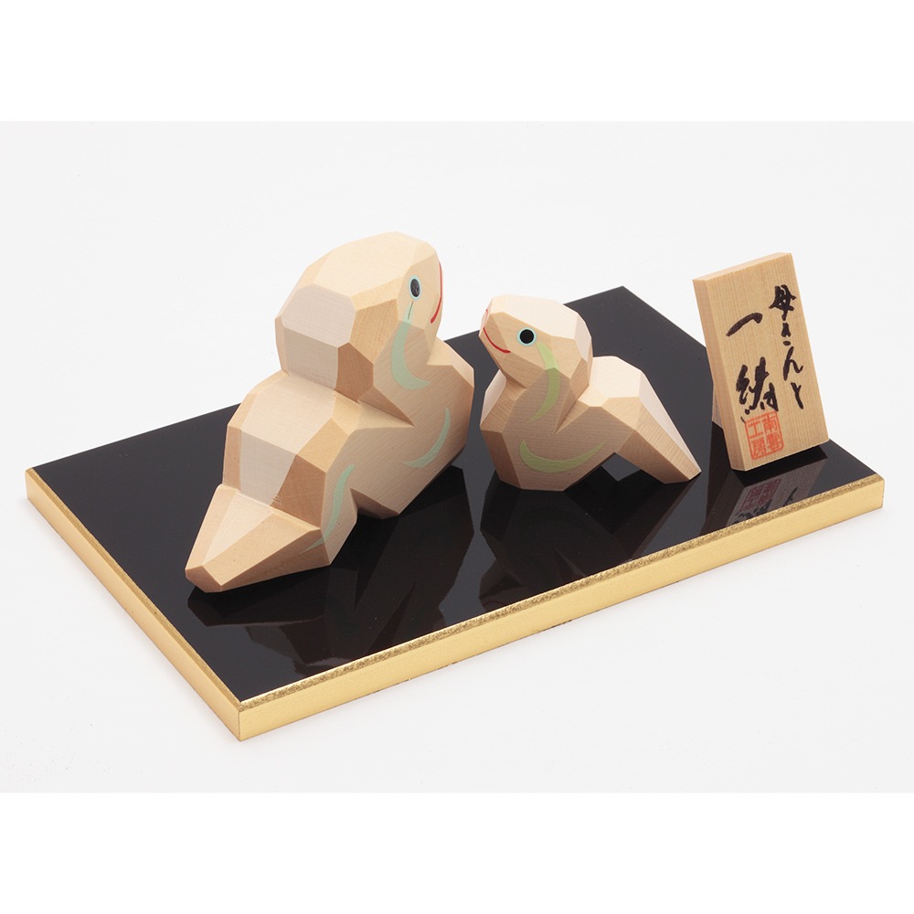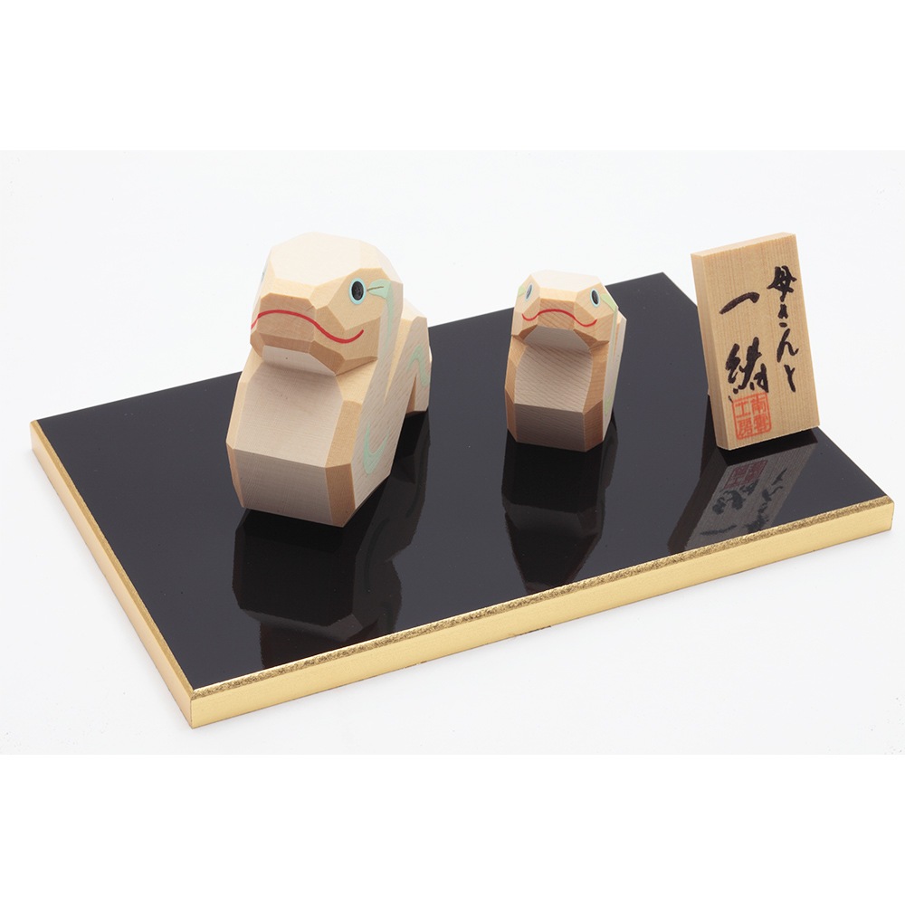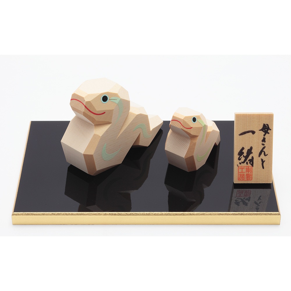 干支小物 一刀彫 母さんと一緒 巳 5EI-5干支小物