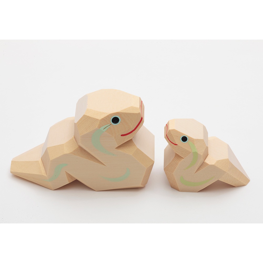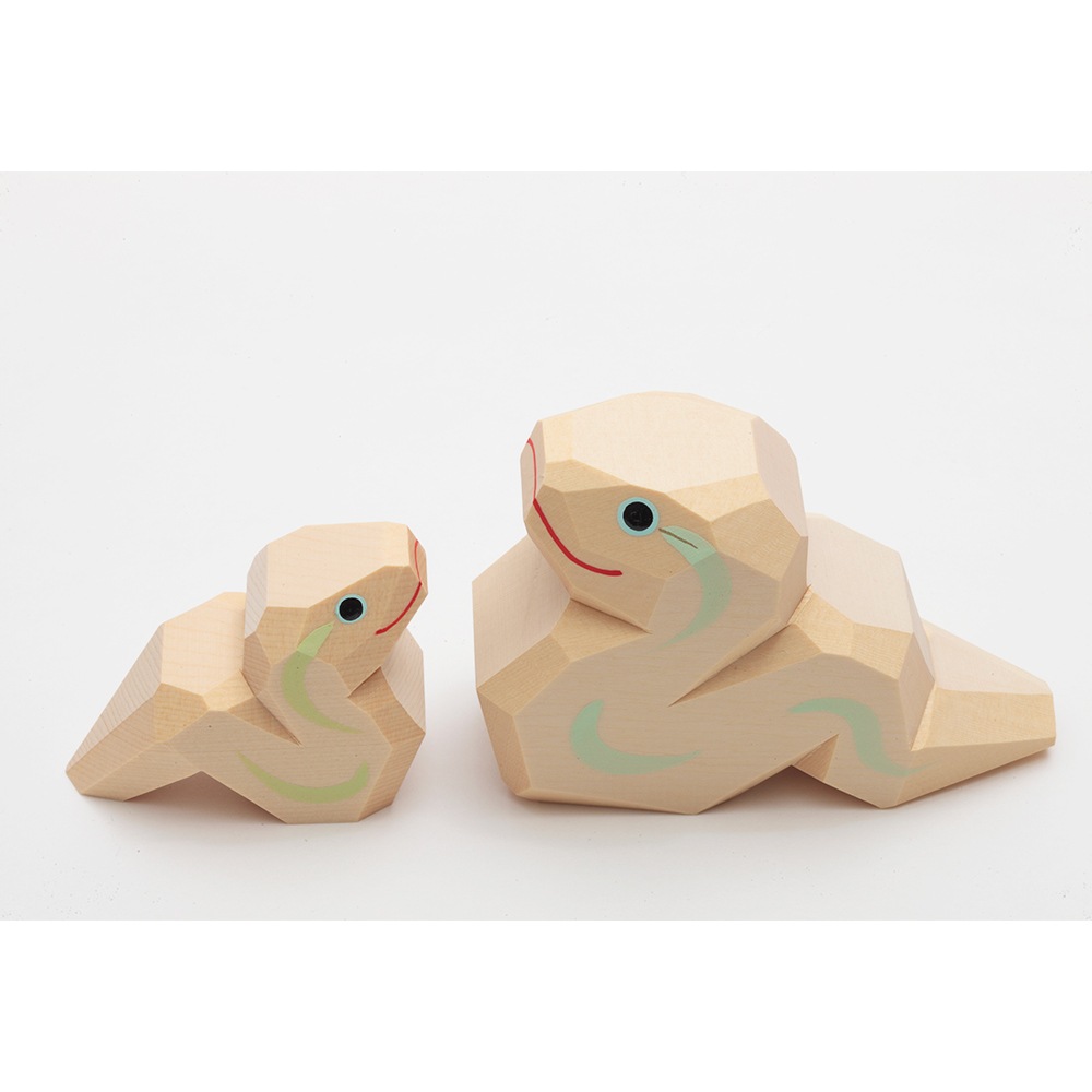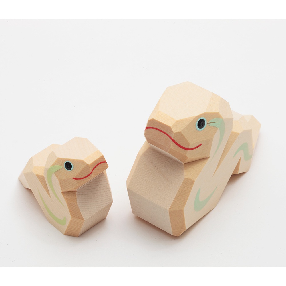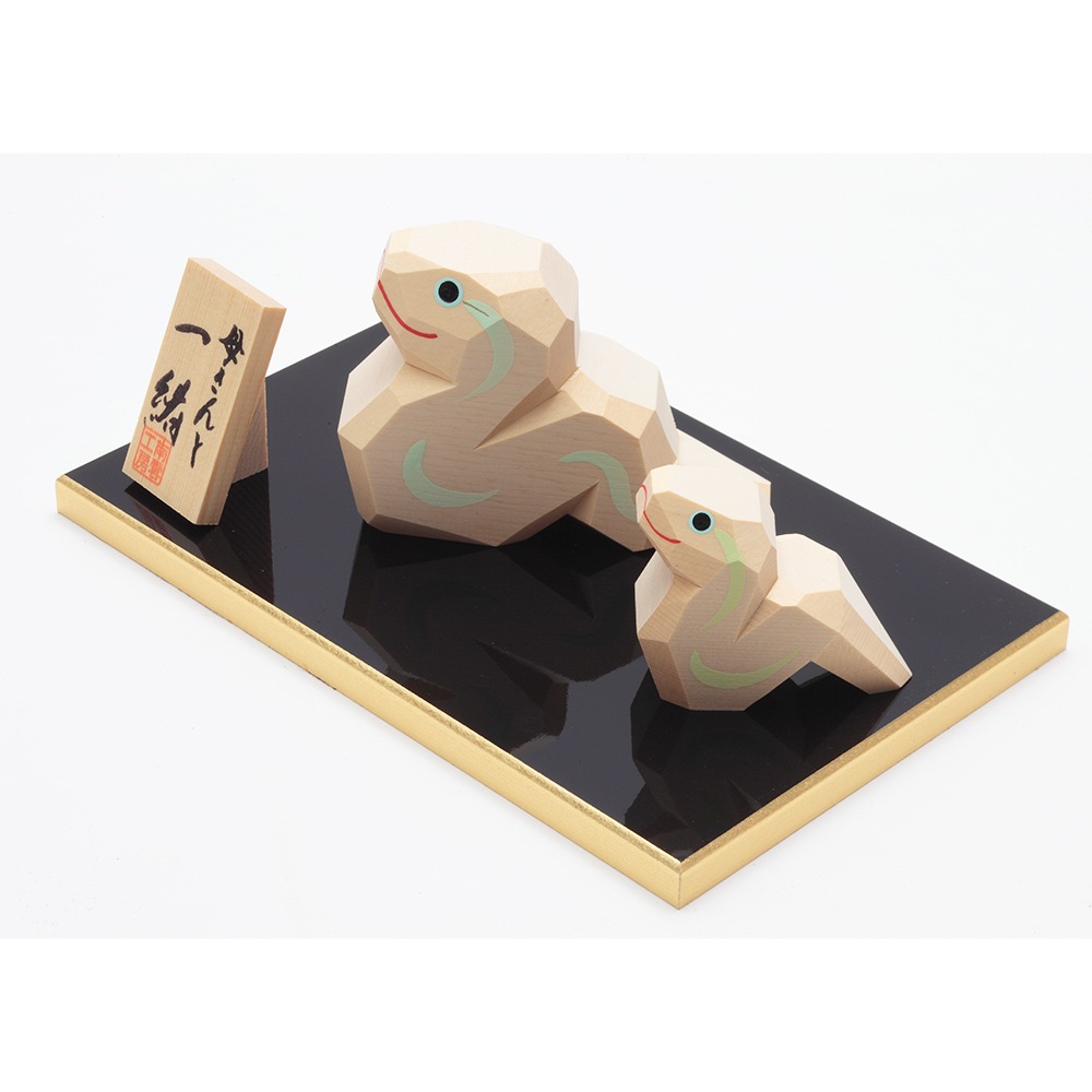 干支小物 一刀彫 母さんと一緒 巳 5EI-5干支小物