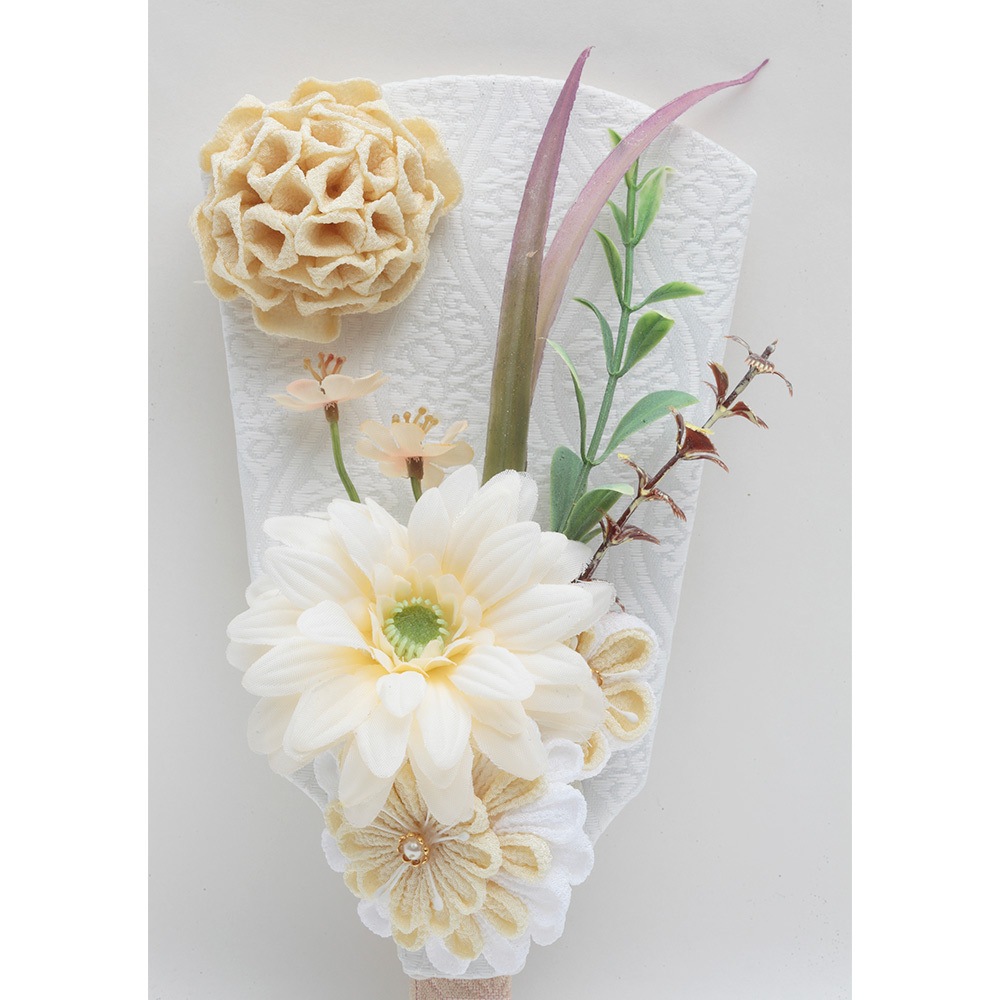 円柱型ケースにブーケを思わせる華やかな羽子板を合わせ、白色を基調としたモダンなデザインが特長で、現代のインテリアとも見事にマッチします。