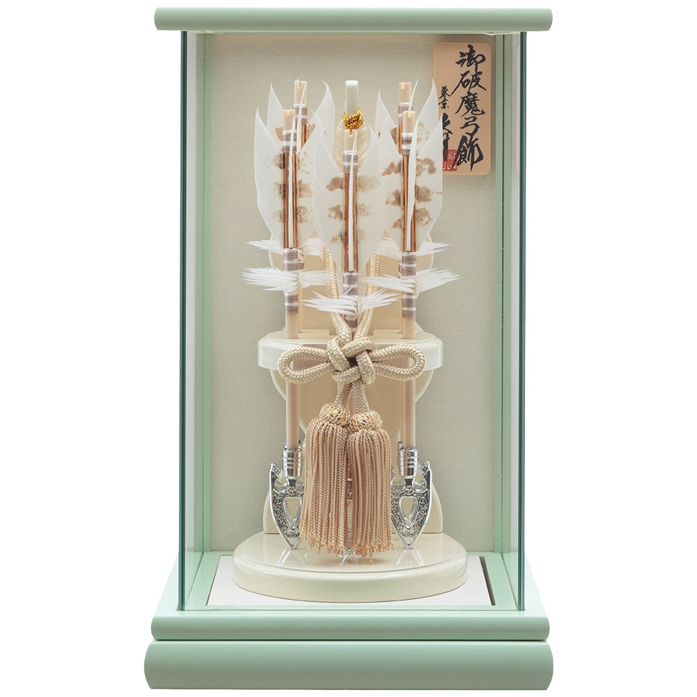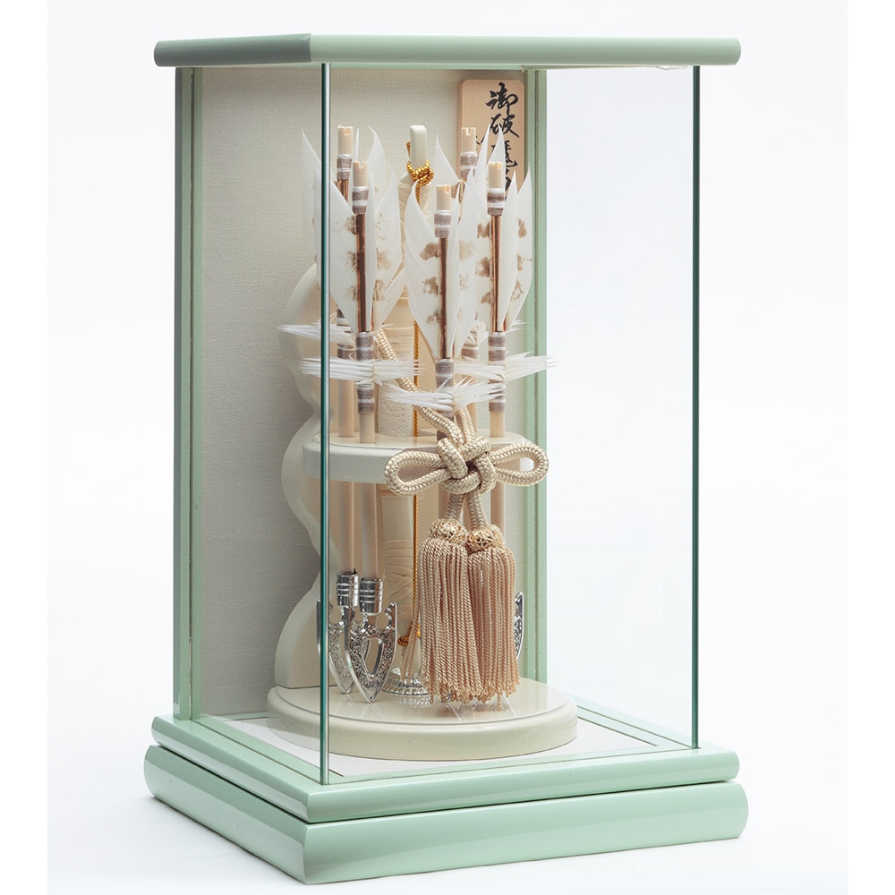ミントグリーンの清涼感が醸し出された破魔弓飾りです。