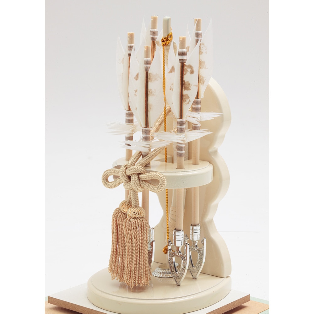 破魔弓は、もともと四方を射って魔を鎮める神事を基としており、原型は鎌倉時代から続く縁起物です。