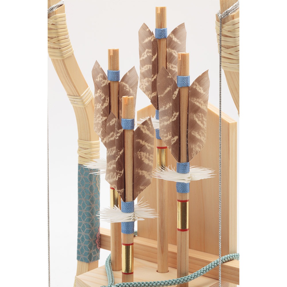 破魔弓は、もともと四方を射って魔を鎮める神事を基としており、原型は鎌倉時代から続く縁起物です。
