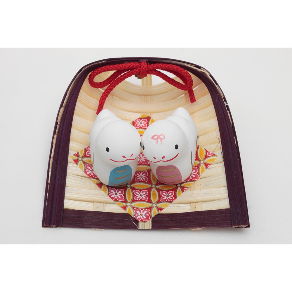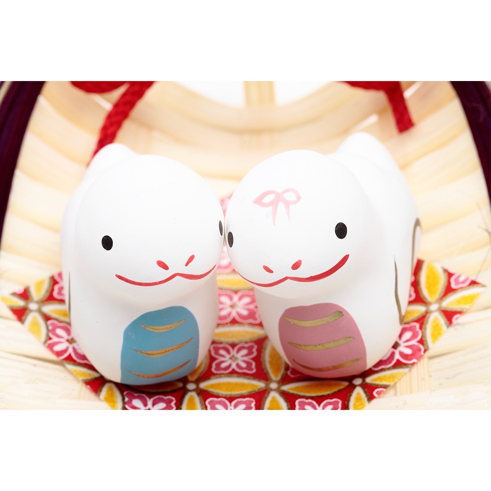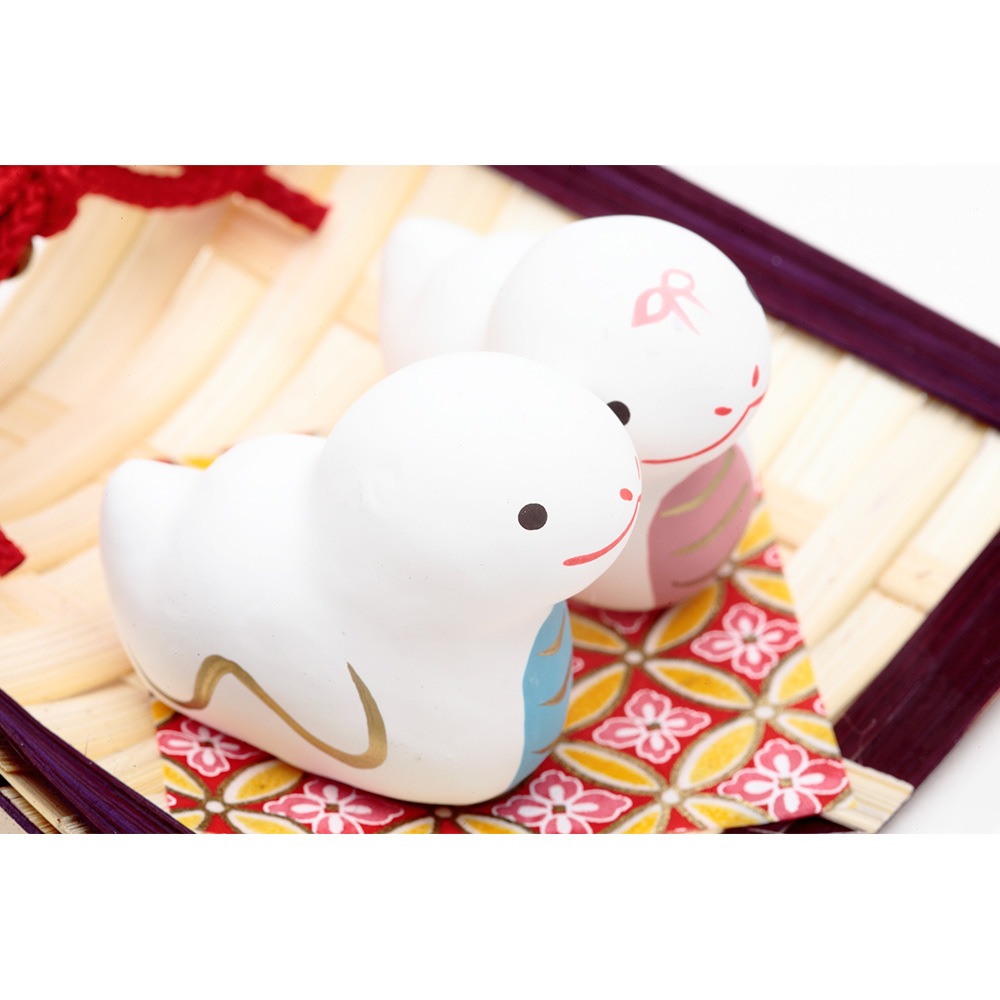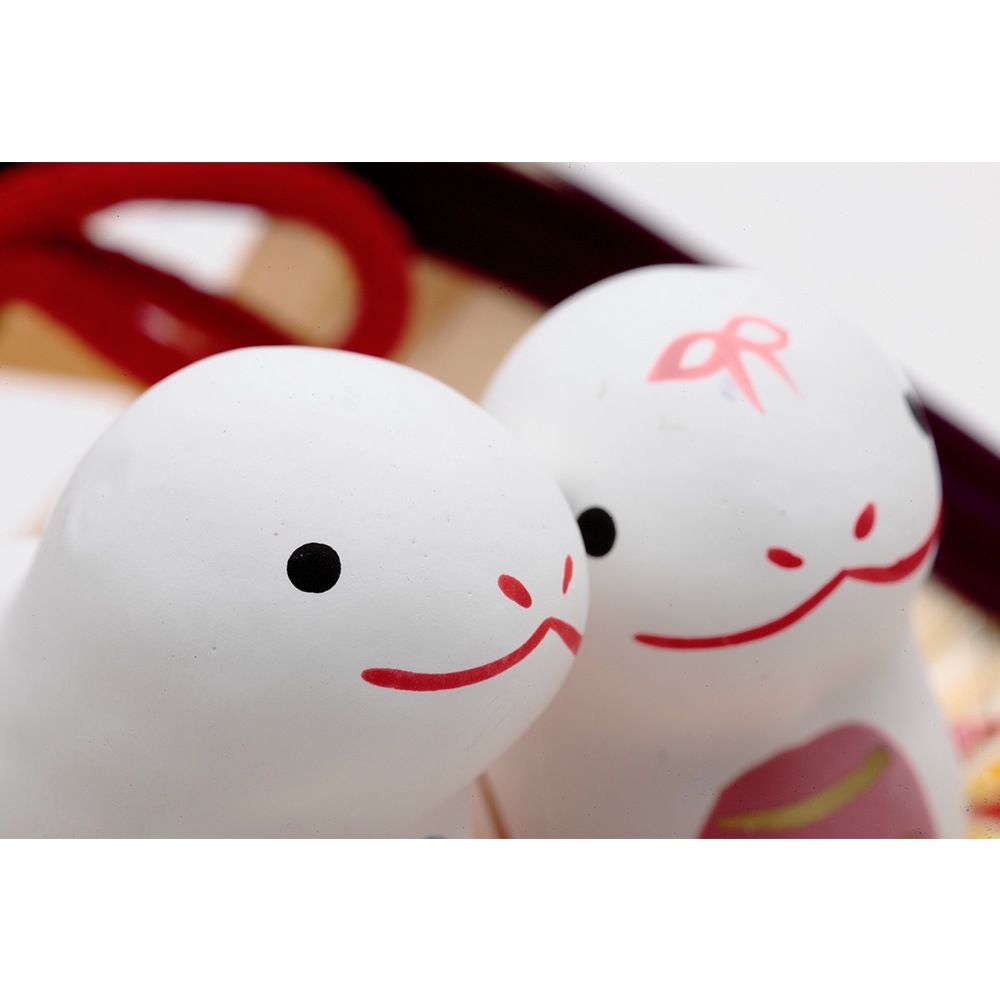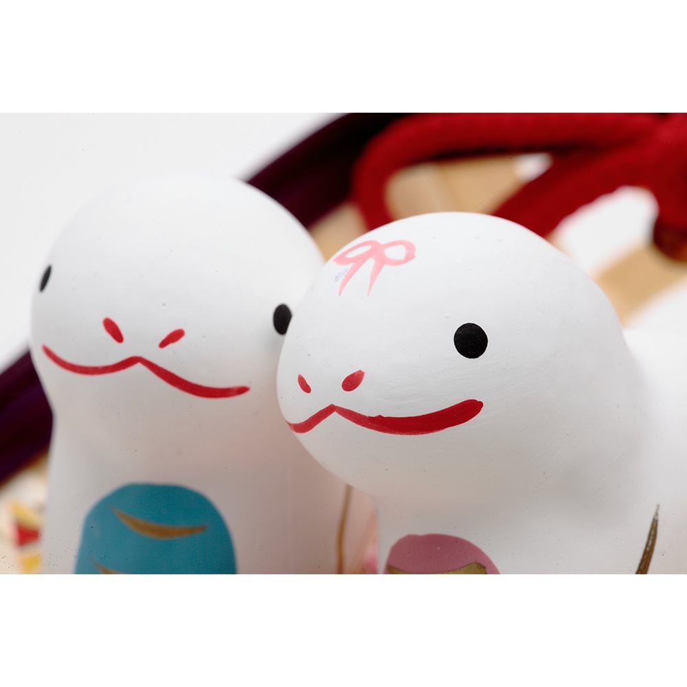 二匹の白色の巳がそろった、かわいらしい巳の干支飾りです。