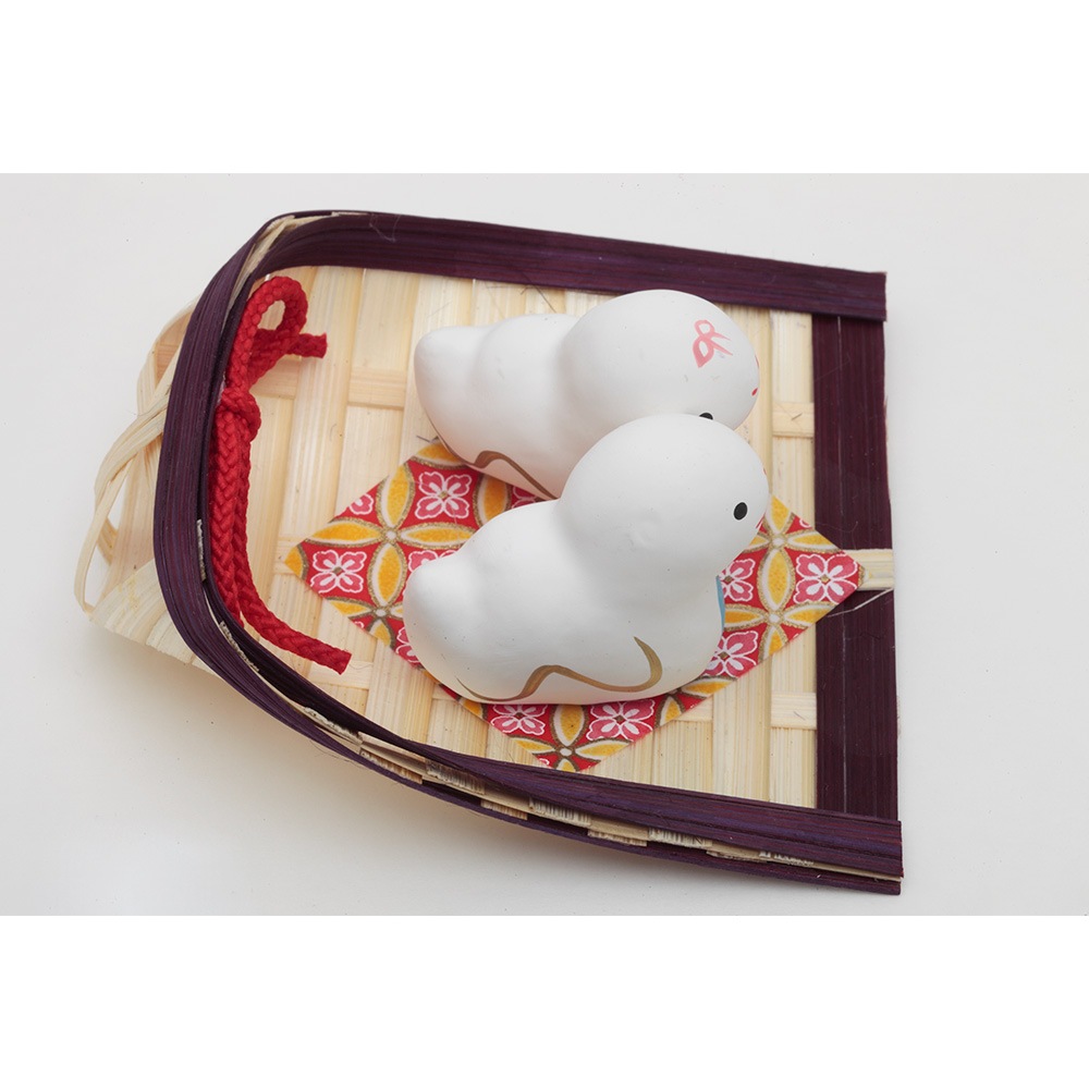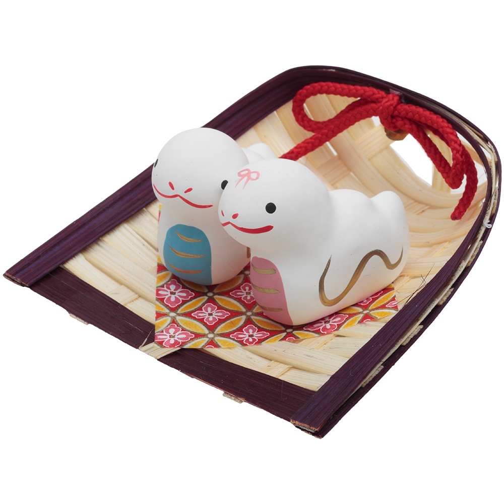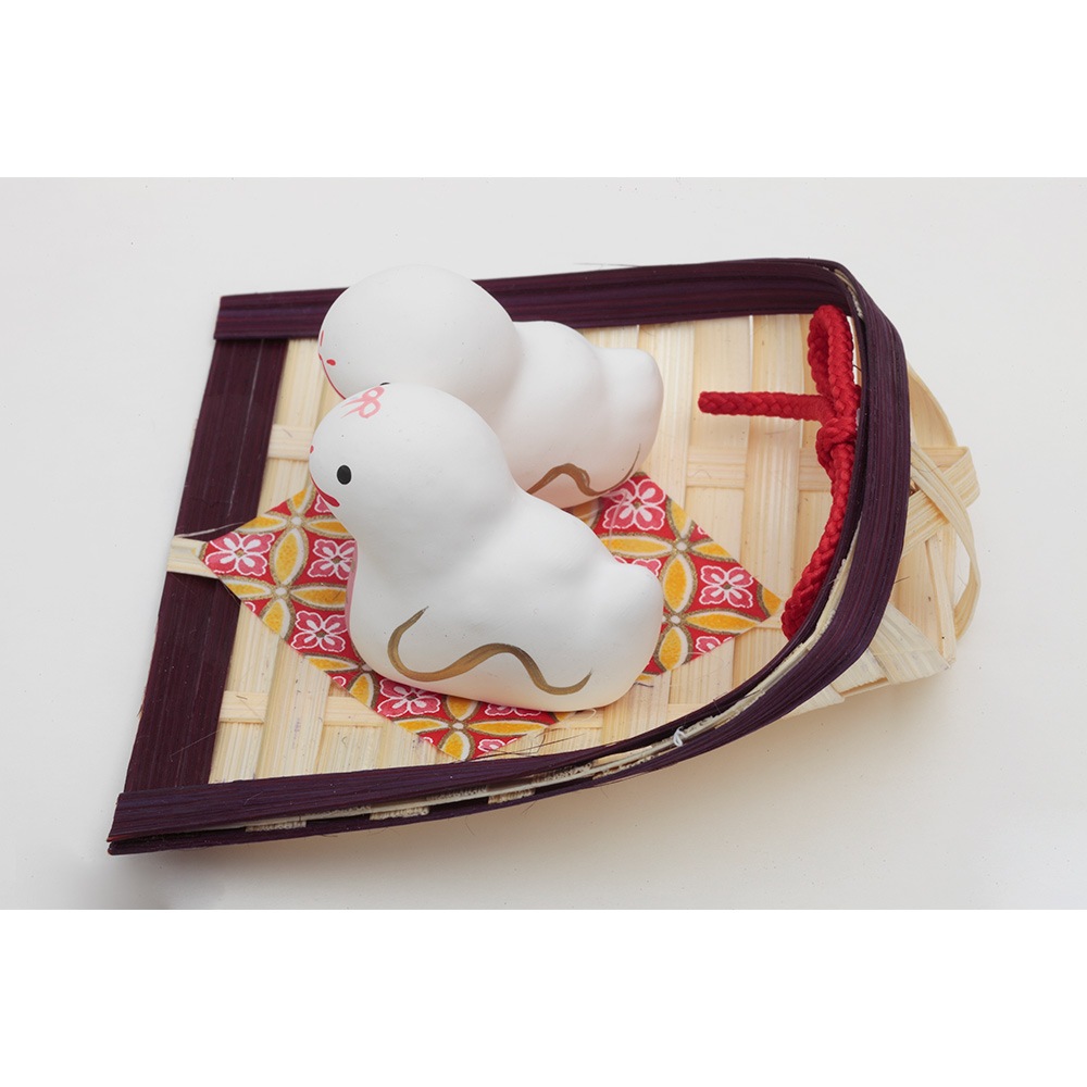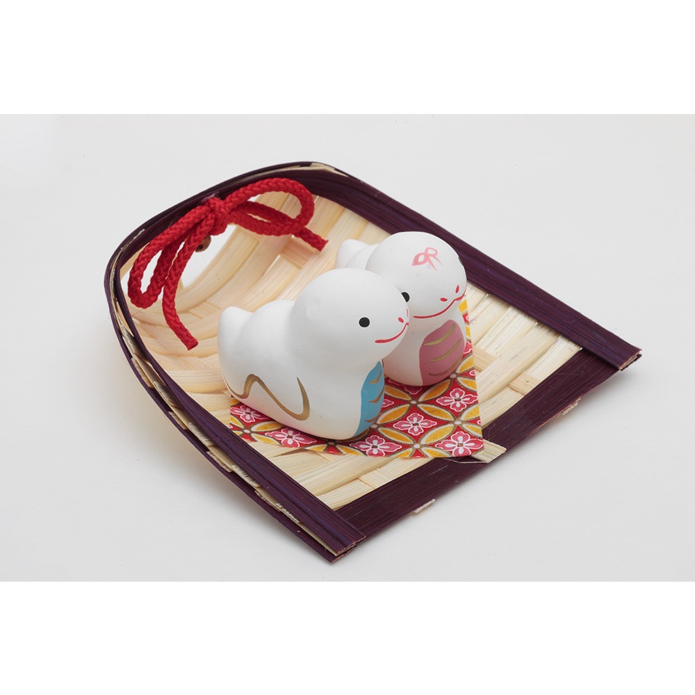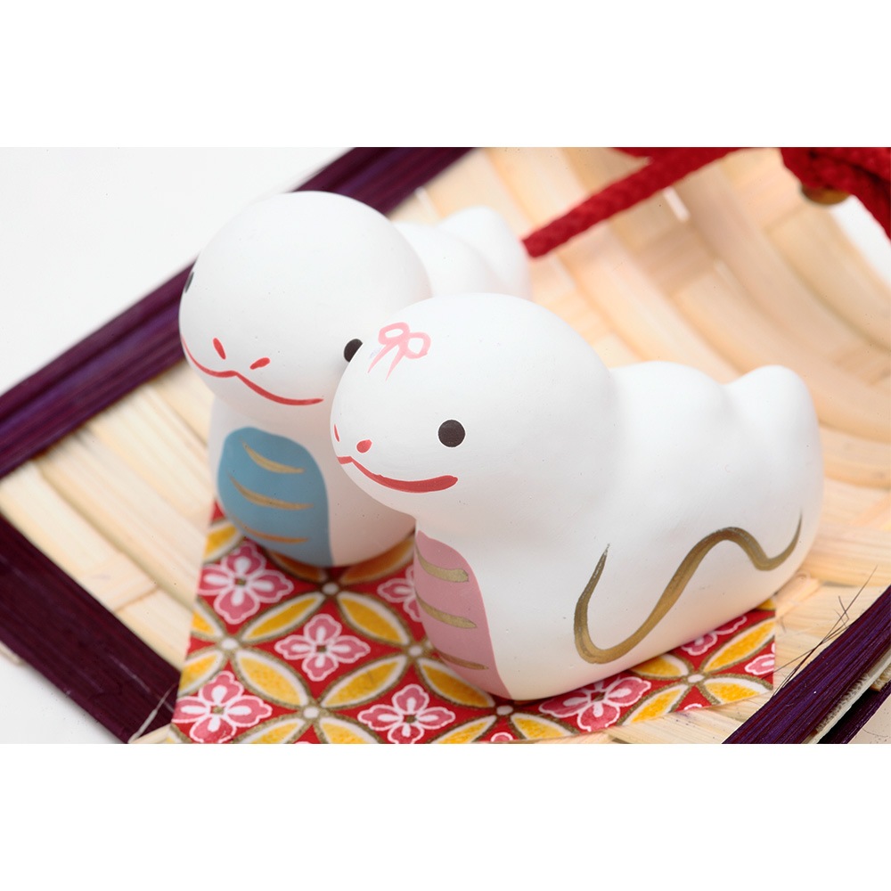 二匹の白色の巳がそろった、かわいらしい巳の干支飾りです。