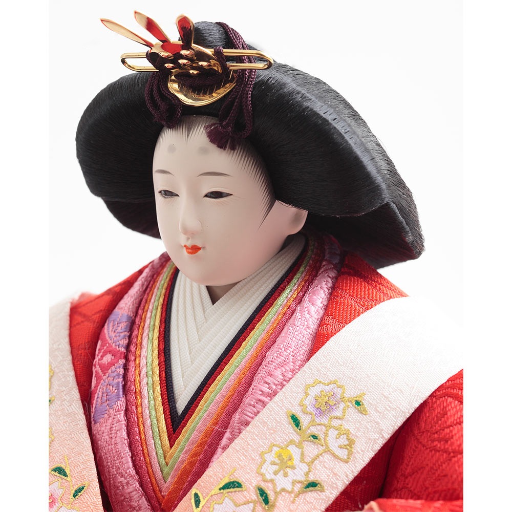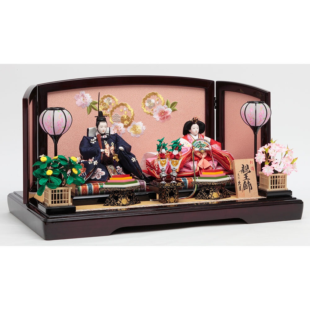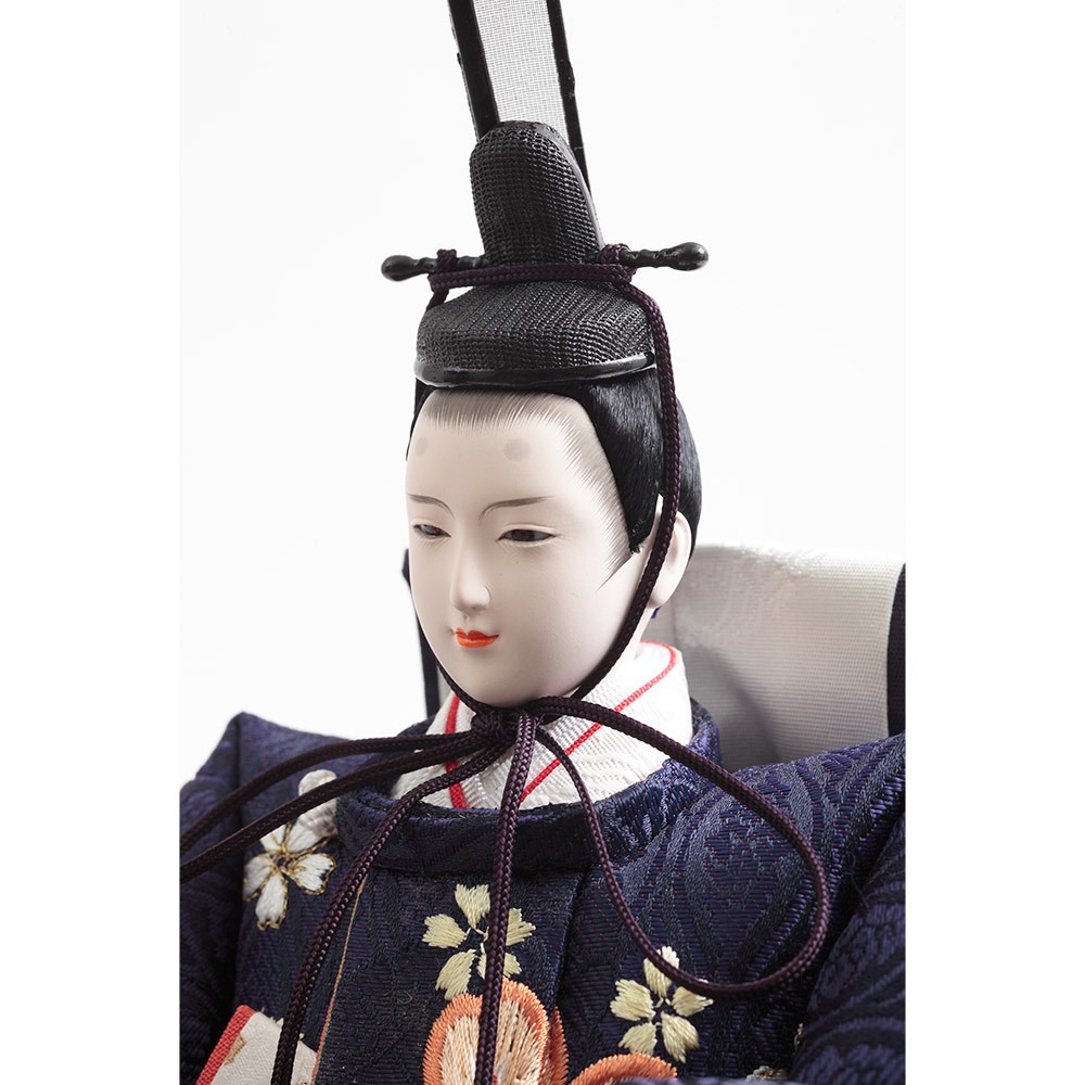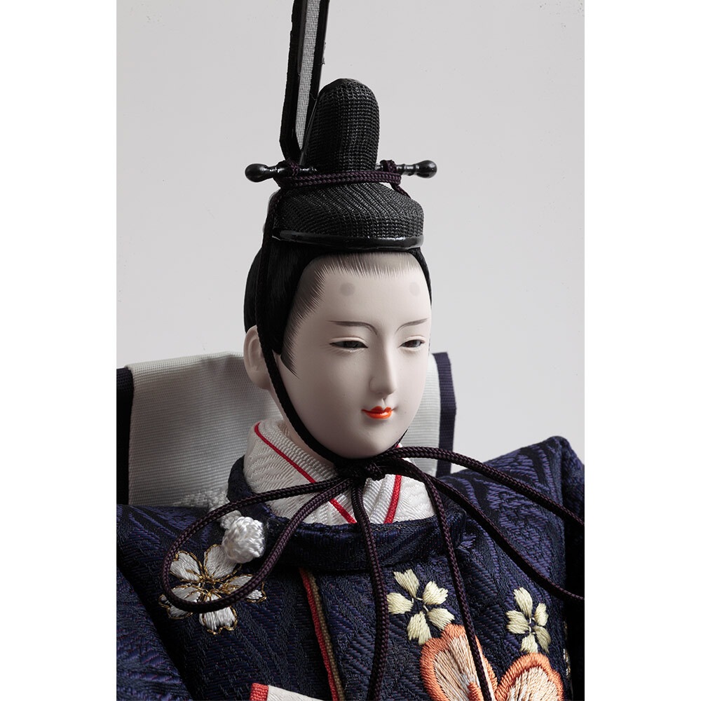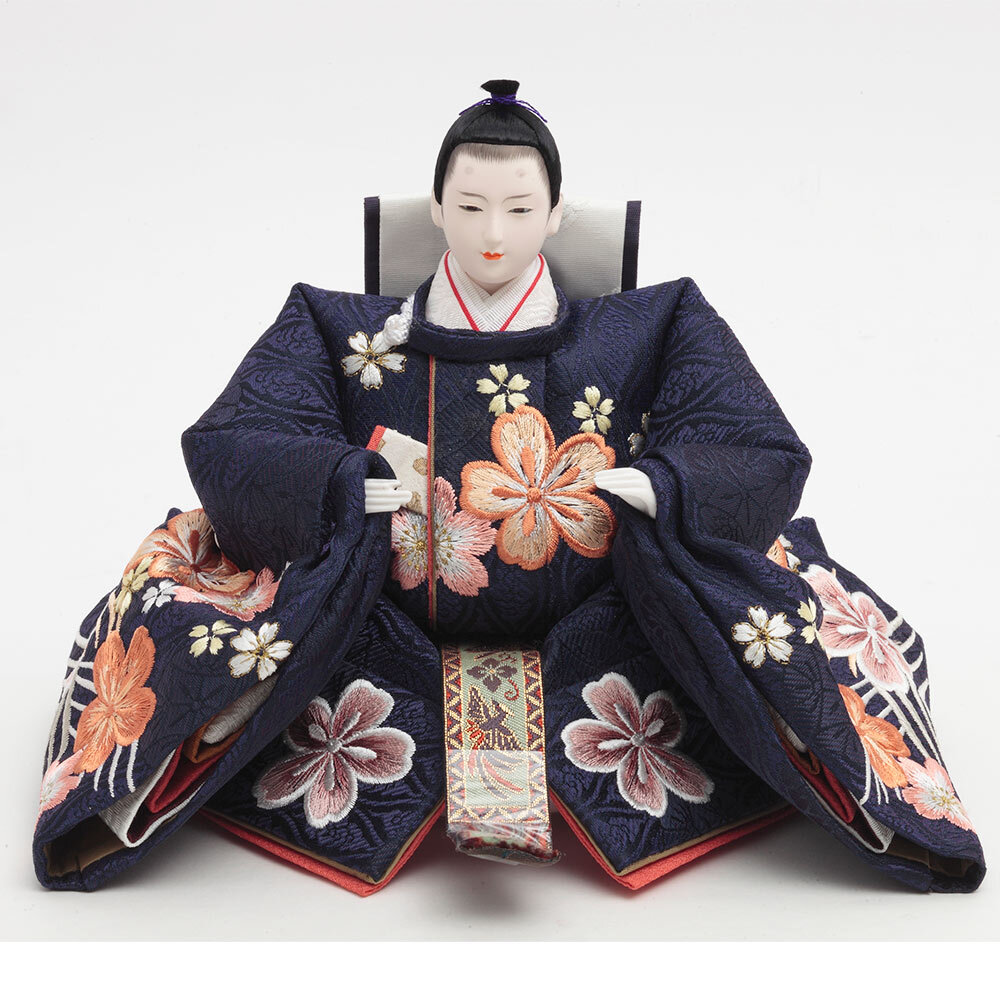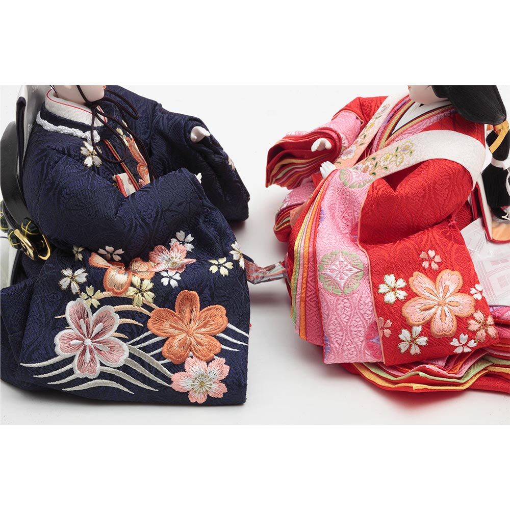 大きく刺繍された桜柄が可愛らしい、上品で華やかな親王飾りです。