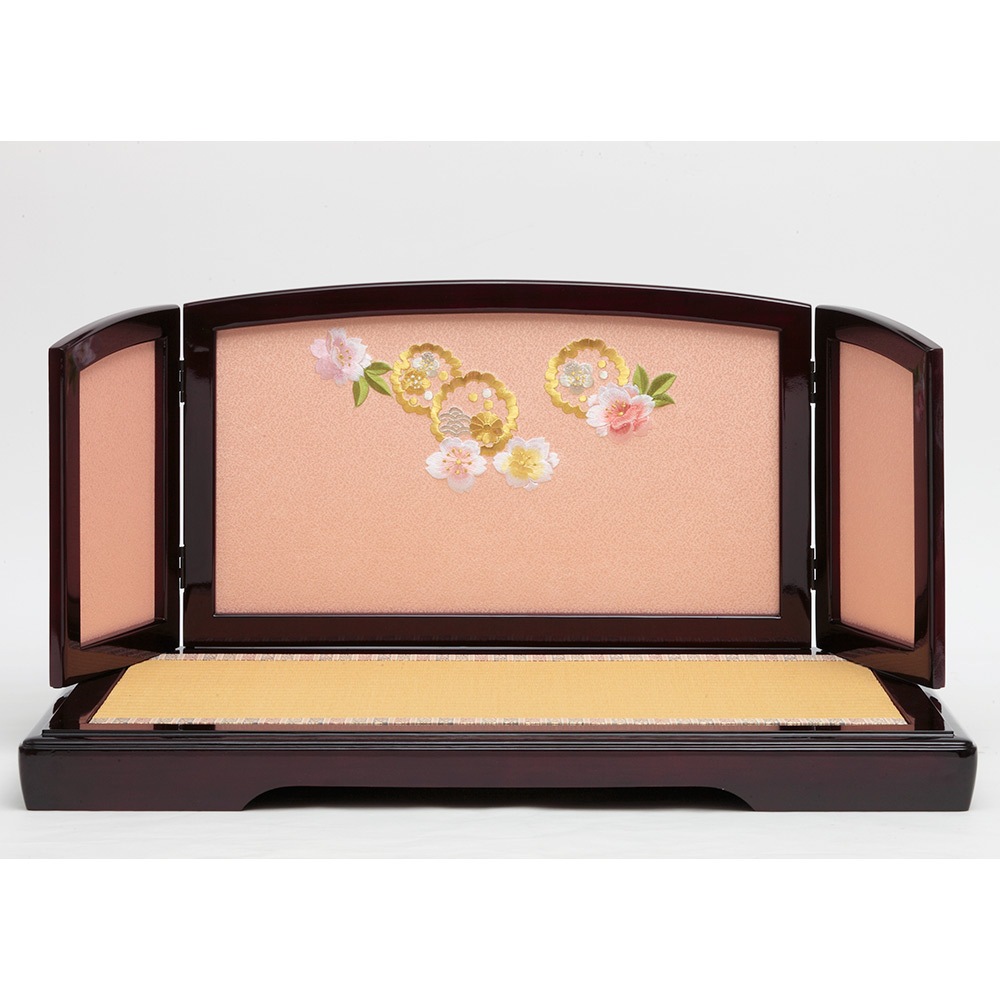 あたたかな風合いの屏風には、優しげなお顔立ちのおひなさまがよく映えます。
