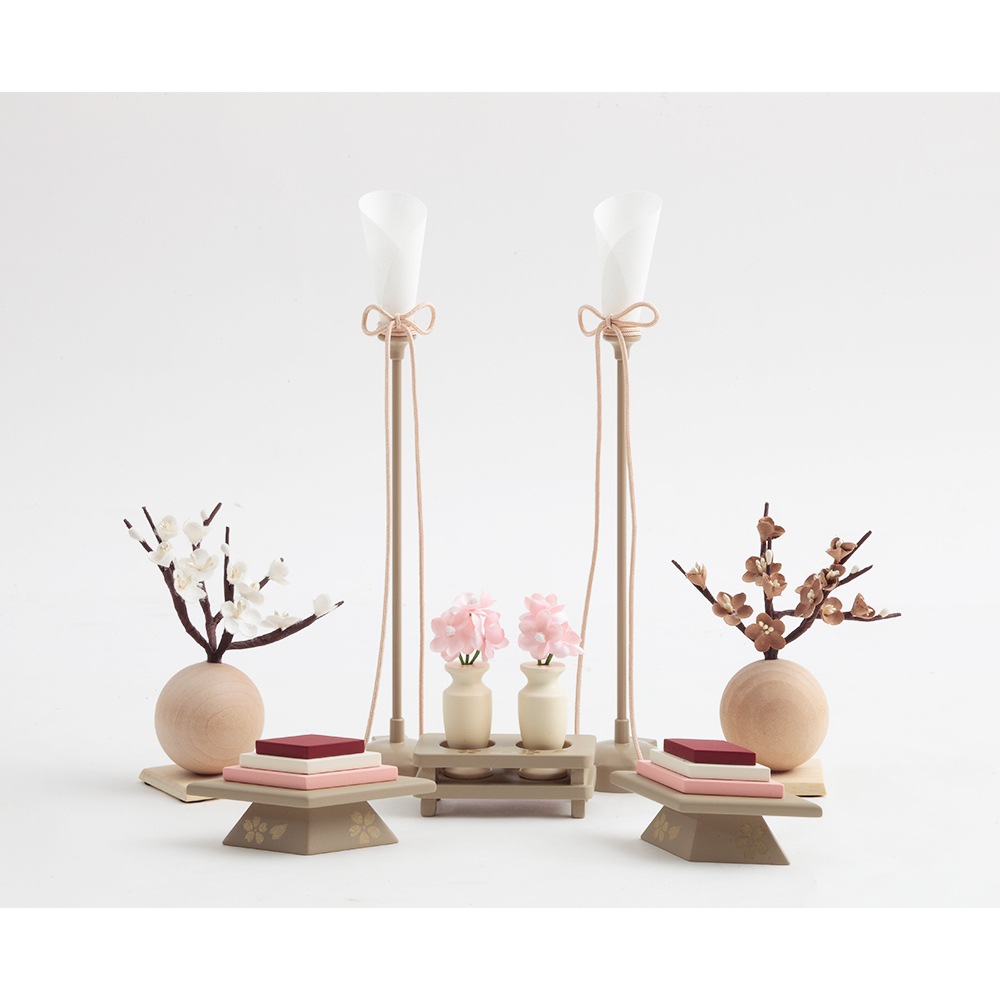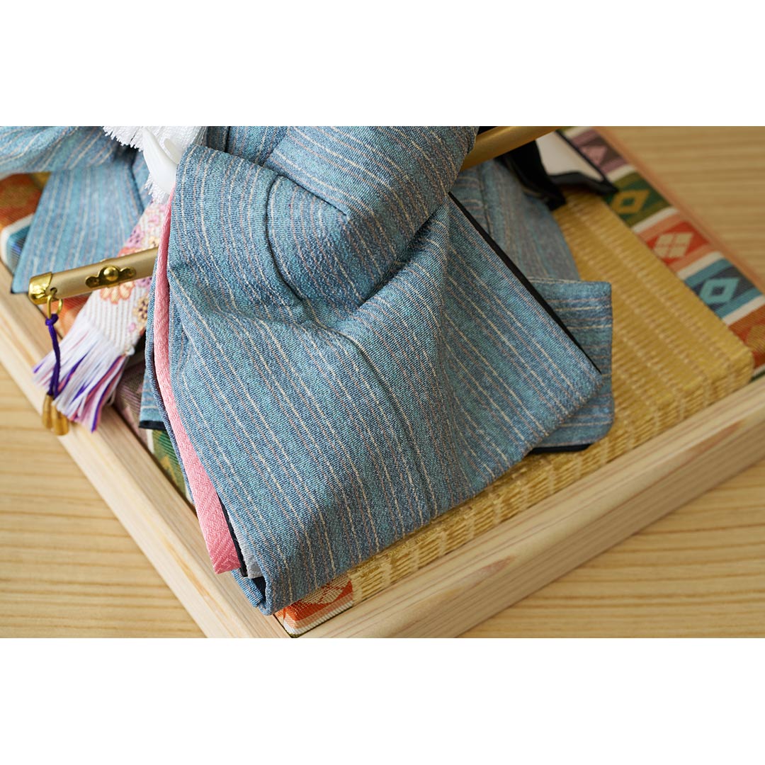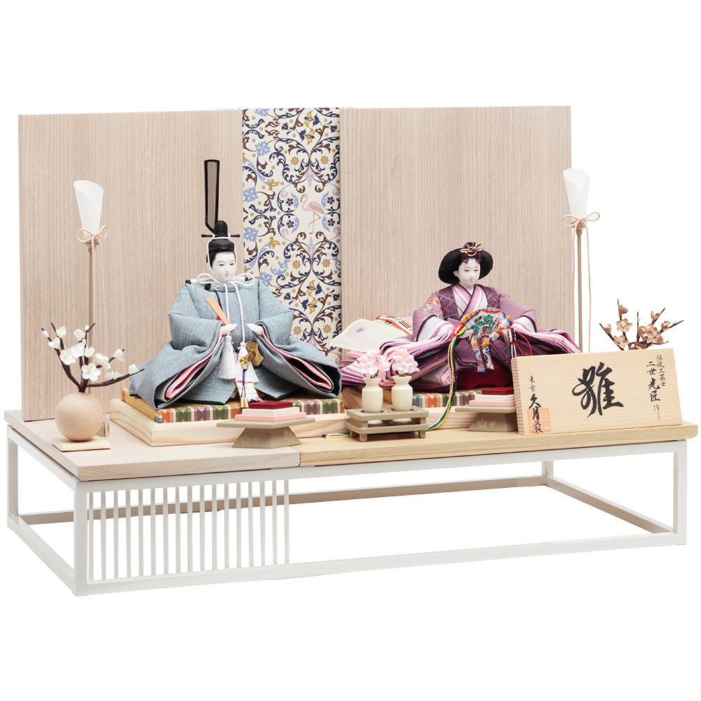 現代的でナチュラルなテイストが魅力の格子仕立ての飾り台に、明るく爽やかな色彩のお人形が見事にマッチします。