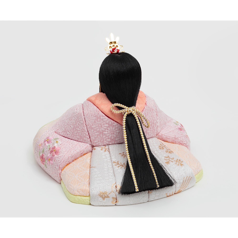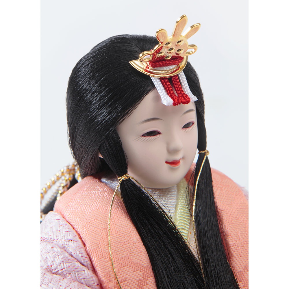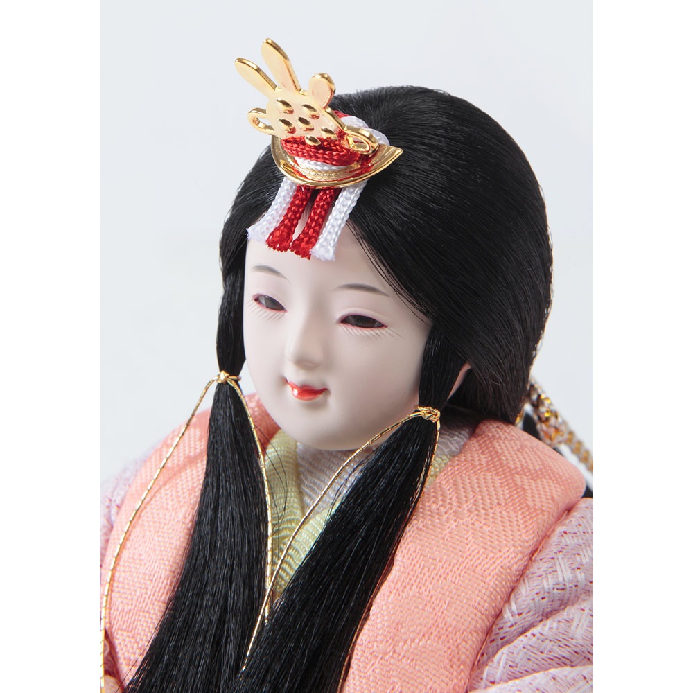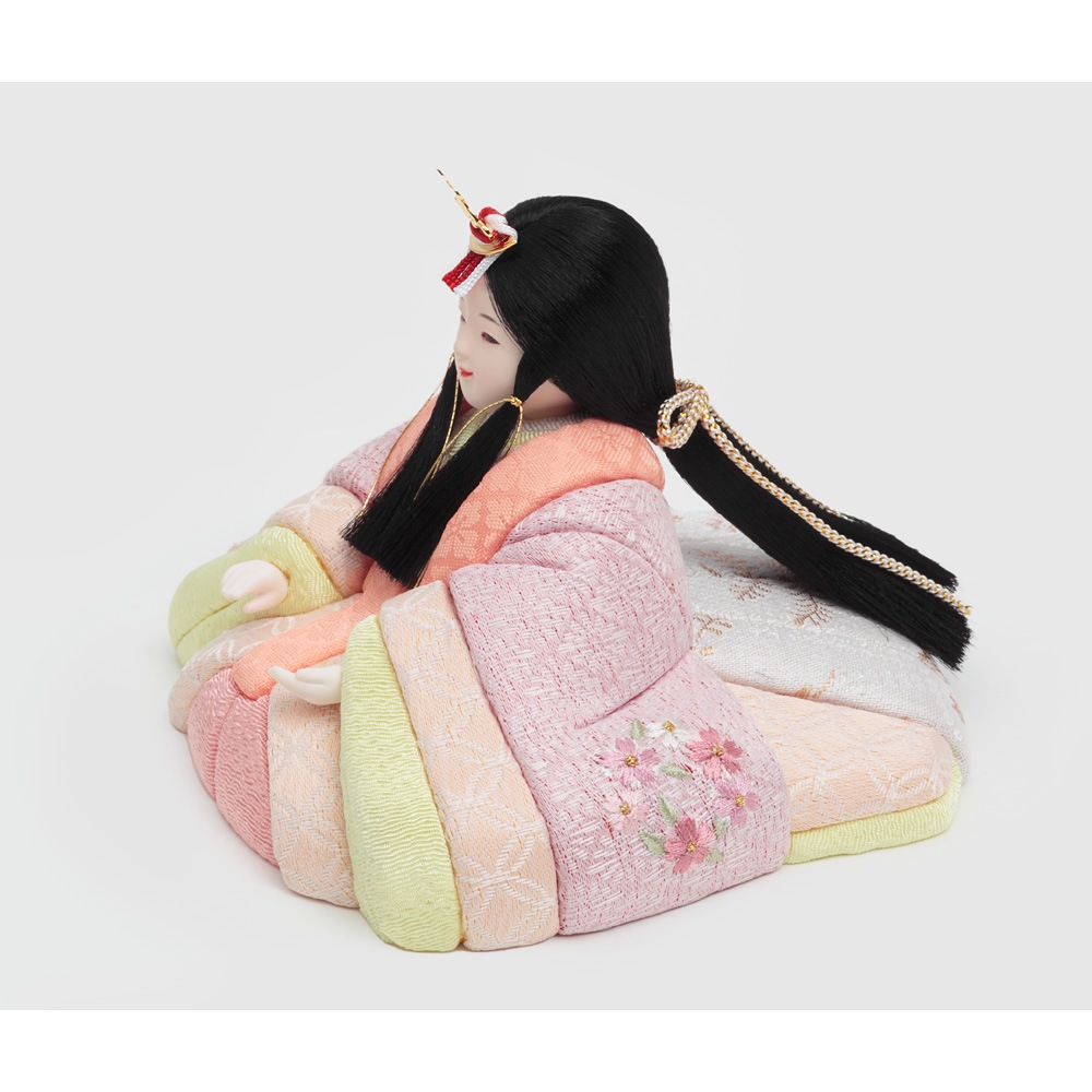 桜橘の代わりに配した印象的な花飾りも、優し気に佇む優美なお人形を一層引き立てます。
