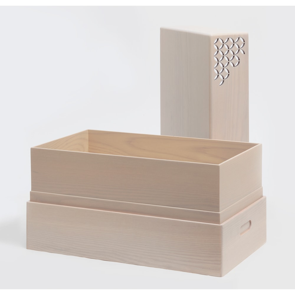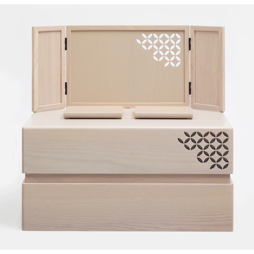 木肌の美しい上品な飾り台は、お人形やお道具類の収納ボックスを兼ねており、省スペースに仕舞えるのも魅力です。