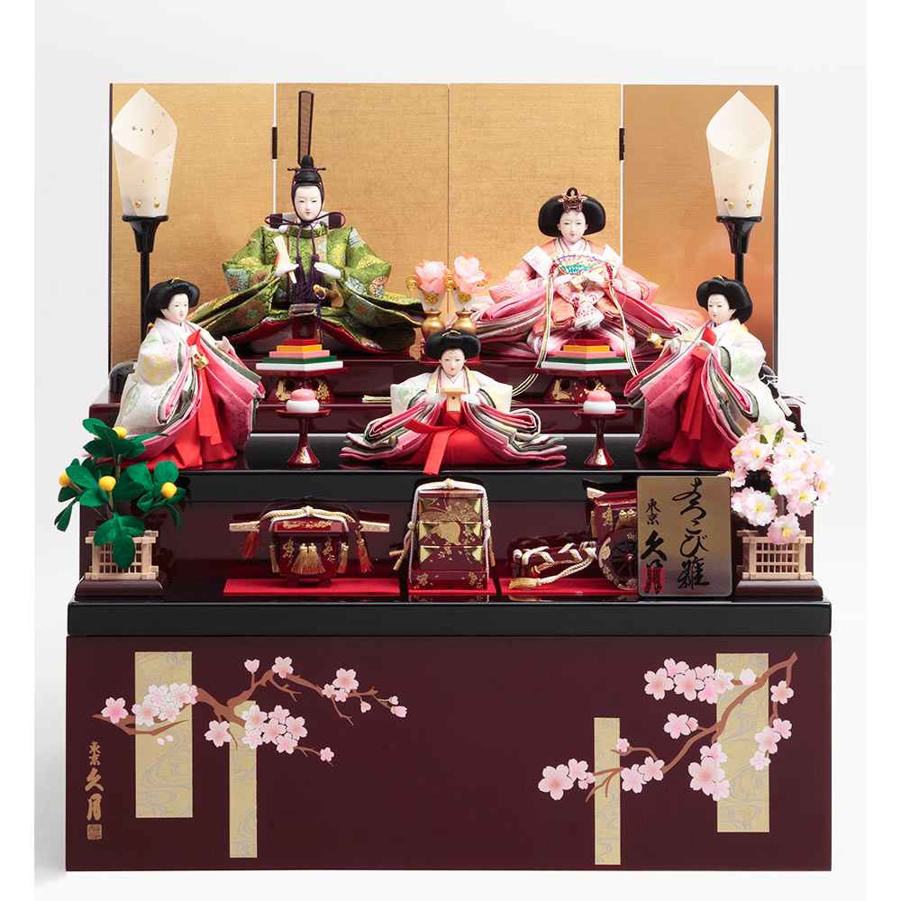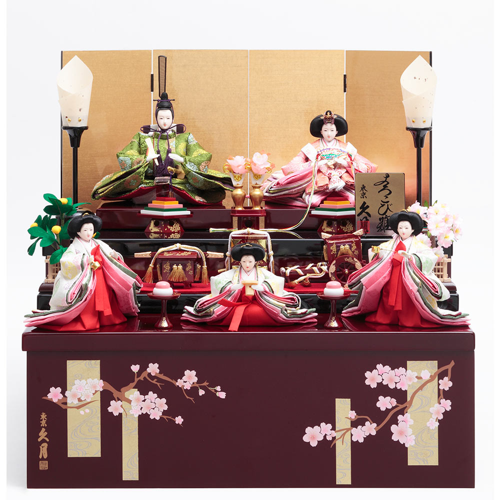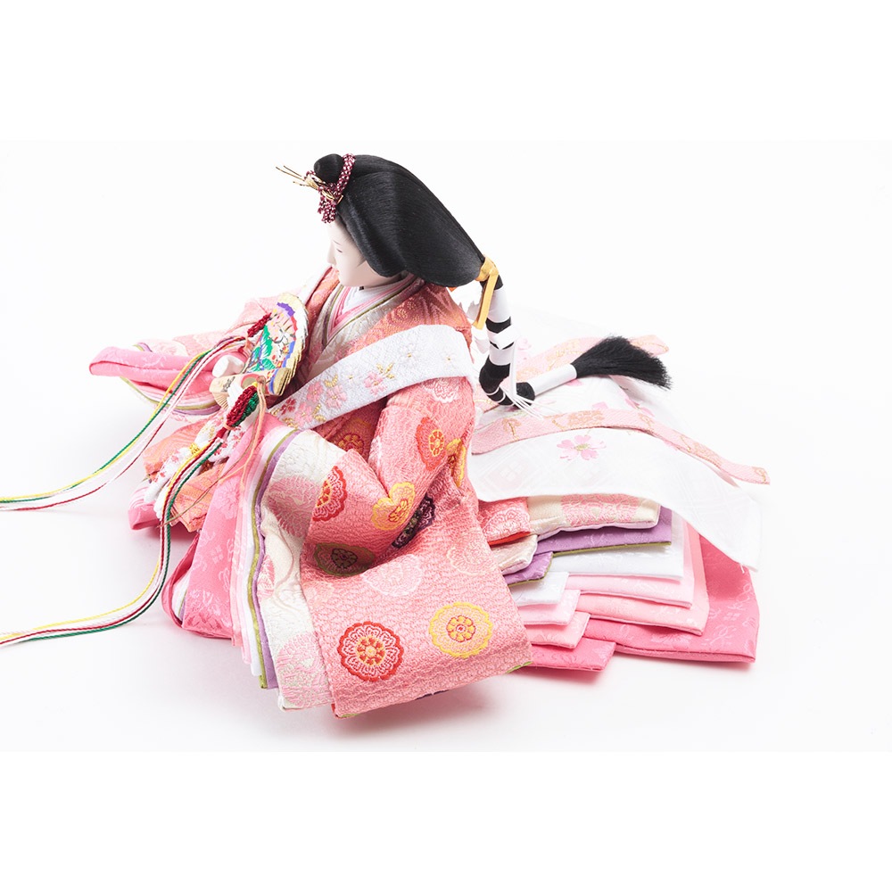 飽きの来ない優雅な佇まいに魅せられる、人気の収納タイプの親王官女飾りです。