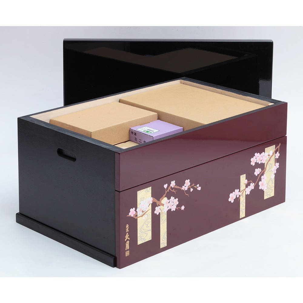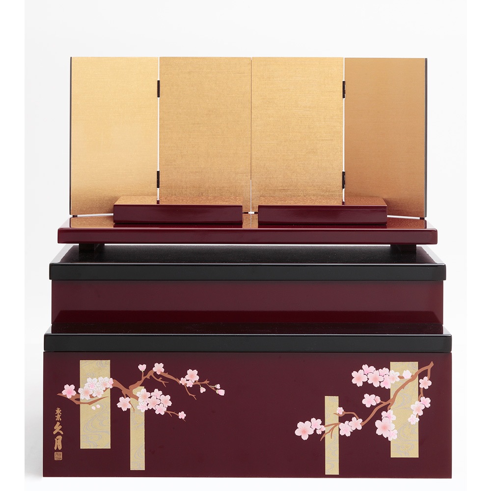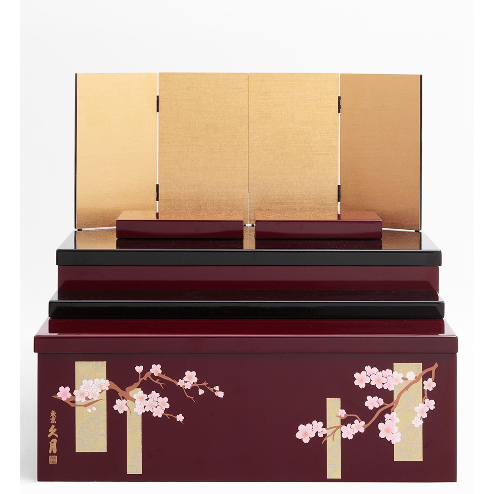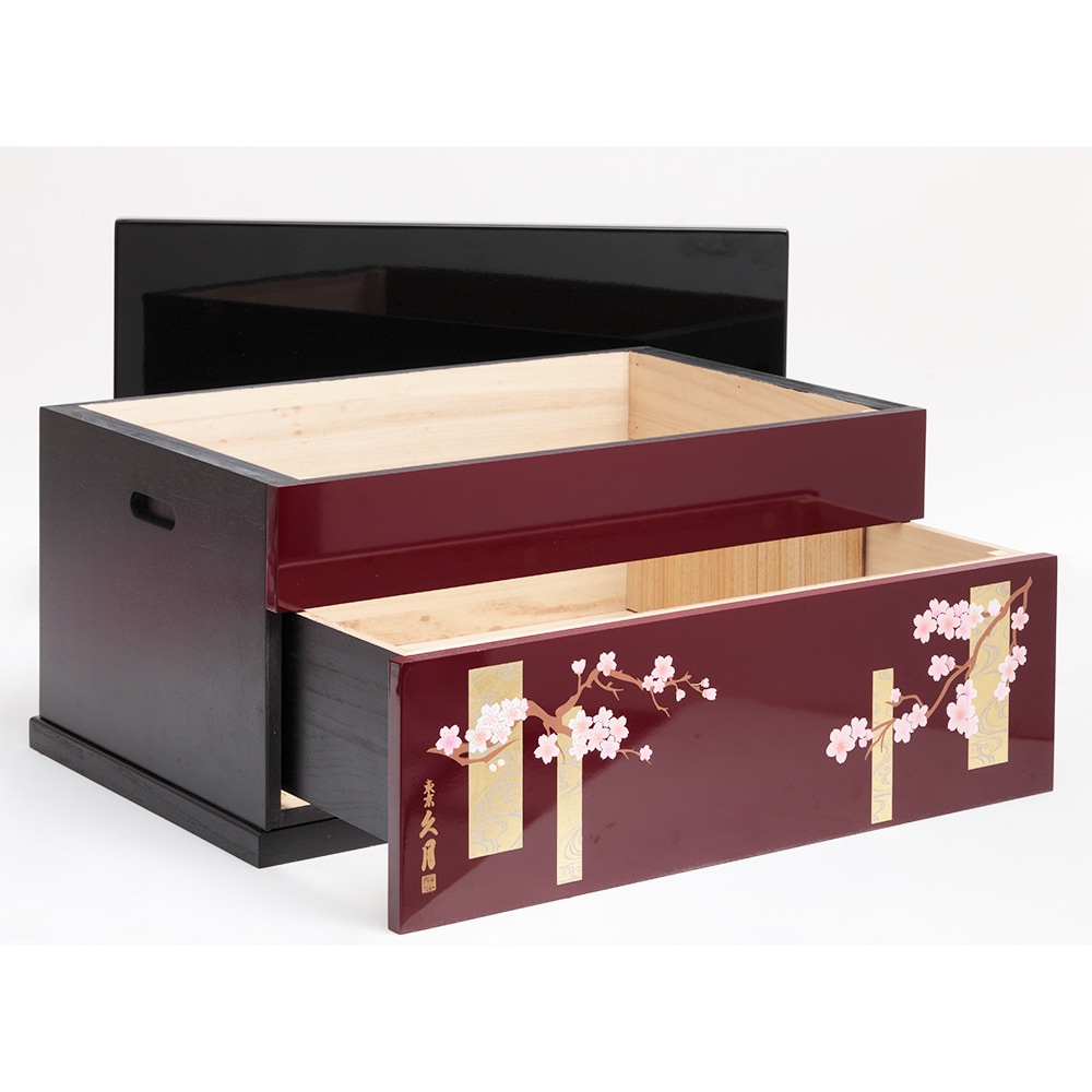 お人形やお道具類の収納ボックスを兼ねる便利な引き出し式の飾り台は、蓋部分の組み合わせ方を変えることにより、雰囲気の異なる二通りの飾り方が出来る点も魅力です。