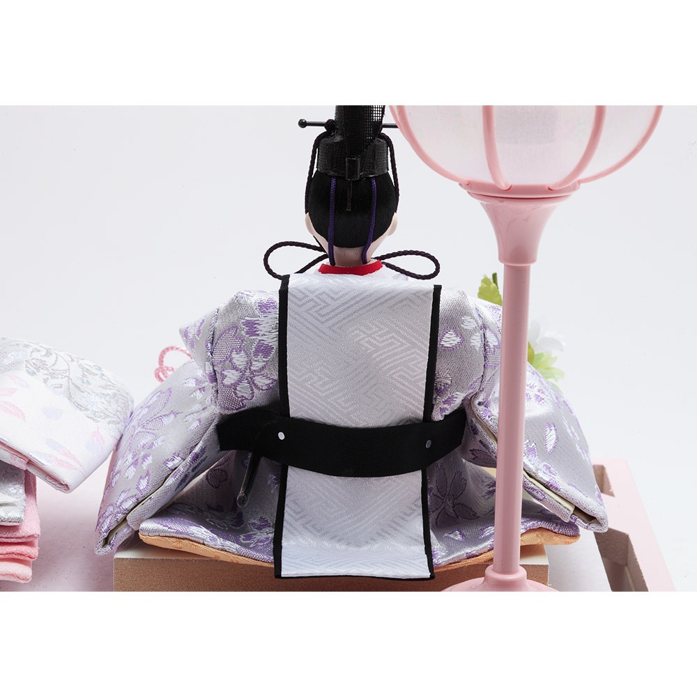 淡く優しい色合いのベビーピンクのケースが、フローリングのお部屋にも違和感無くマッチする、春の訪れを感じさせる人気のおひなさまです。