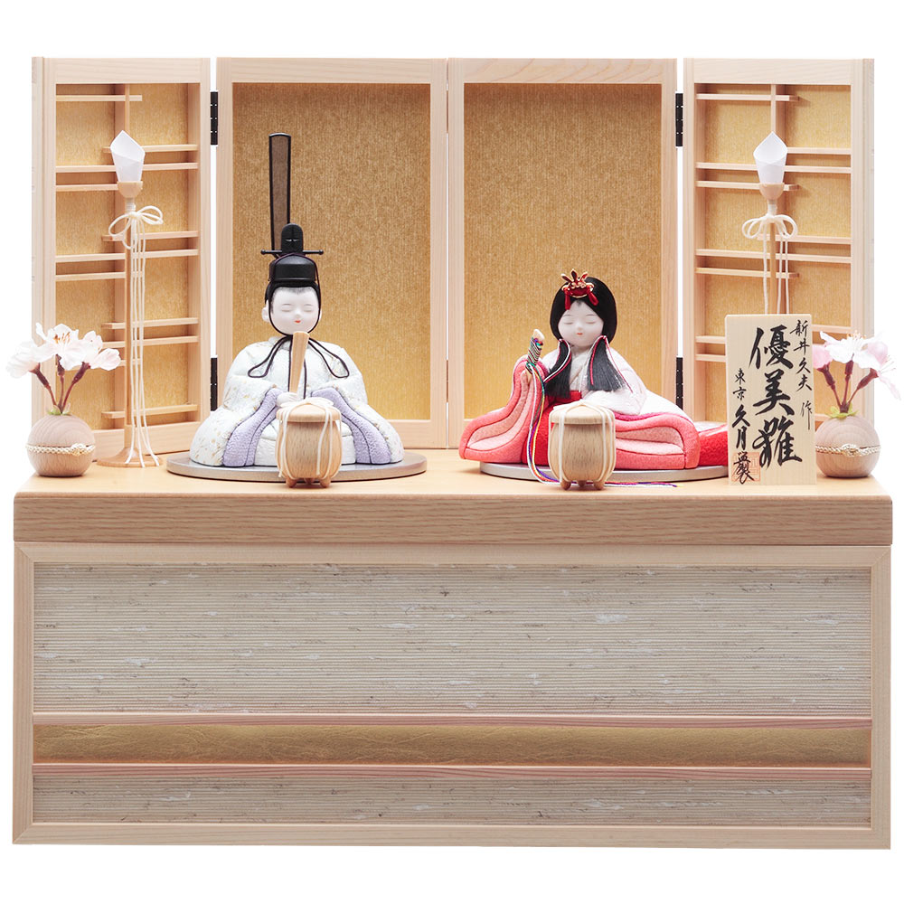 伝統工芸士・新井久夫が丁寧に手作業で仕立てた、優し気で上品な佇まいに魅せられる収納タイプの親王飾りです。