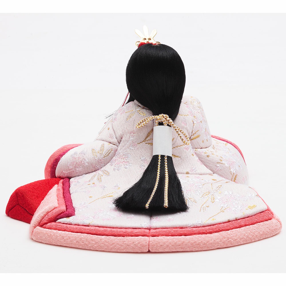 飾り台と色合いを合わせた木目調のお道具類も、優美で華麗なお人形を一層引き立てる、春の晴れの日のお祝いに相応しい人気のおひなさまです。