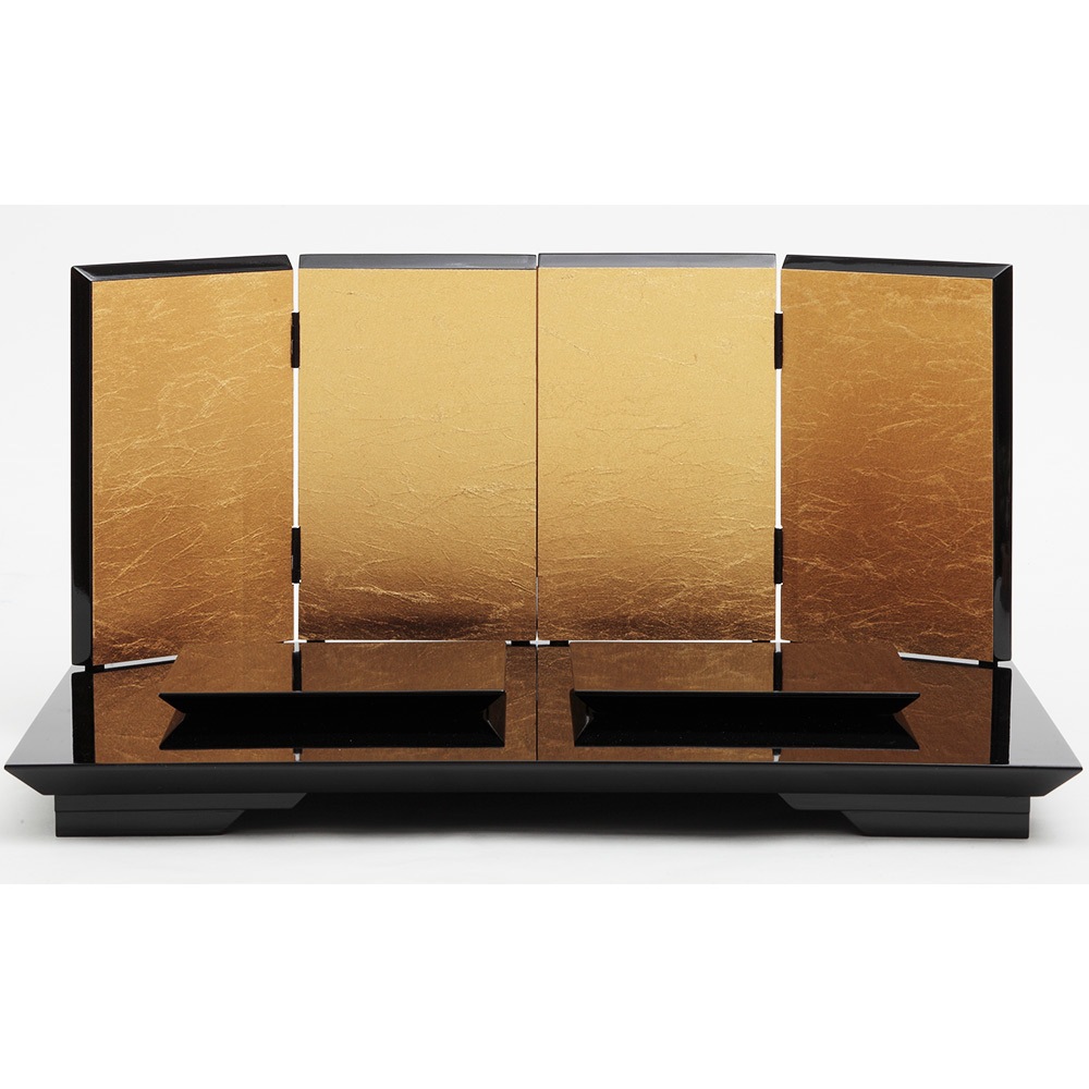 高級感のある金箔屏風に、愛らしく微笑む落ち着いた仕立てのお人形が見事に調和します。