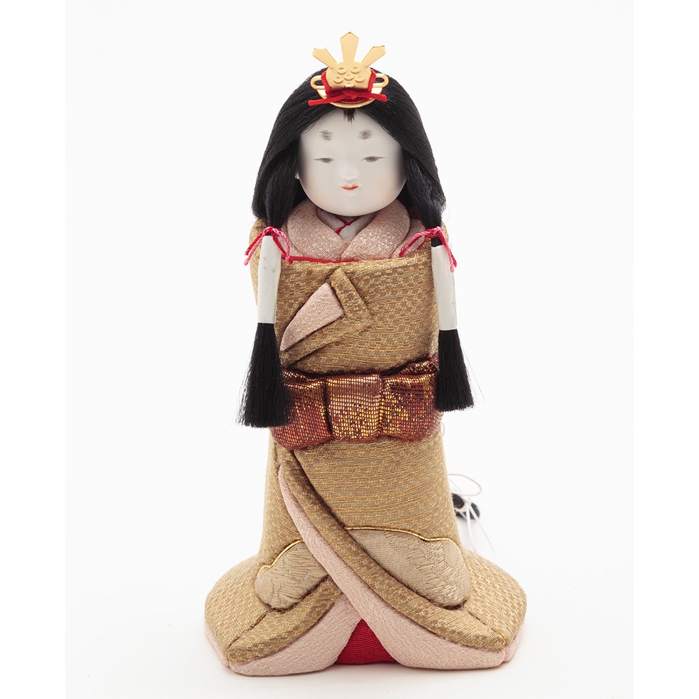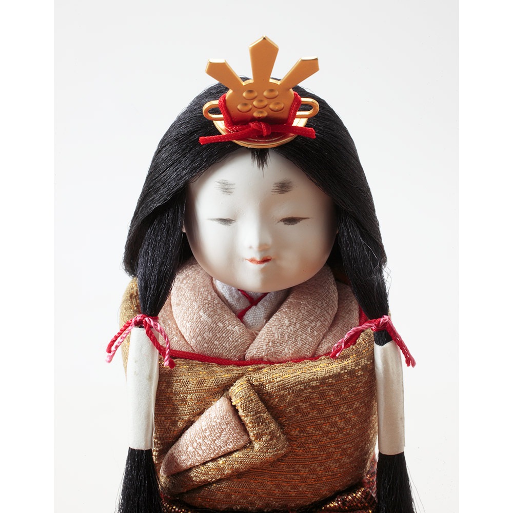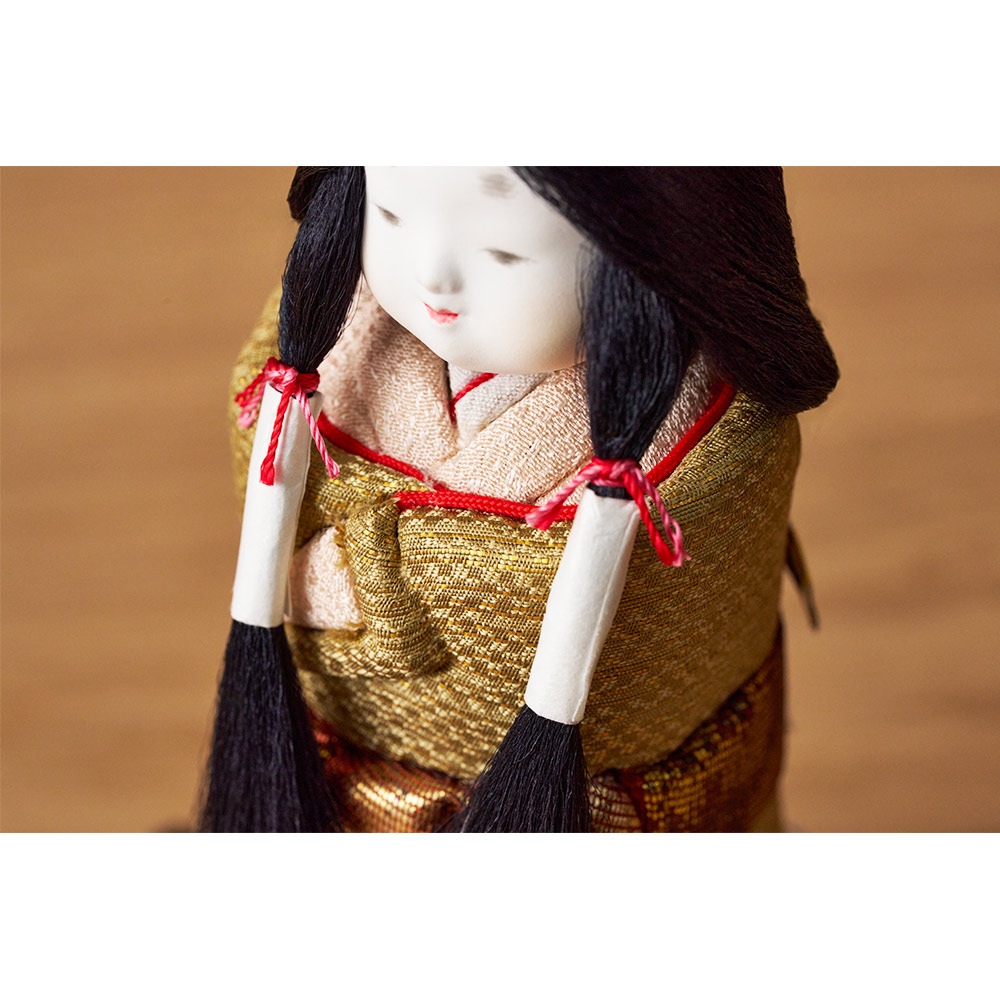 日本工芸会正会員の人形作家である村岡茂が丁寧に仕立てた、純真で愛らしいお顔立ちが魅力のおひなさまです。