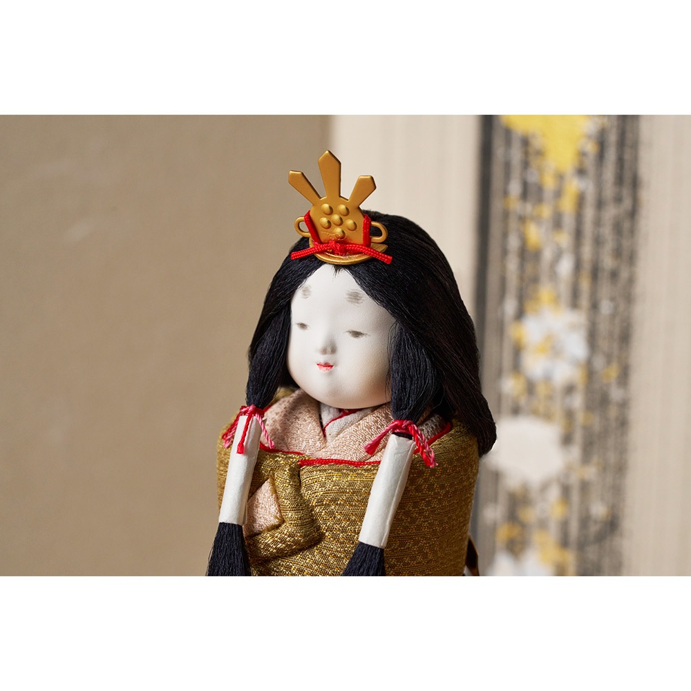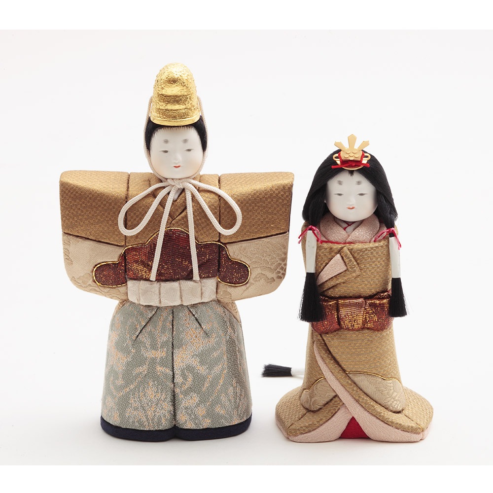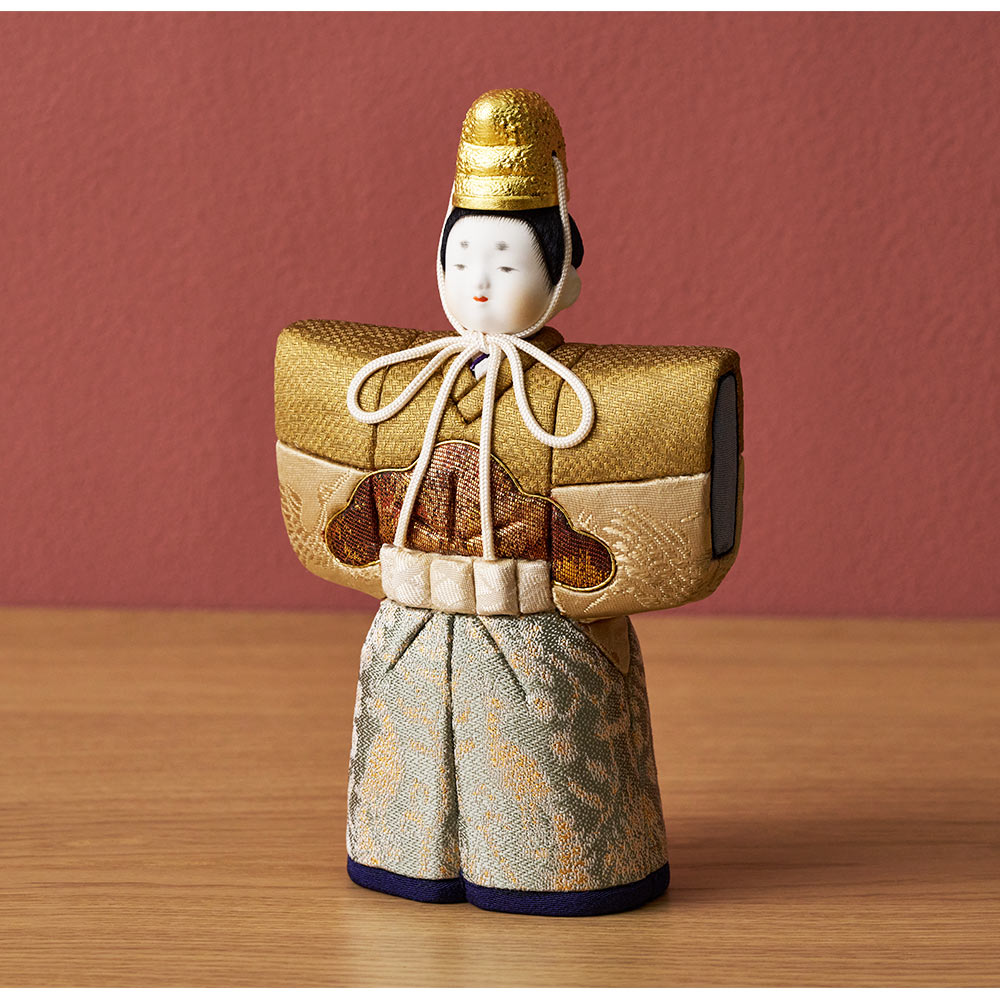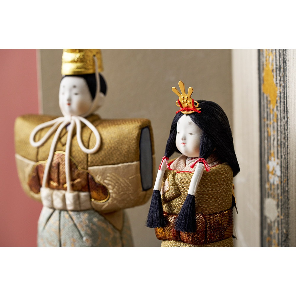 上品で趣のある衣裳をまとった男雛と女雛が、晴れの日のお祝いを優美に彩る、飽きの来ないクラシカルな風情に魅せられるお飾りです。
