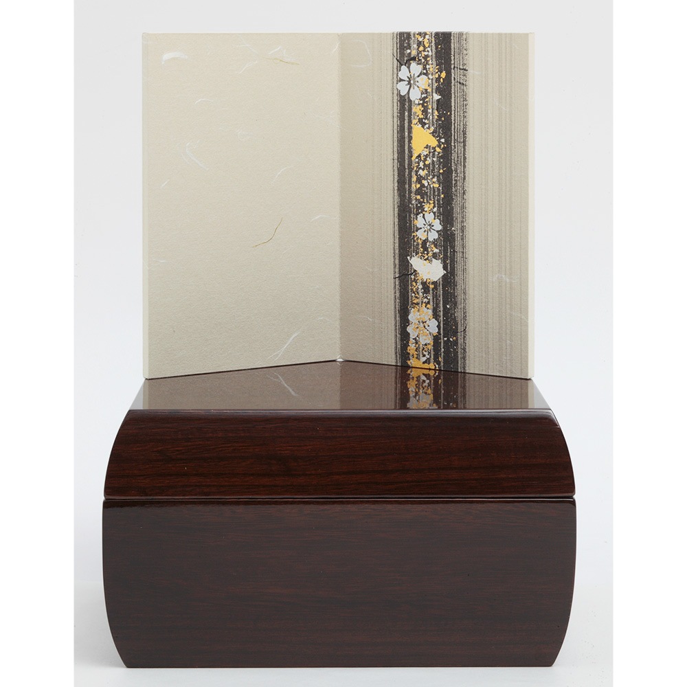 飾る場所を選ばないコンパクトなサイズ感が魅力の飾り台は、お人形の収納ボックスを兼ねており、省スペースに仕舞える点も特長です。