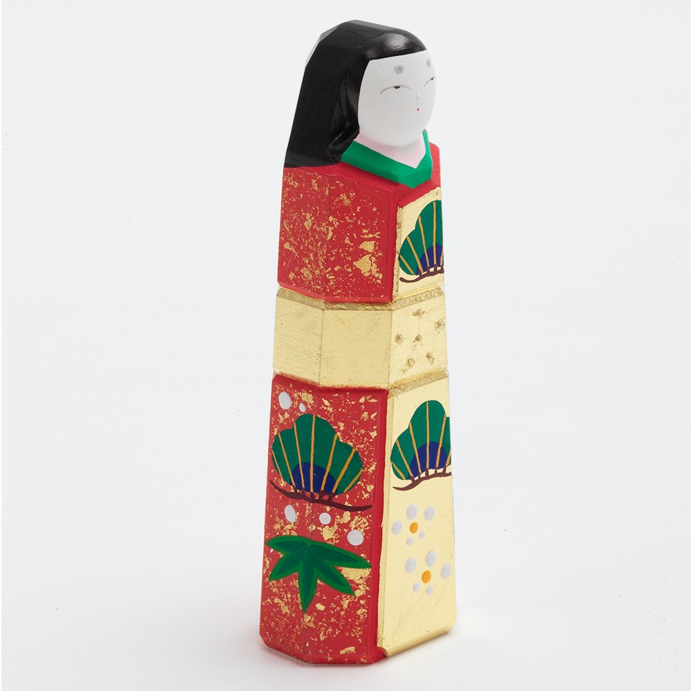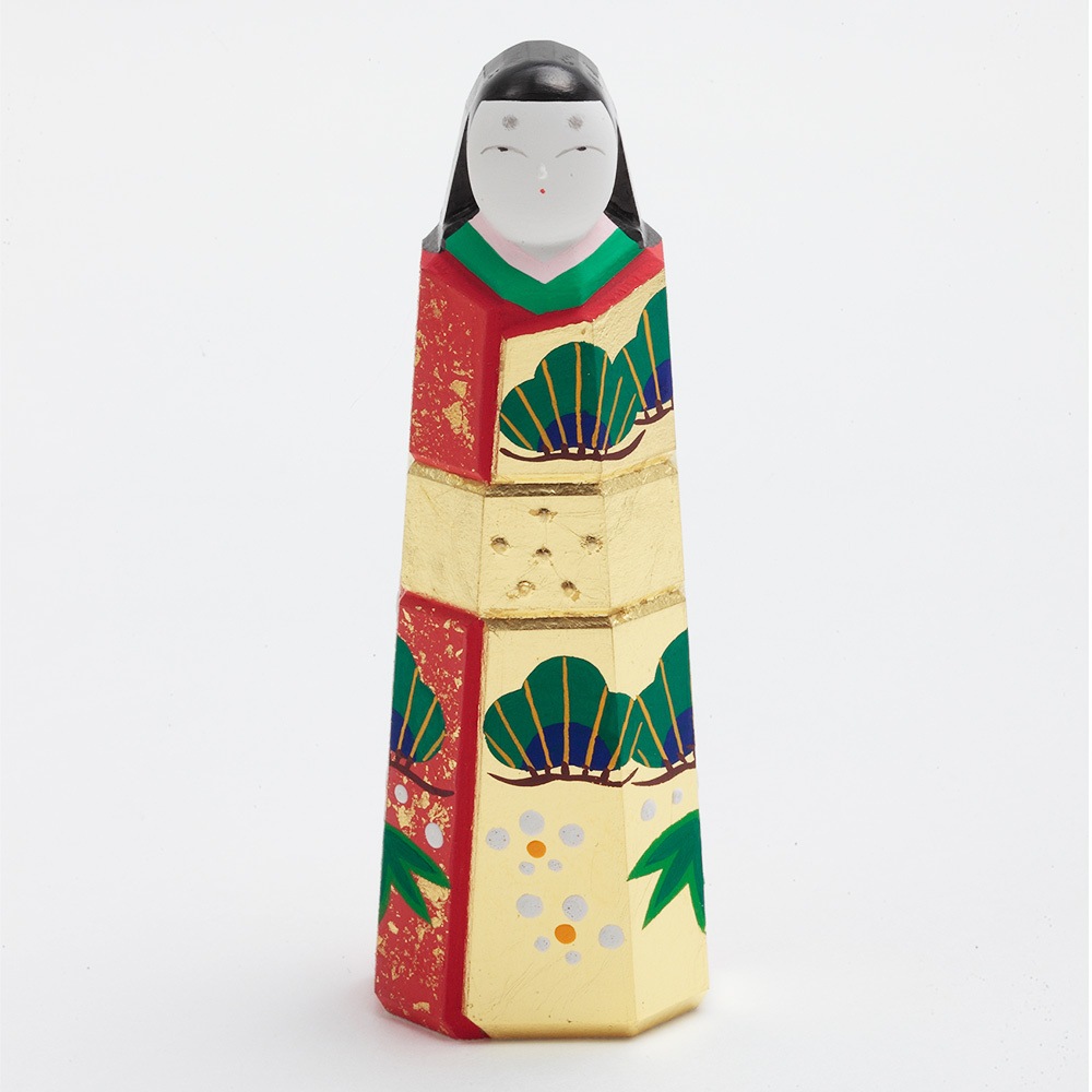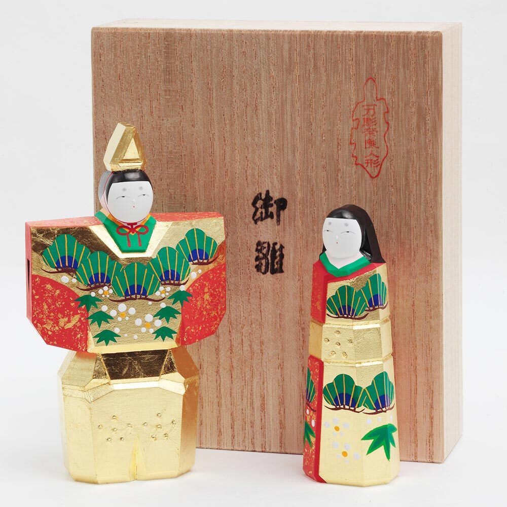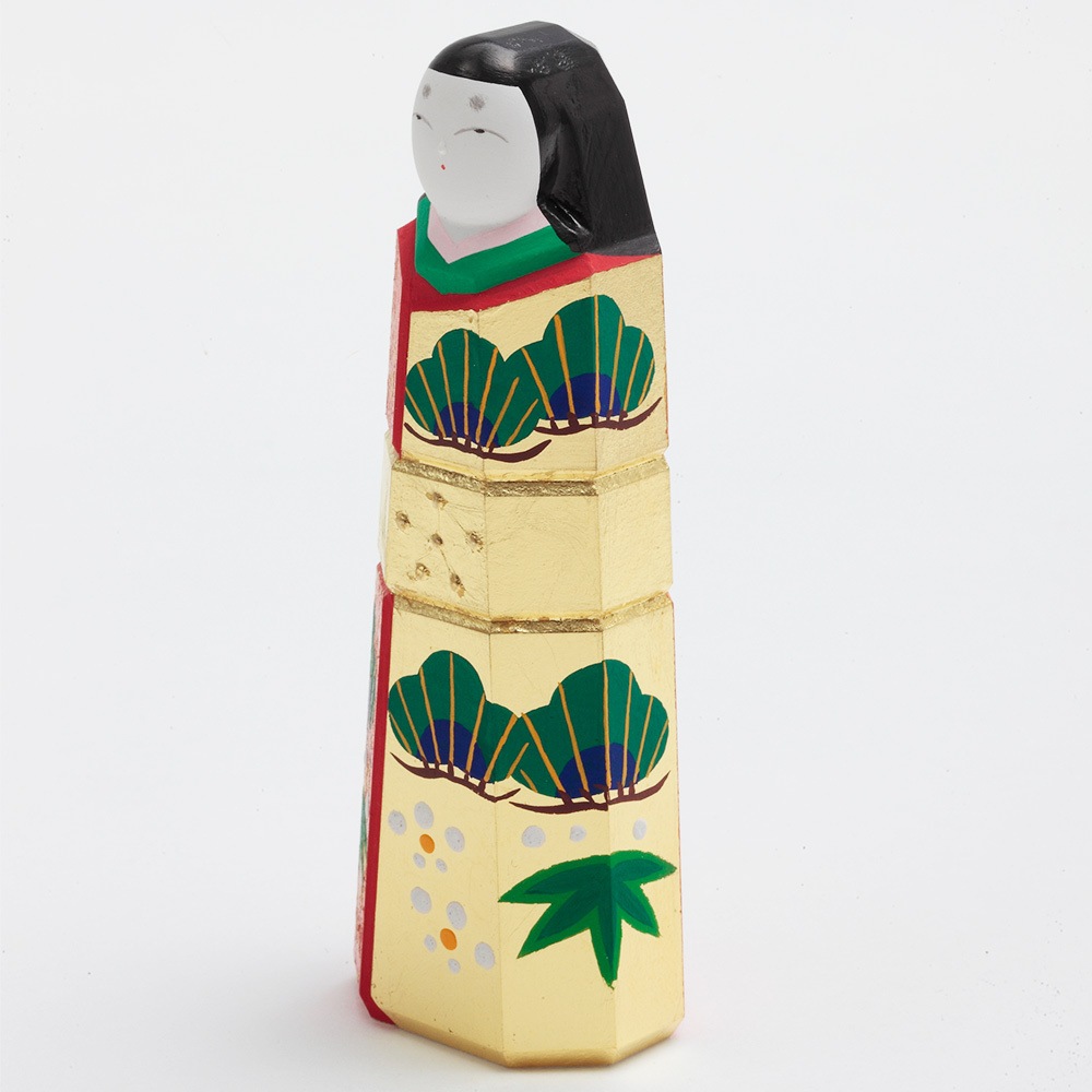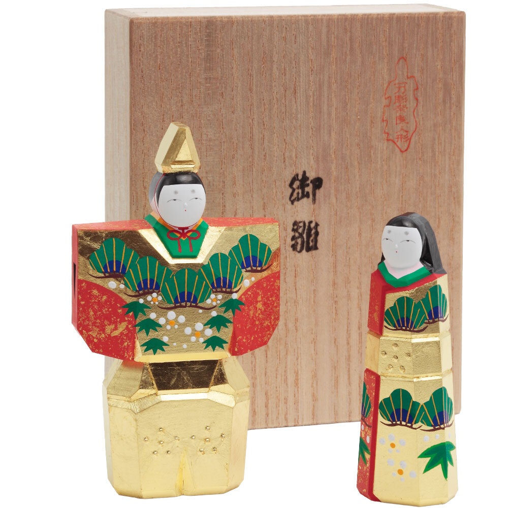 お人形にあしらわれている年中枯れることの無い松と成長の早さで知られる竹はどちらも生命力を象徴し、百の花に先駆けて咲くとされる梅は、早春に美しい花を咲かせることから開運の象徴とされ、大変縁起の良い吉祥のモチーフです。