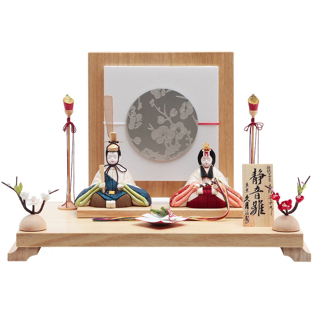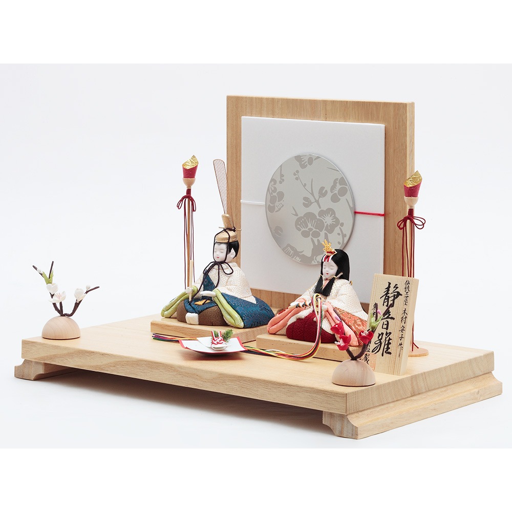 伝統工芸士・木村安子が丁寧に手作業で仕立てた上品な色彩のお人形が、趣のある衝立飾りに見事に映えます。