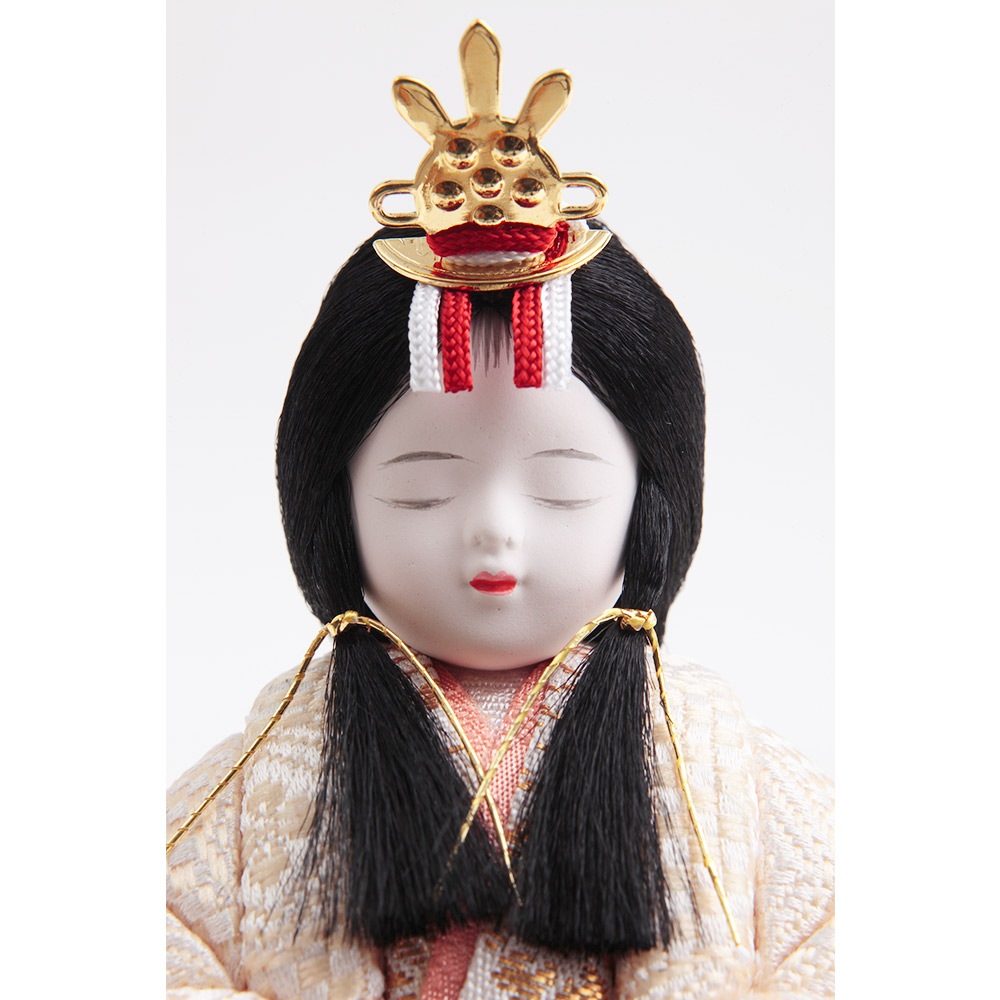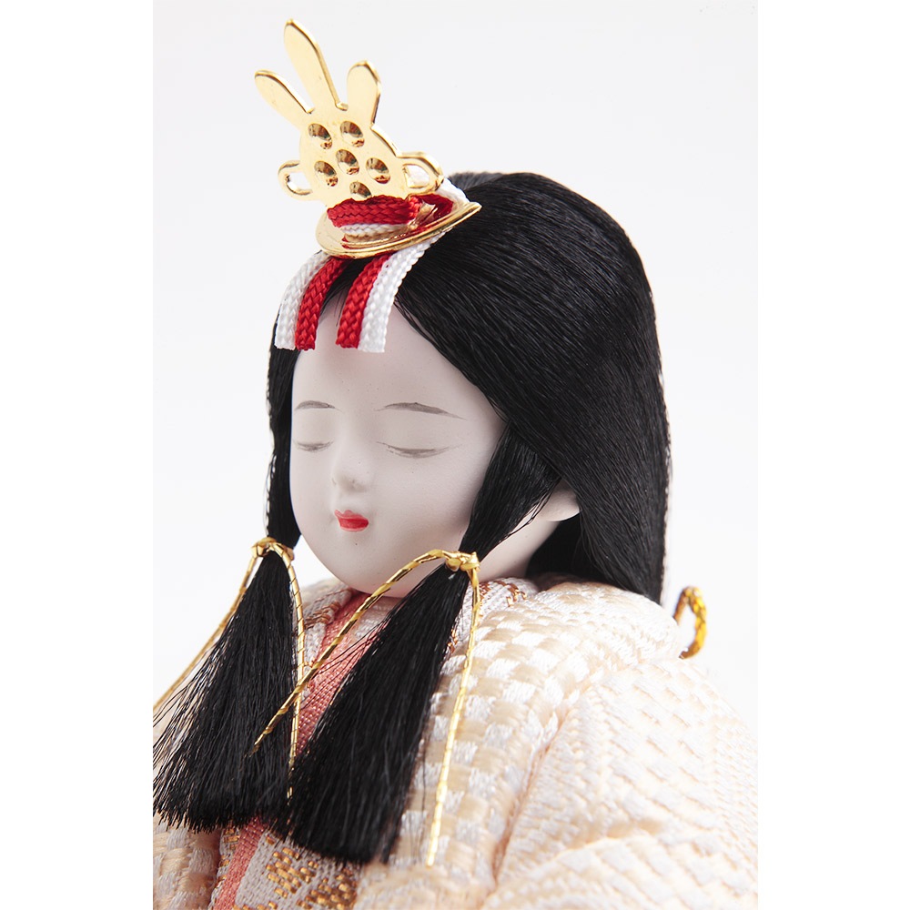 優美に佇むお人形の純真なお顔は、筆を使用して丁寧に表現する笹目(ささめ)と呼ばれる目の書き方が魅力で、薄墨を何層にも重ねて書かれた奥行のある目は、飽きの来ない優し気な表情を生み出しています。