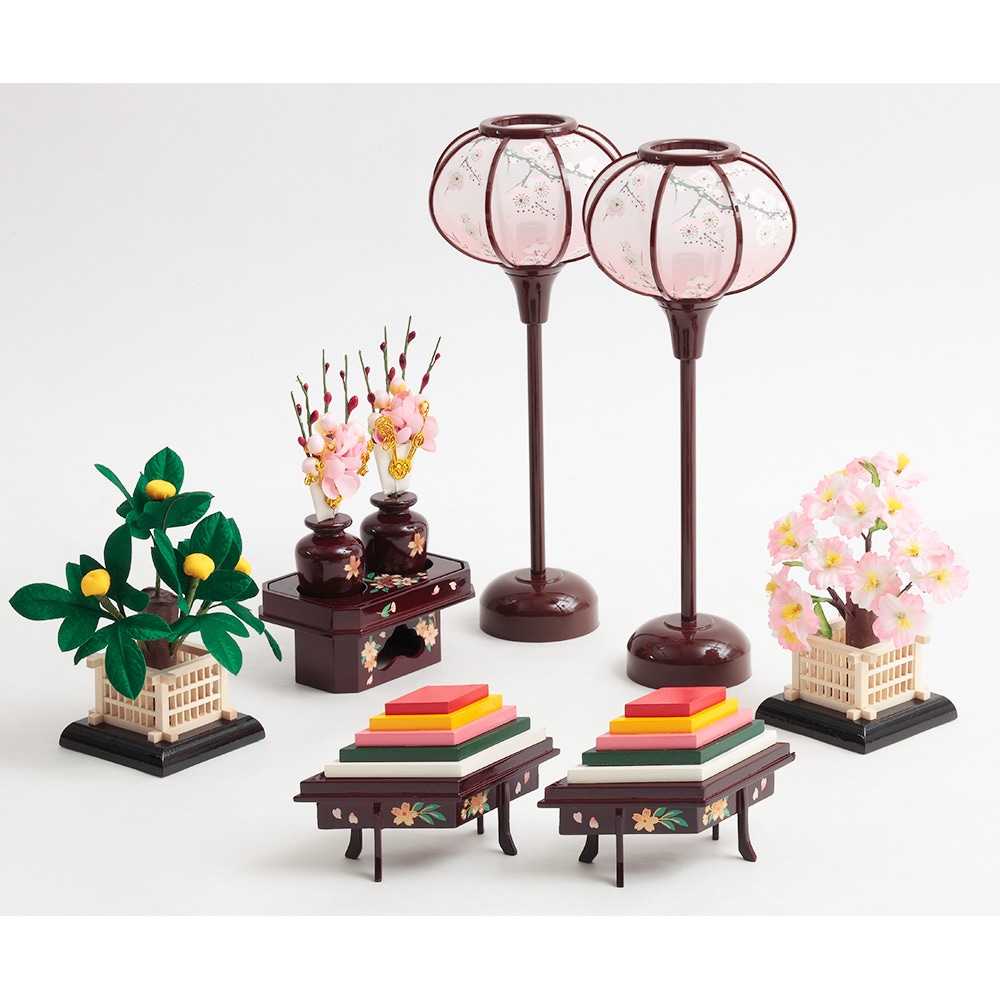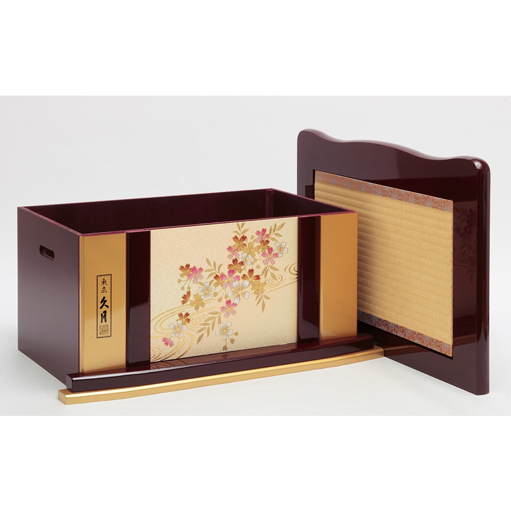 柔らかな色合いが素敵な飾り台は、お人形やお道具類の収納ボックスを兼ねており、省スペースに仕舞える点も特長です。
