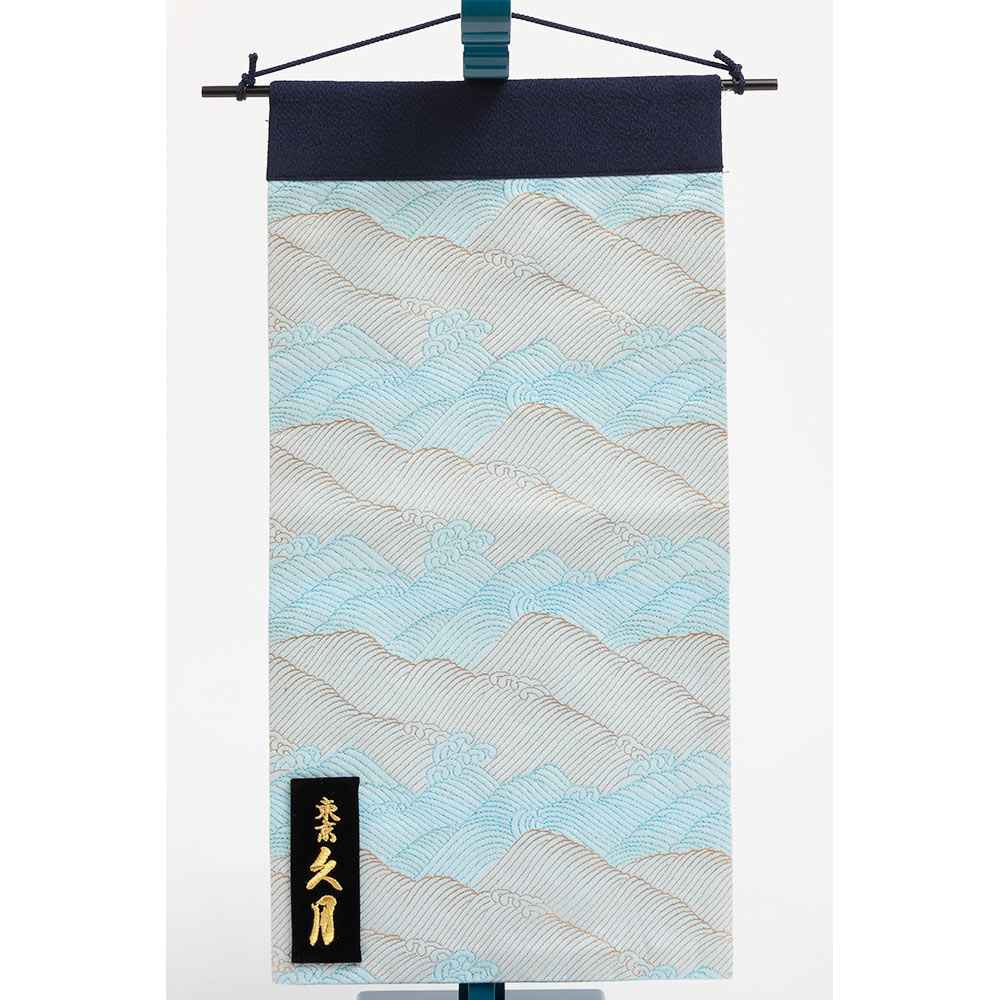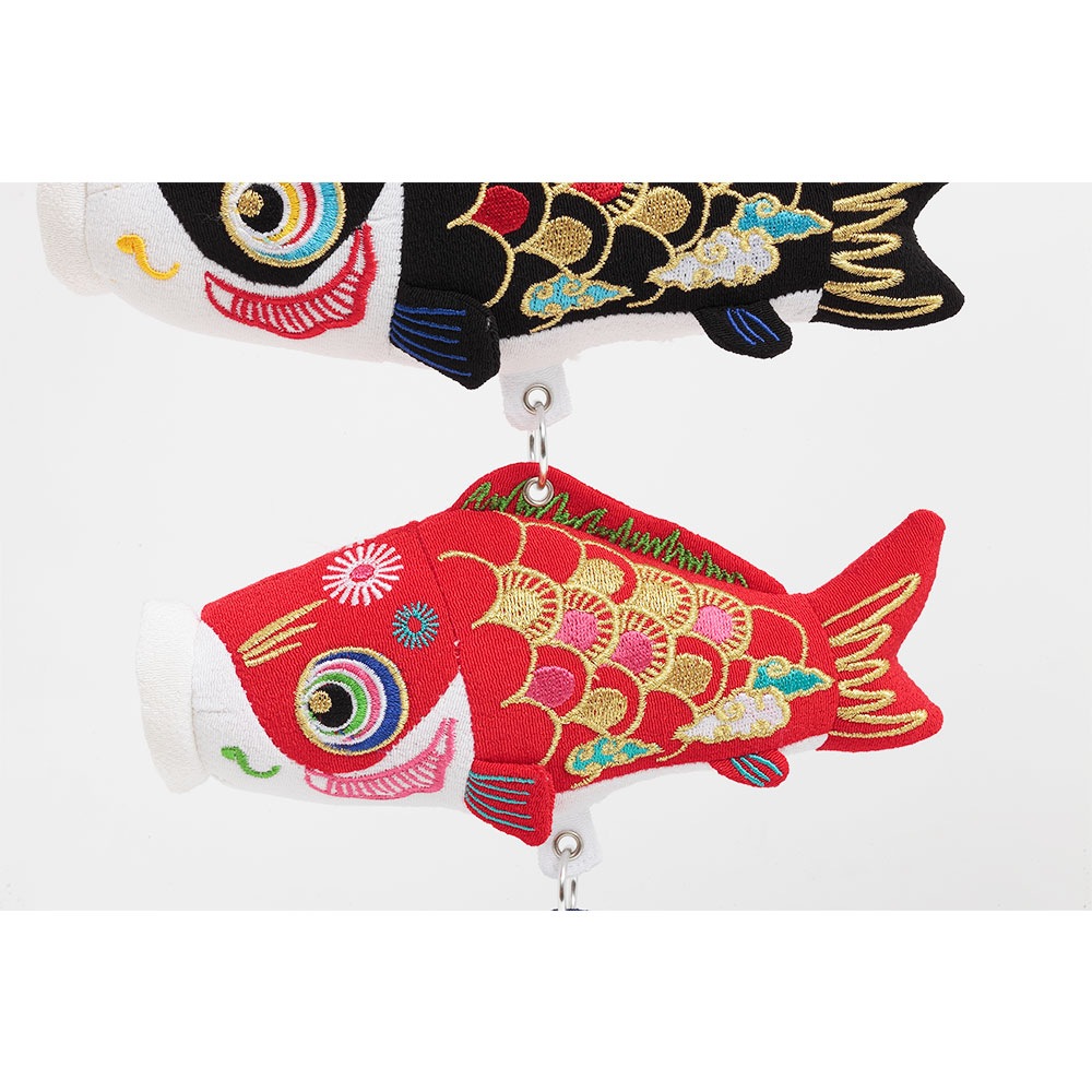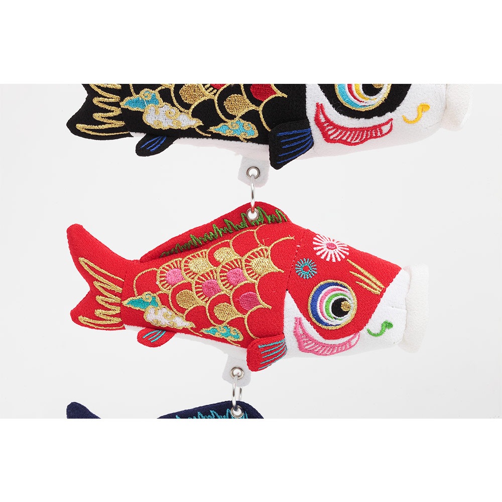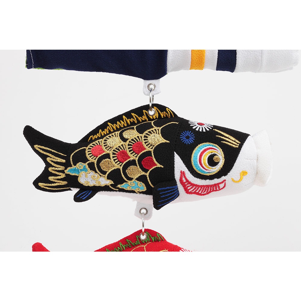 明るく爽やかな色彩の愛らしい鯉のぼりが、永遠や長寿を意味する縁起の良い波頭模様をあしらったタペストリーに見事に映えます。