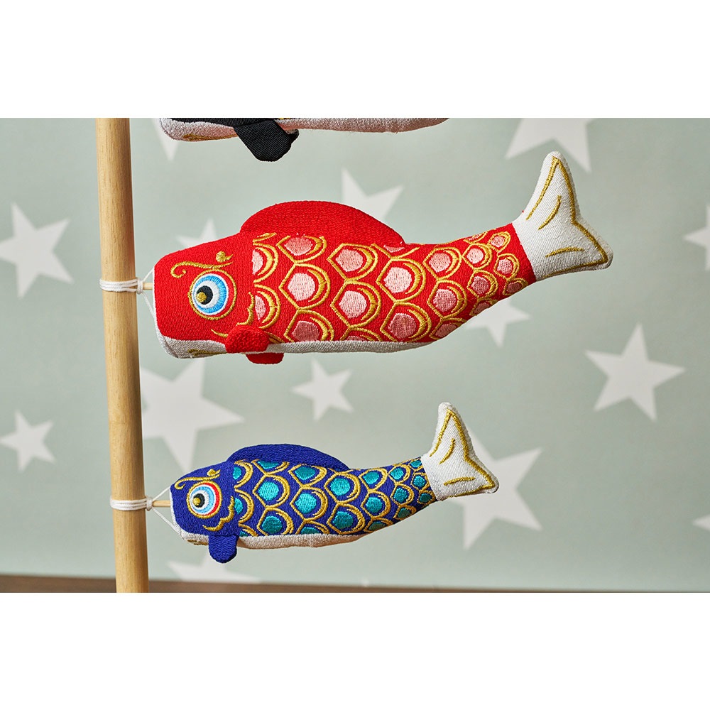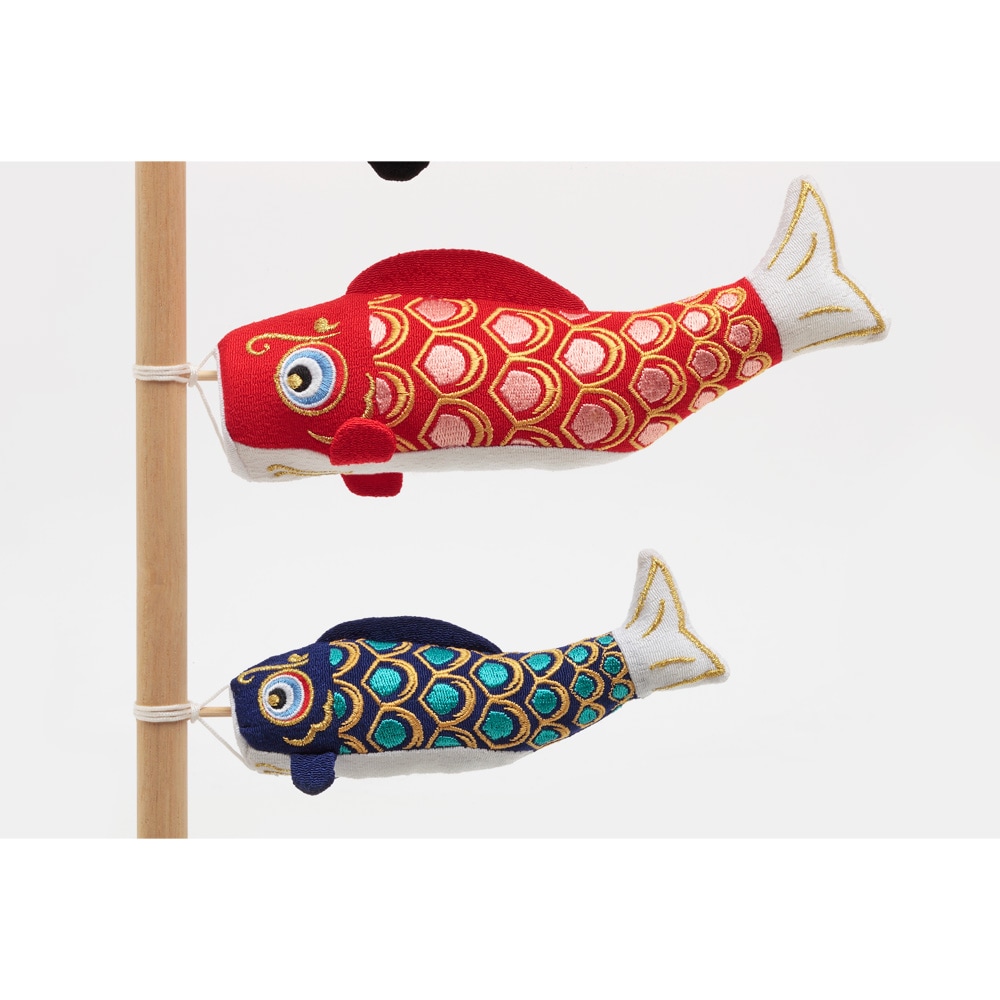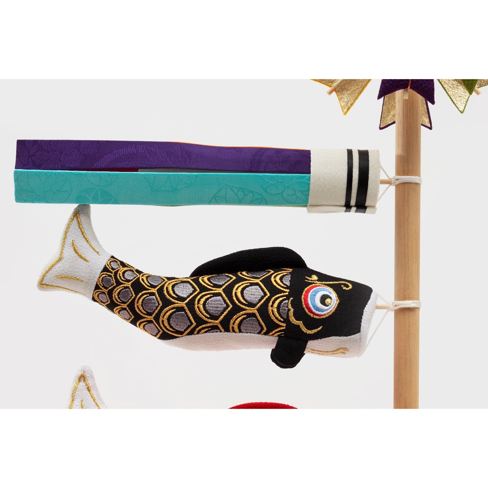 立身出世を意味する鯉のぼりと、生命力を象徴する虎が、晴れの日のお祝いを華やかに彩ります。