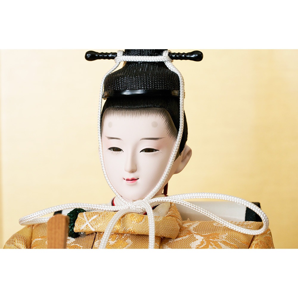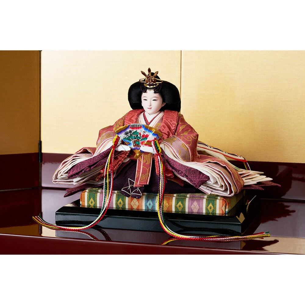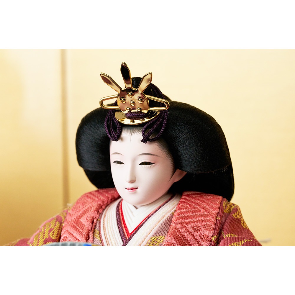優し気に微笑む美麗なお顔立ちのお人形が、春の晴れの日のお祝いに雅やかな彩りを添える、華麗で縁起の良い仕立てが素敵な人気のおひなさまです。