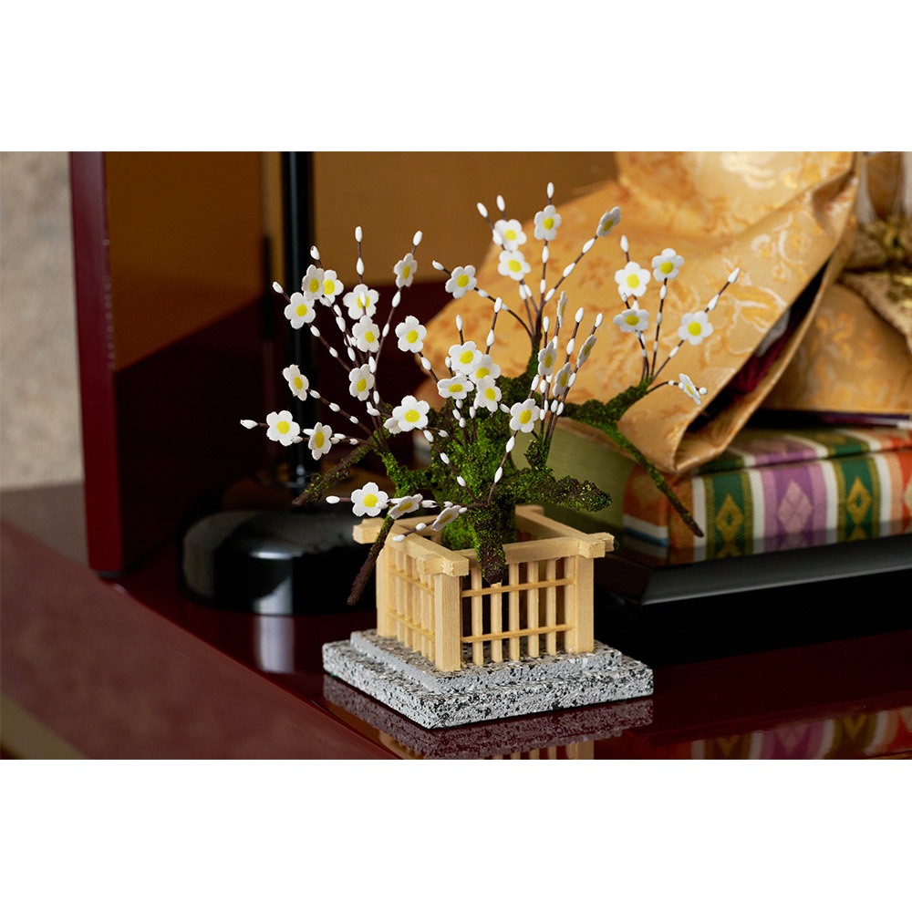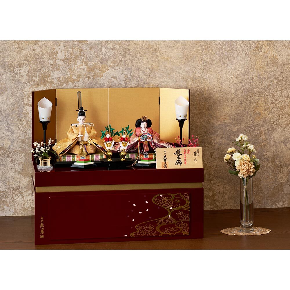 落ち着きの中にも華やかさを感じさせるデザインが魅力の飾り台は、お人形やお道具類の収納ボックスを兼ねており、省スペースに仕舞える点も特長です。