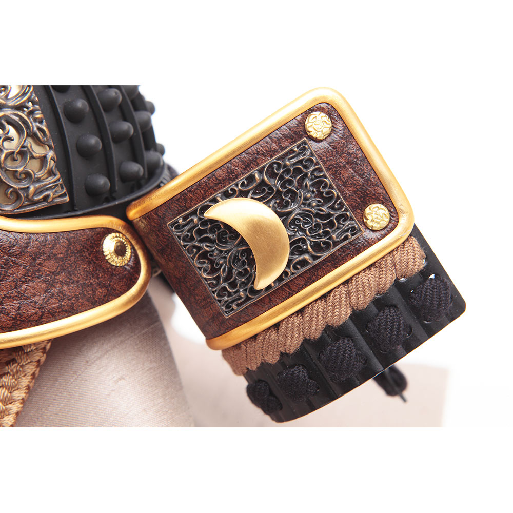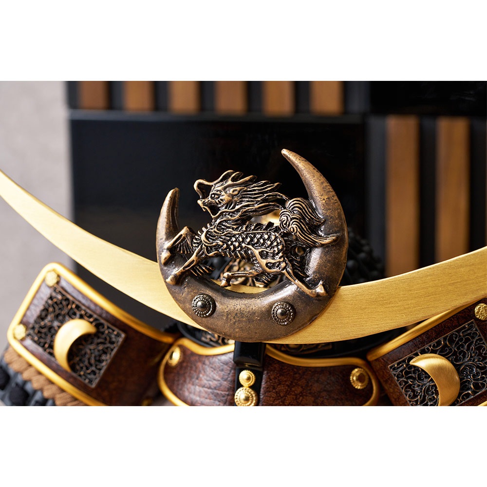 前立の三日月部分に本金鍍金を施した重厚感のある兜は、伝統工芸士・鈴木利光が細部までこだわって手作業で仕上げました。