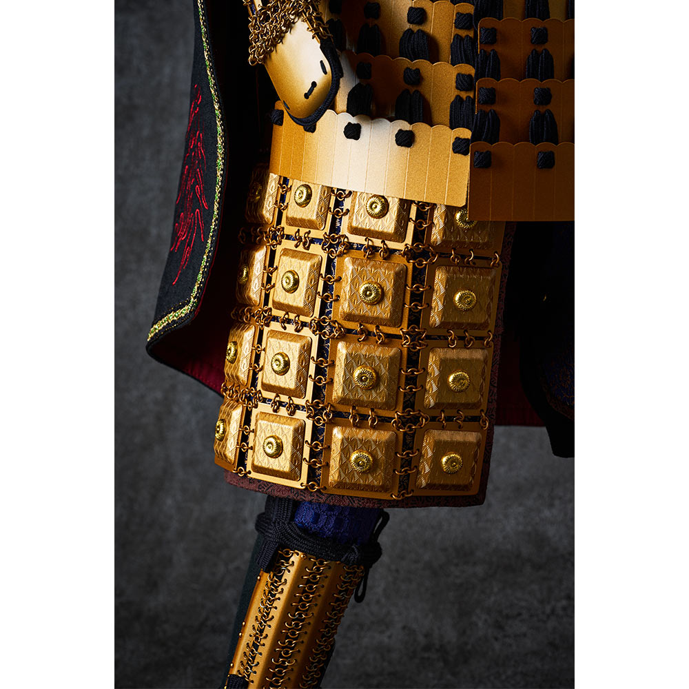 華麗でスタイリッシュな佇まいが魅力の立ち姿の鎧飾りは、伝統工芸士・中村宗光が細部までこだわって丁寧に手作業で表現した、洗練されたデザインが特長の逸品です。