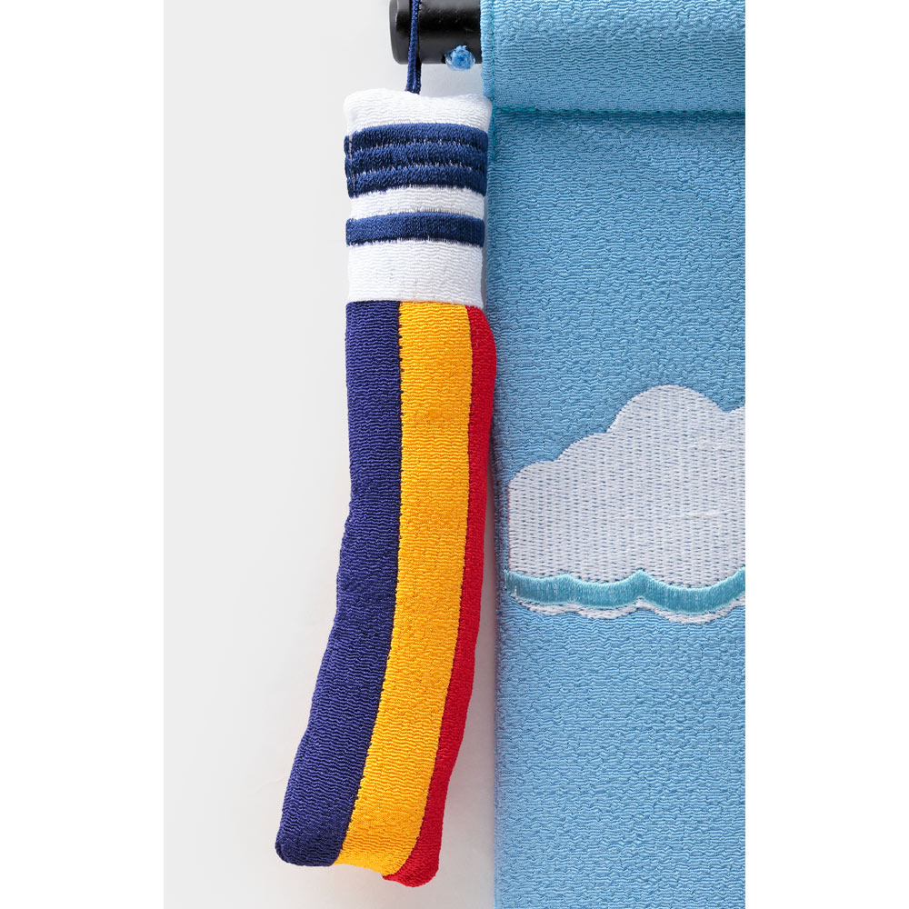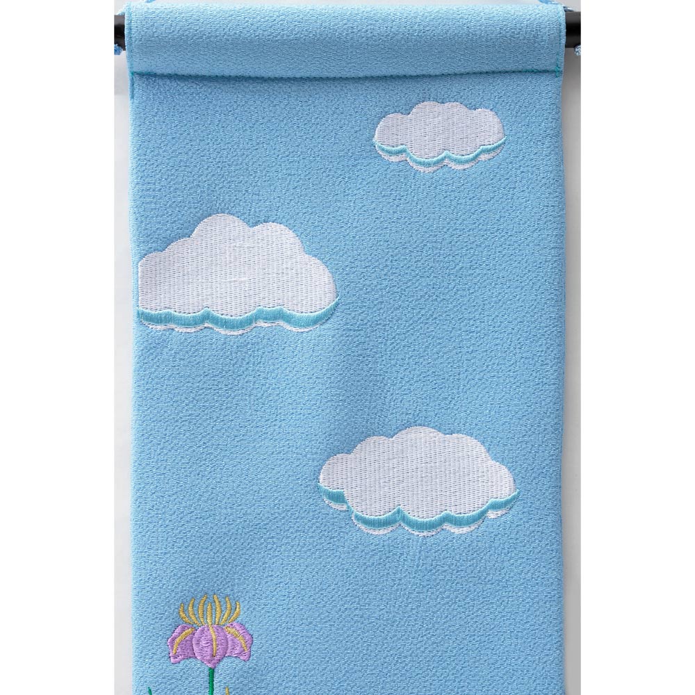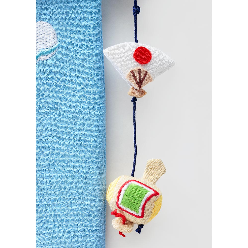 菖蒲をあしらった優美な空色のタペストリーに、大空を泳ぐ愛らしい鯉のぼりが見事にマッチします。