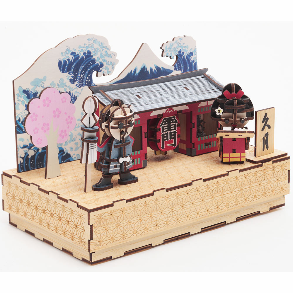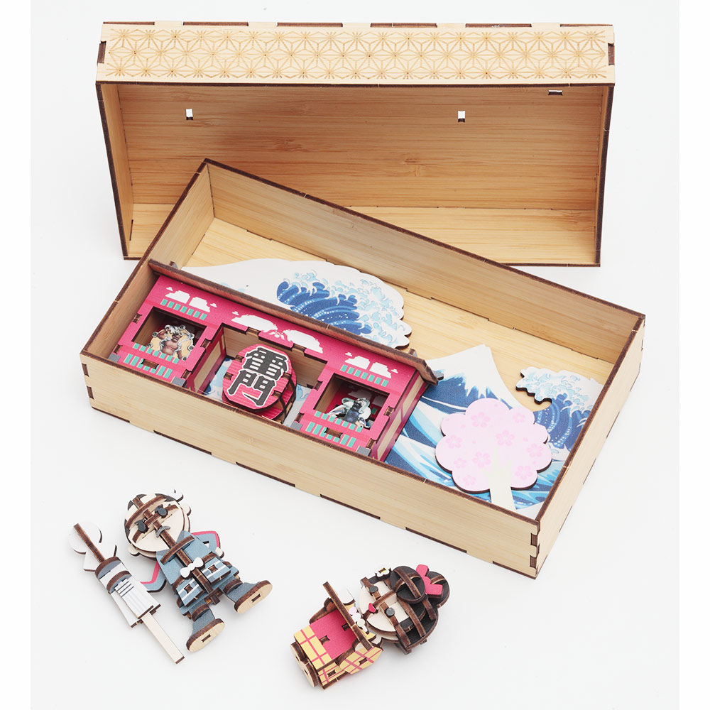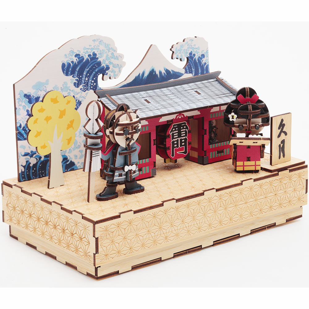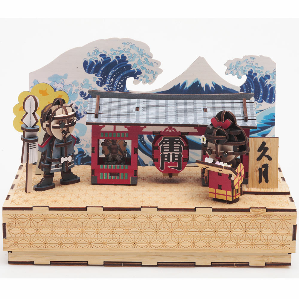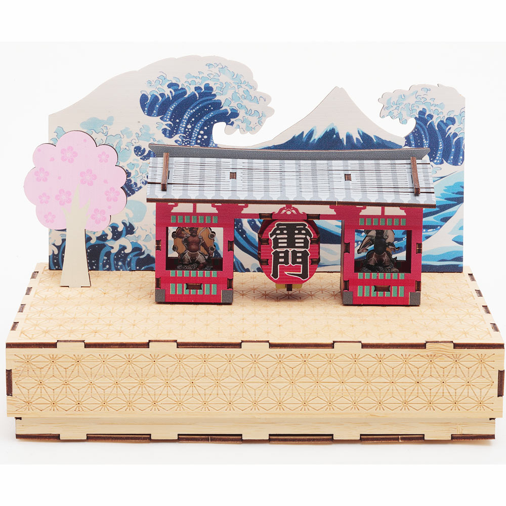 江戸を思わせる雷門、富士山と波のパーツが目を引く手軽に組み立てられる竹製のパズルです。