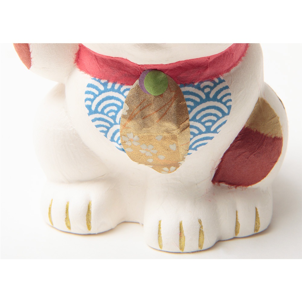 美濃和紙を丁寧に陶器に手貼りした、紙の温もりを感じる招き猫です。
