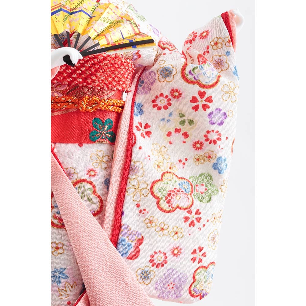 花の模様の中には開運の象徴とされる梅の花や、春に美しく咲き誇るその姿から春の慶びや物事のはじまりの意味を持つ桜の花など縁起の良いモチーフが沢山あしらわれています。