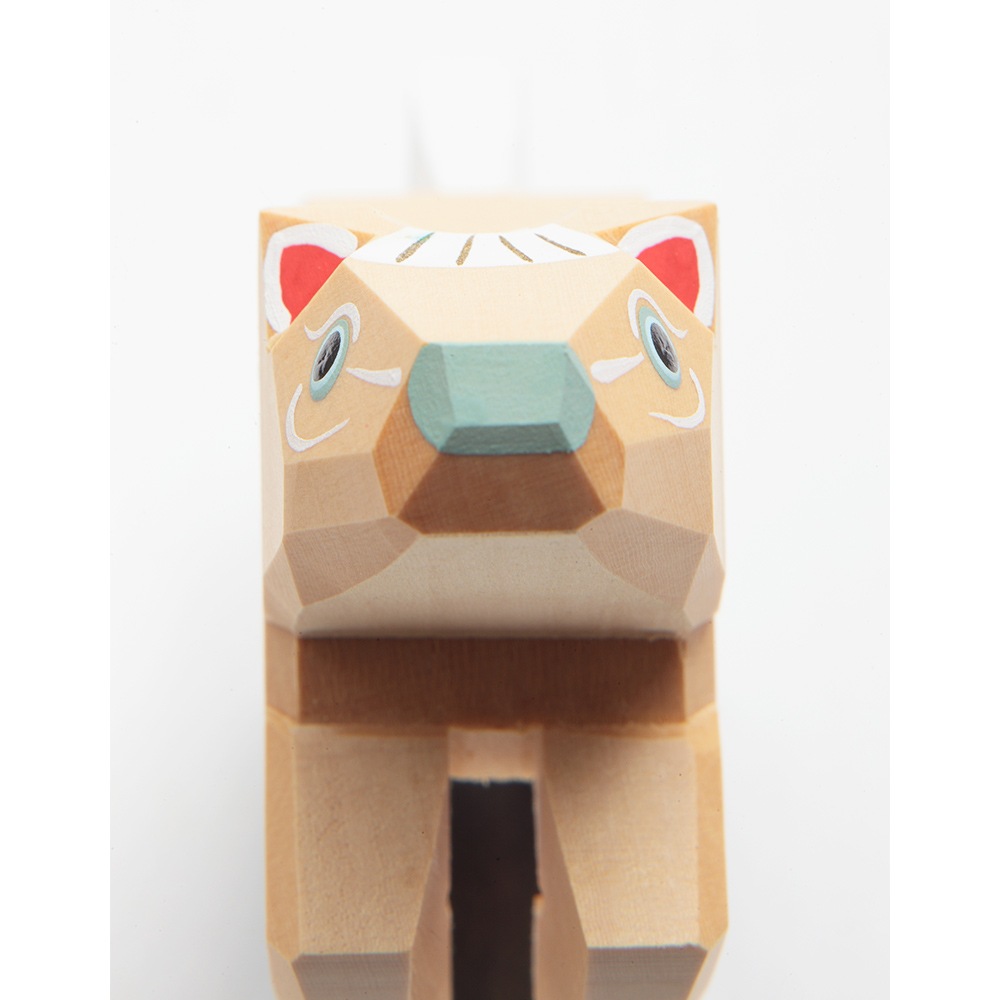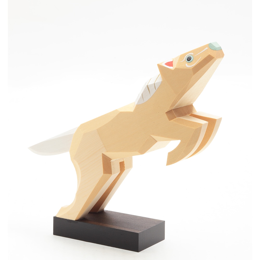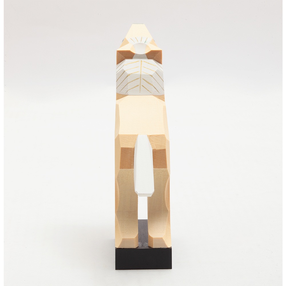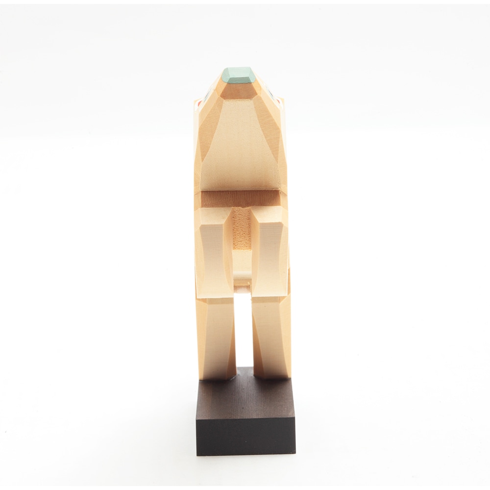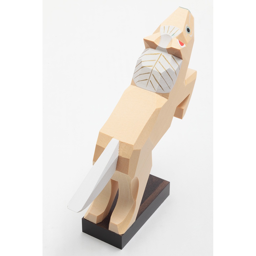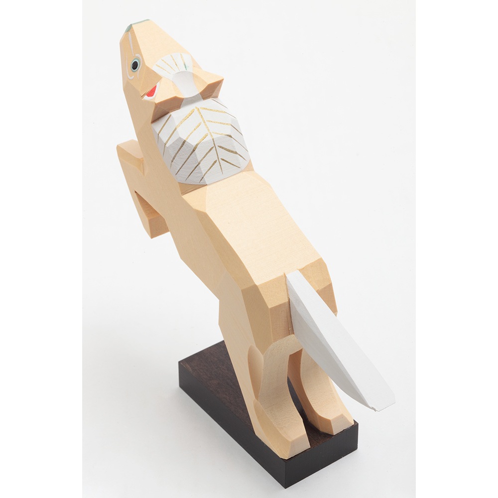 南雲工房作「伊予一刀彫」は、物の形の無駄なラインを取り除いていき、シンプルに表現していく木彫り技法で、独特の淡い彩色を施した優しい雰囲気が特徴です。彫刻刀の切れ味がダイレクトに伝わる味わい深いお人形です。