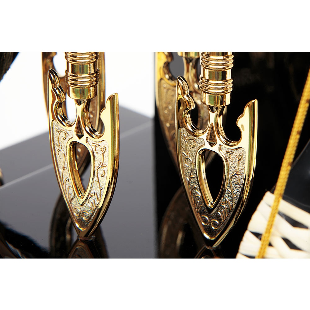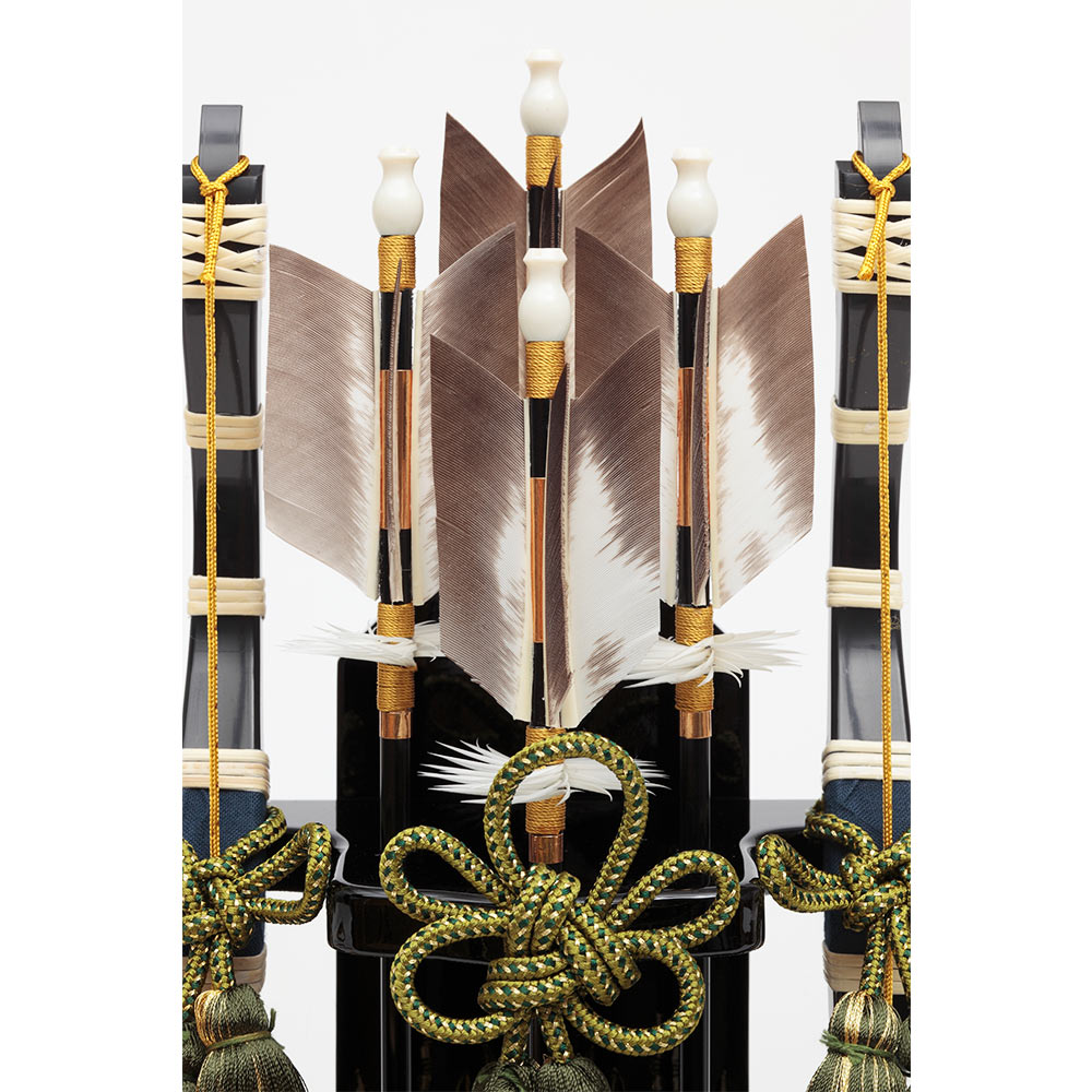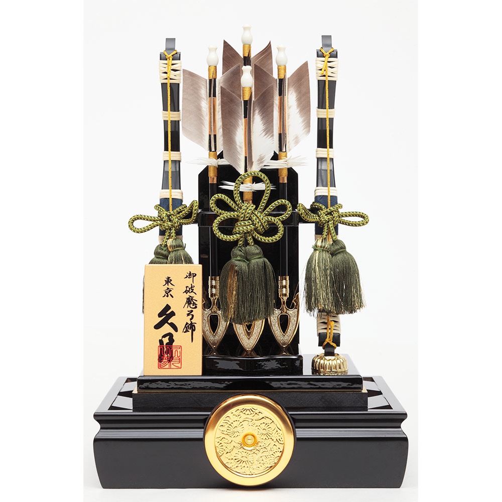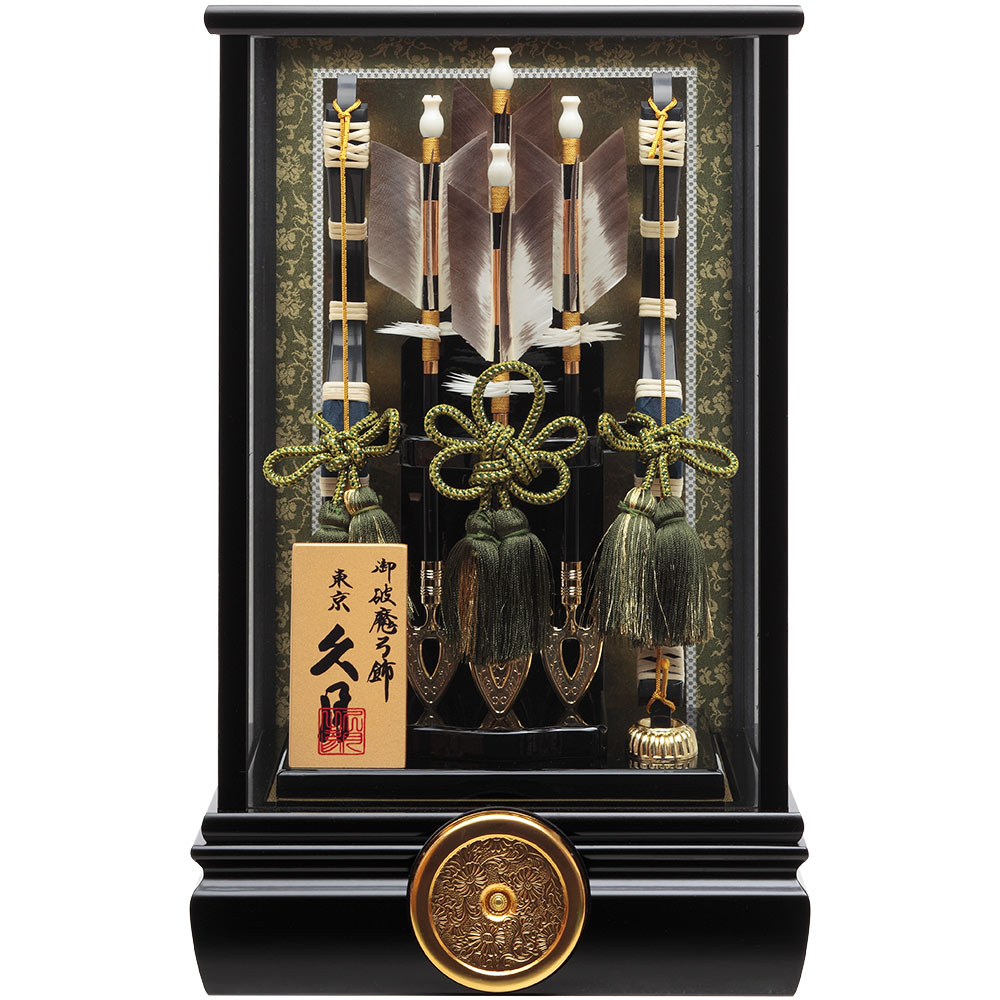 黒塗りのシックなケースが飽きのこない魅力を感じさせる、根強い人気を誇る破魔弓飾りです。
