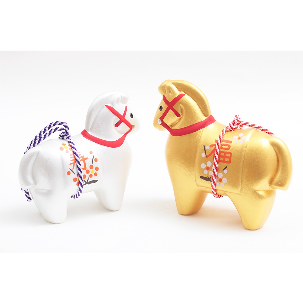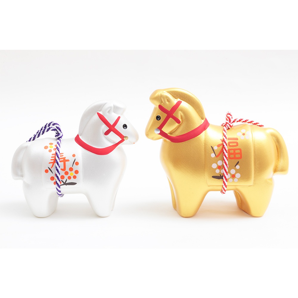 華やかな雰囲気を醸し出す銀色と金色の午にはそれぞれ「寿」、「福」の文字が入っています。