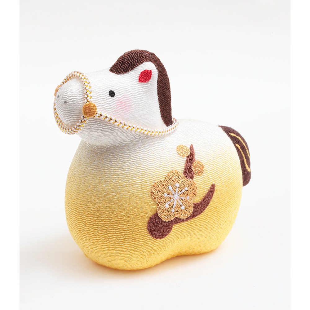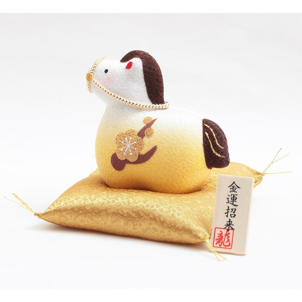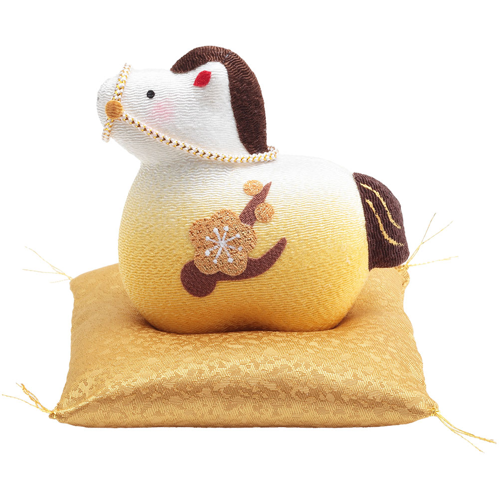 金色の座布団にちょこんと乗った姿が可愛らしい午の干支飾りです。