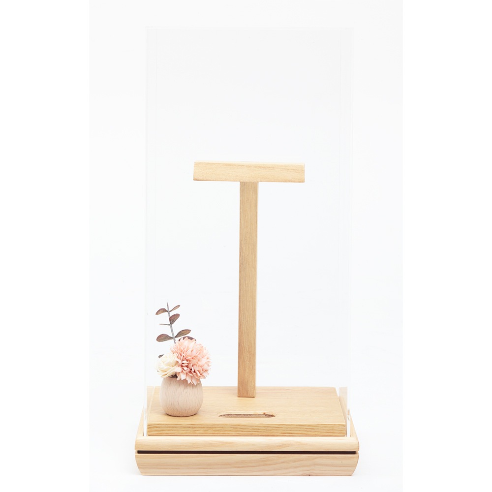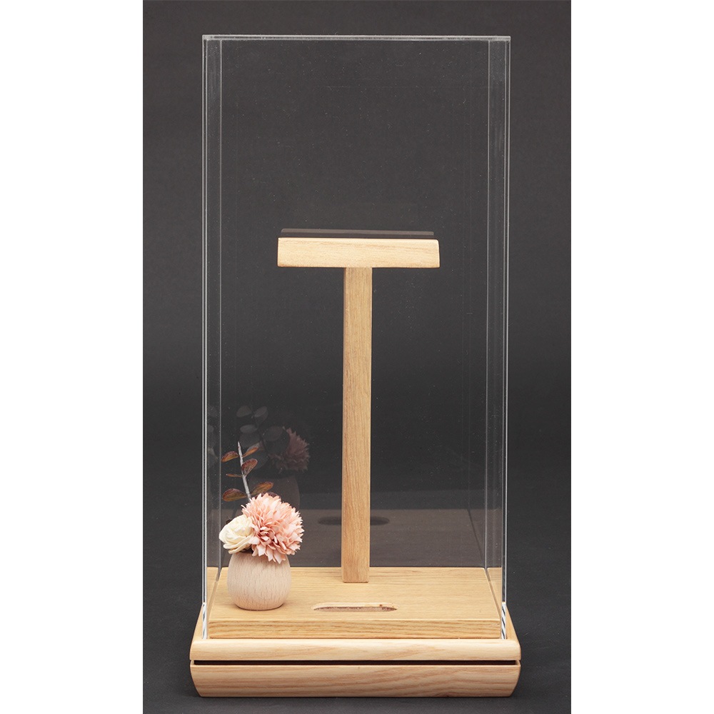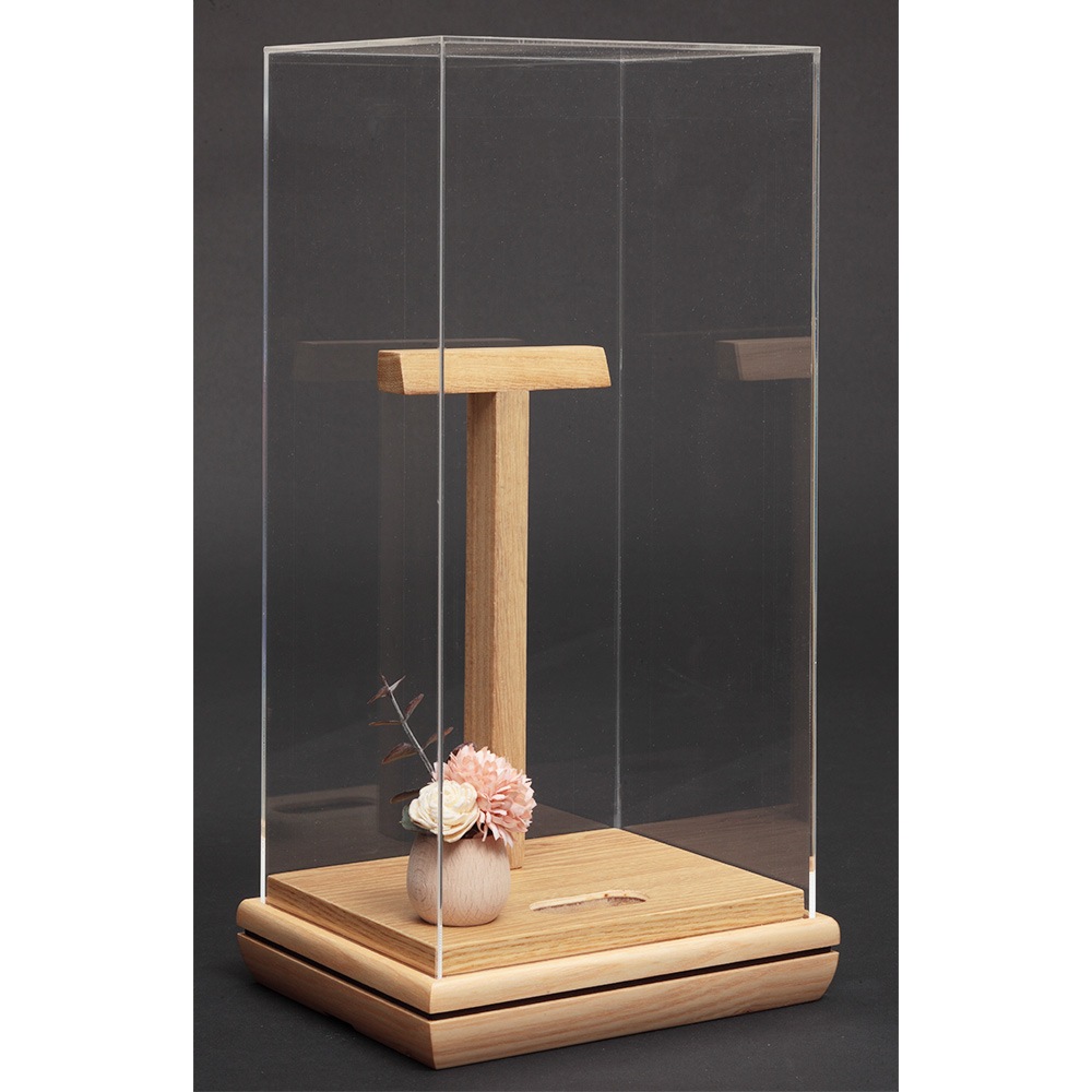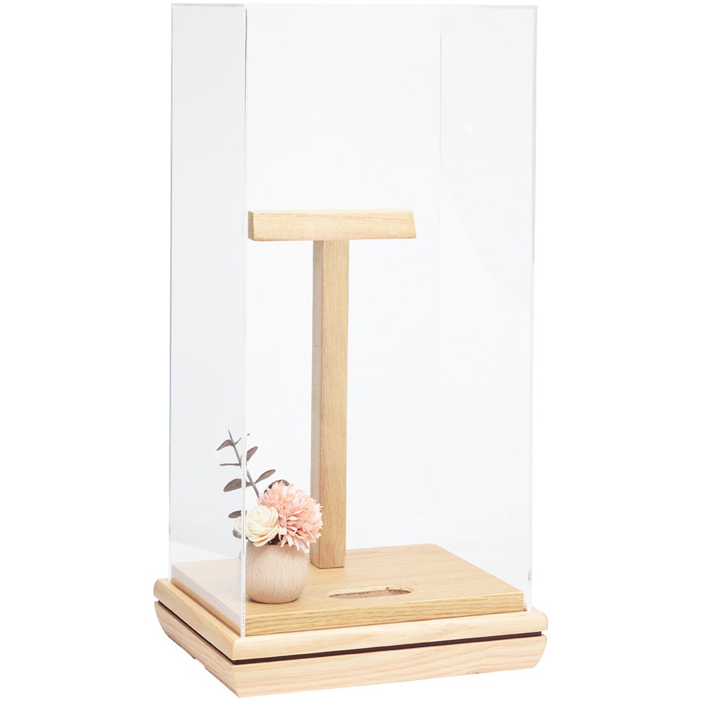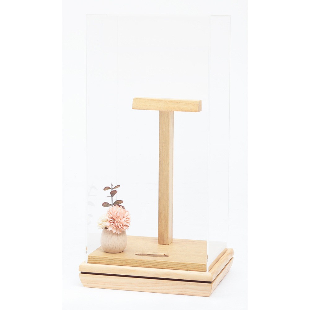 あたたかみのある木目とアクリルケースが羽子板を引き立てます。
