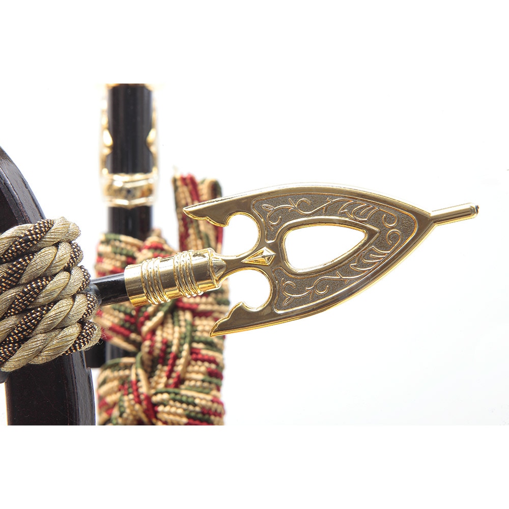 カーキ色と黒色のケース背景にあしらわれた金色の麻の葉文様がアクセントになり、華麗な雰囲気を醸し出しています。