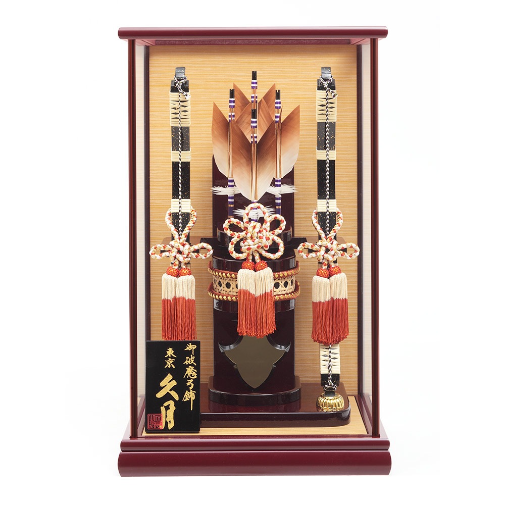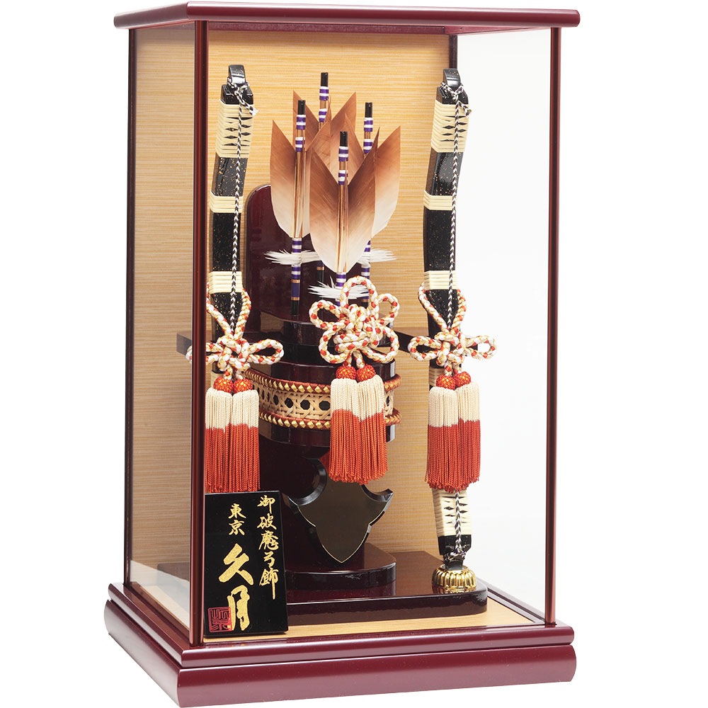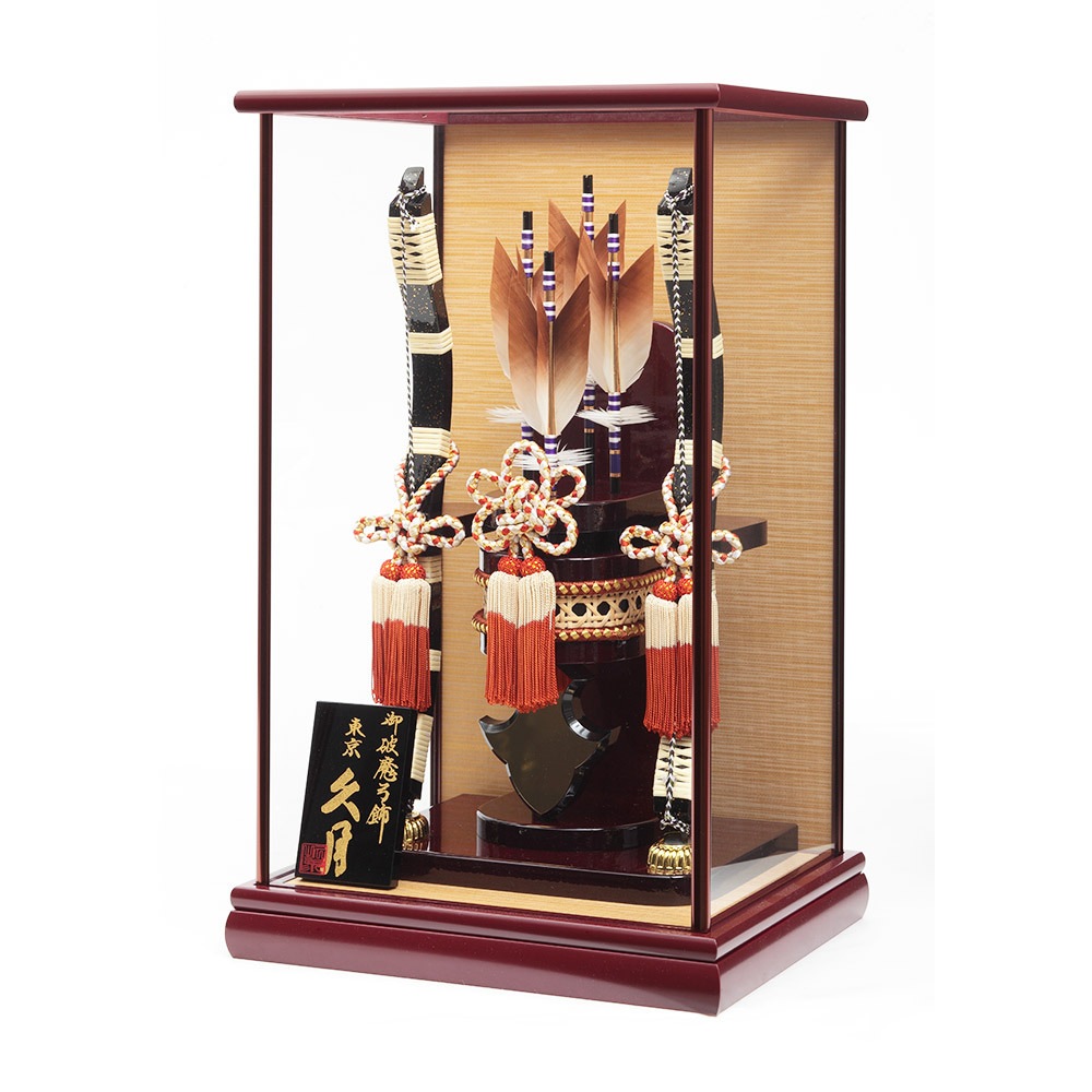 ワインレッドを基調としたケースが高級感ある破魔弓飾りです。