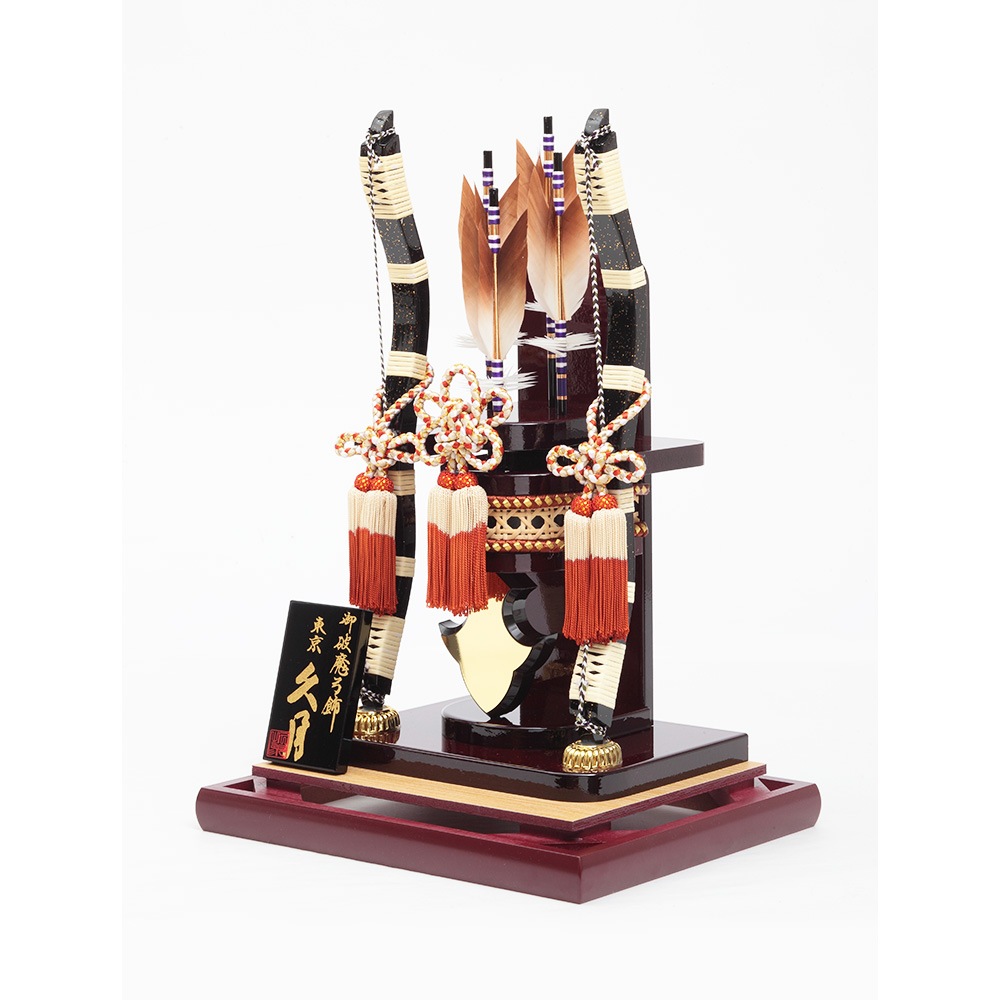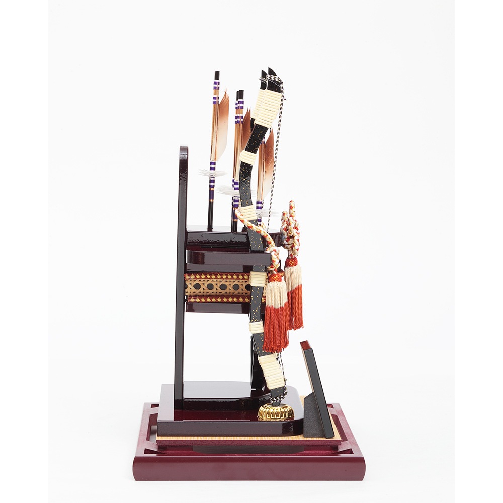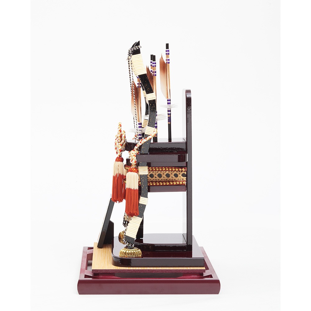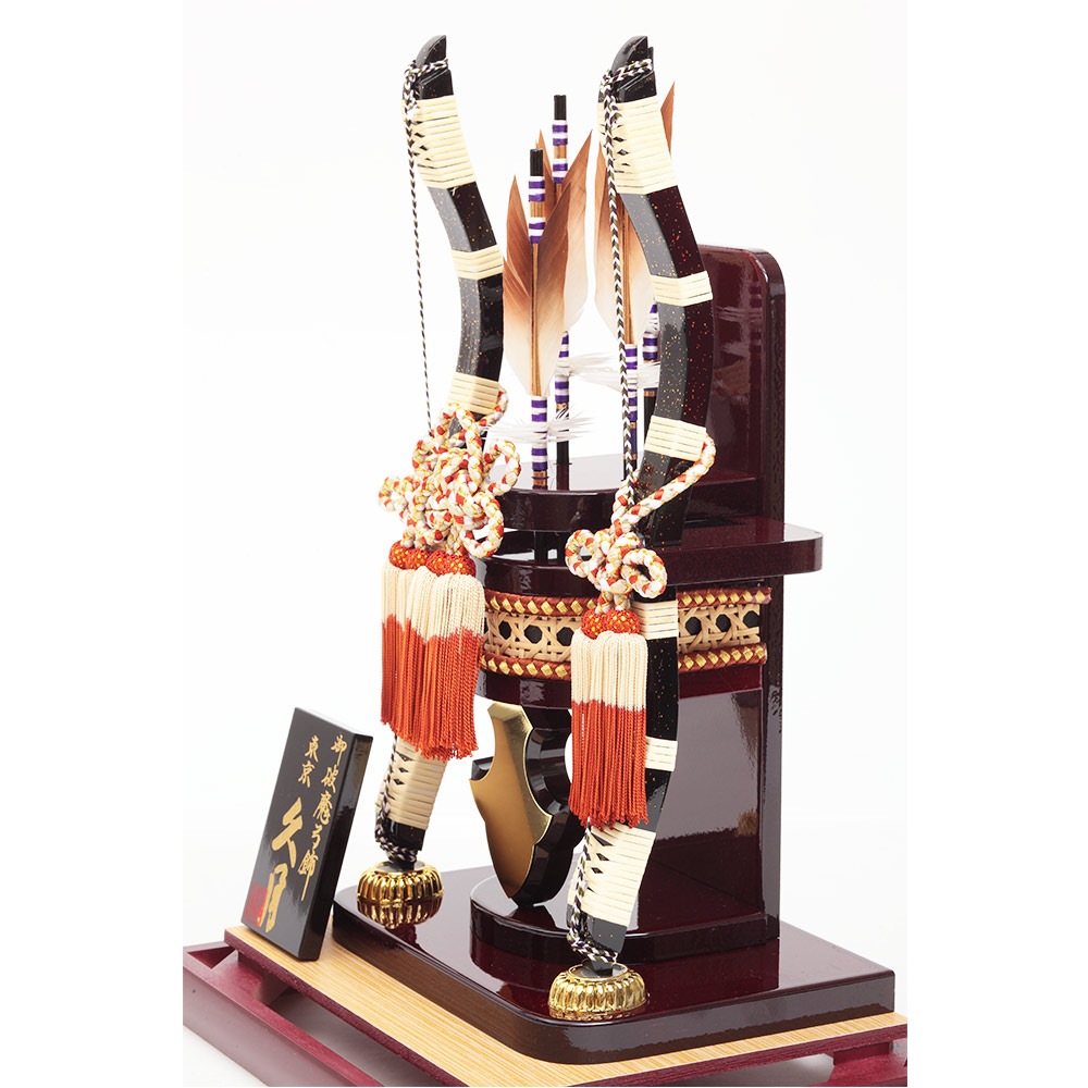 ワインレッドを基調としたケースが高級感ある破魔弓飾りです。