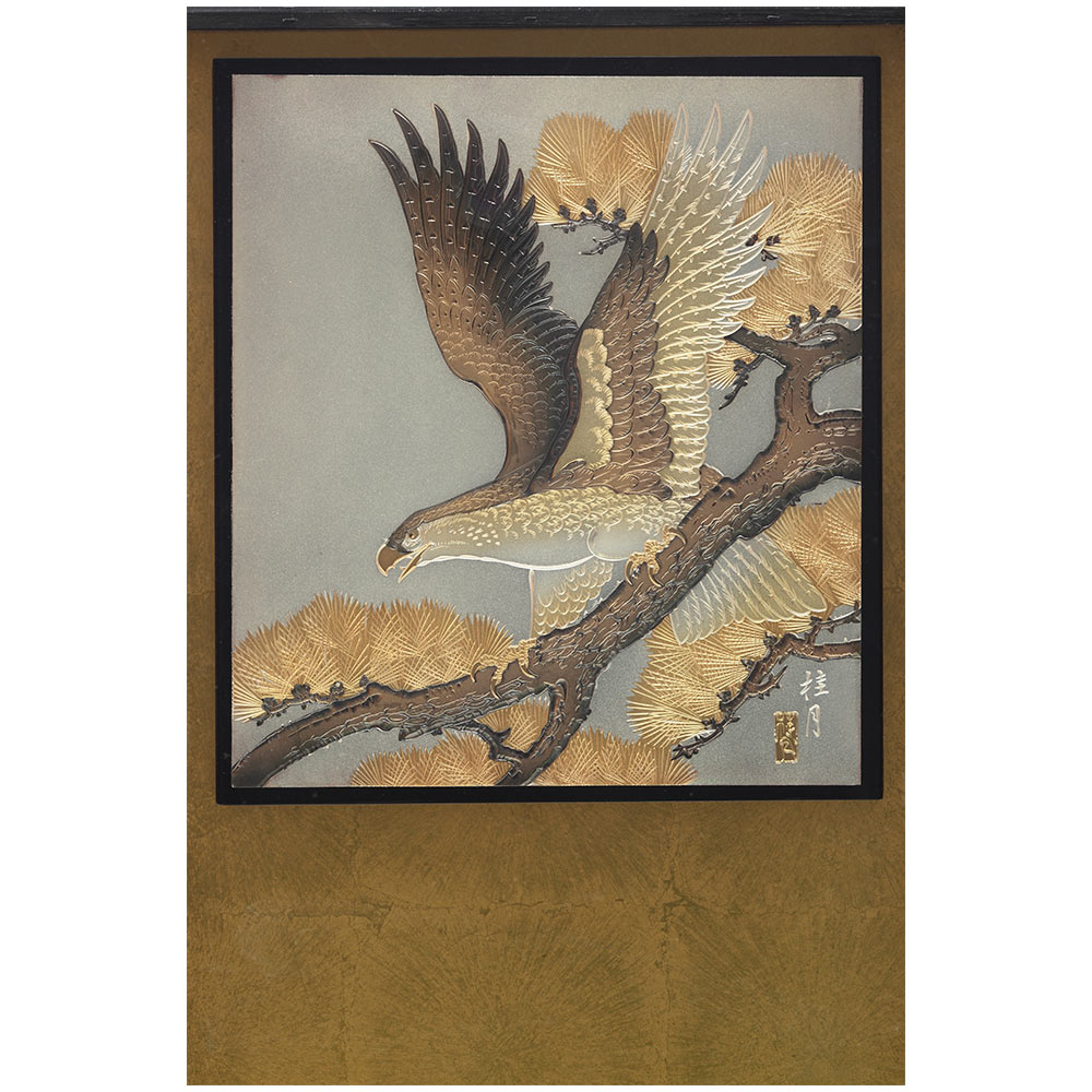 上昇を意味する龍は立身出世を、美しく飛翔する鷹は飛躍を、年中枯れることの無い松は生命力を象徴しており、男の子のお祝いに相応しい大変縁起の良いモチーフです。
