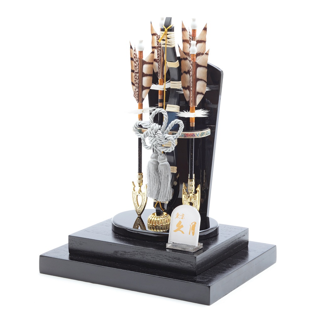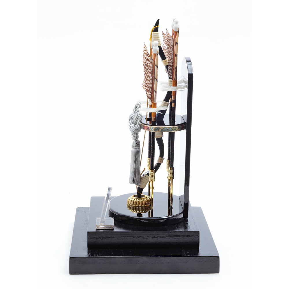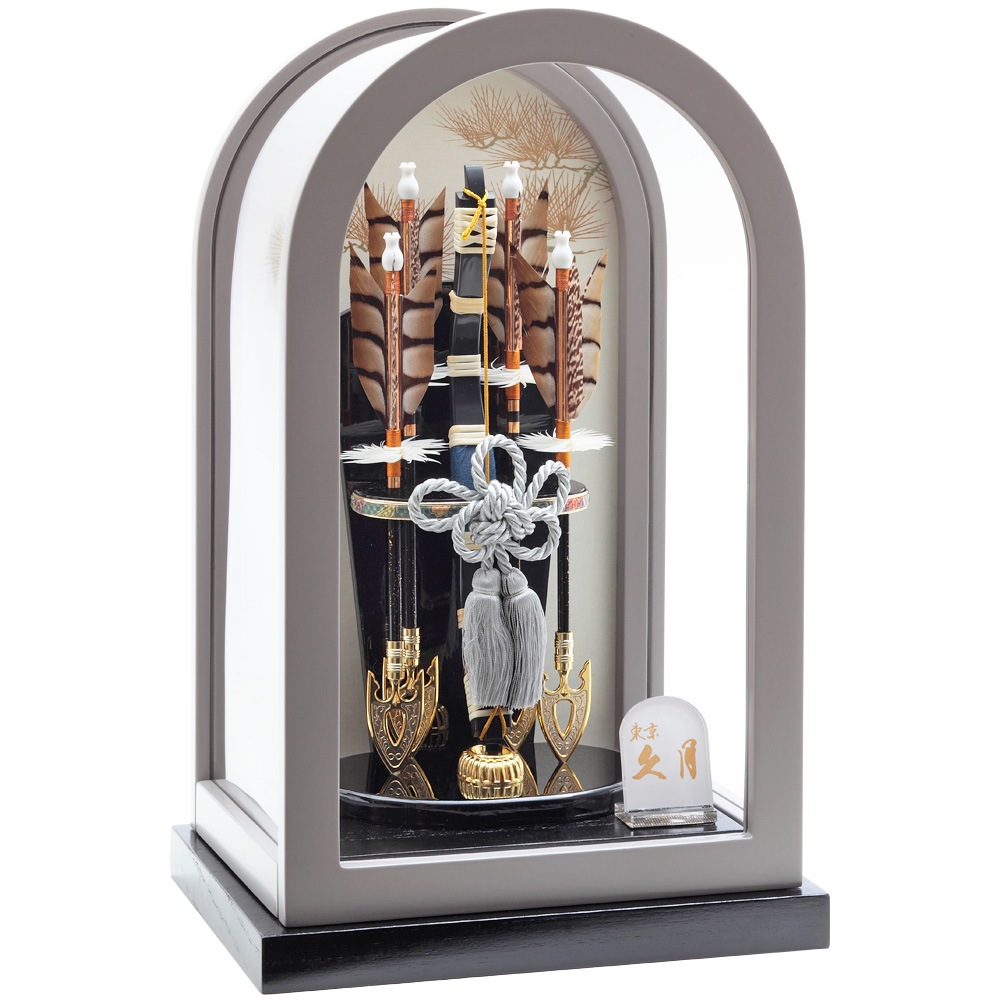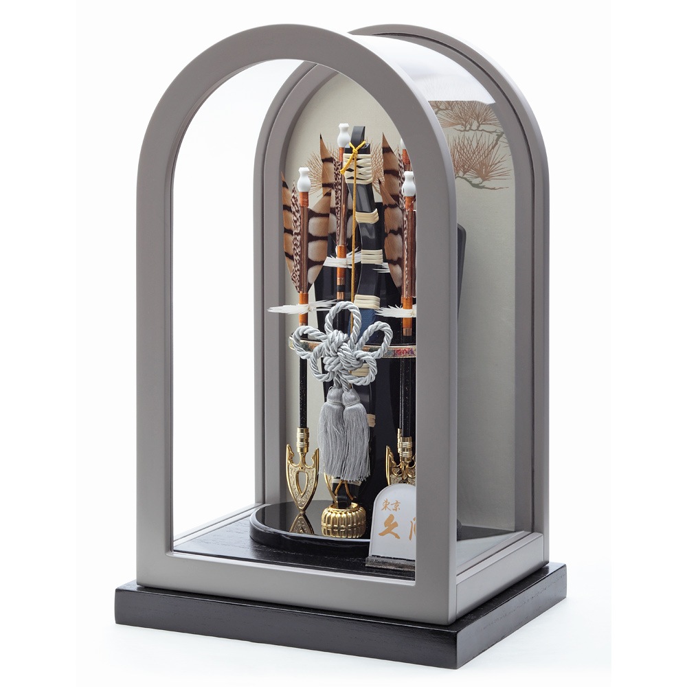 ドーム型のケースが目をひくモダンなデザインの破魔弓飾りです。