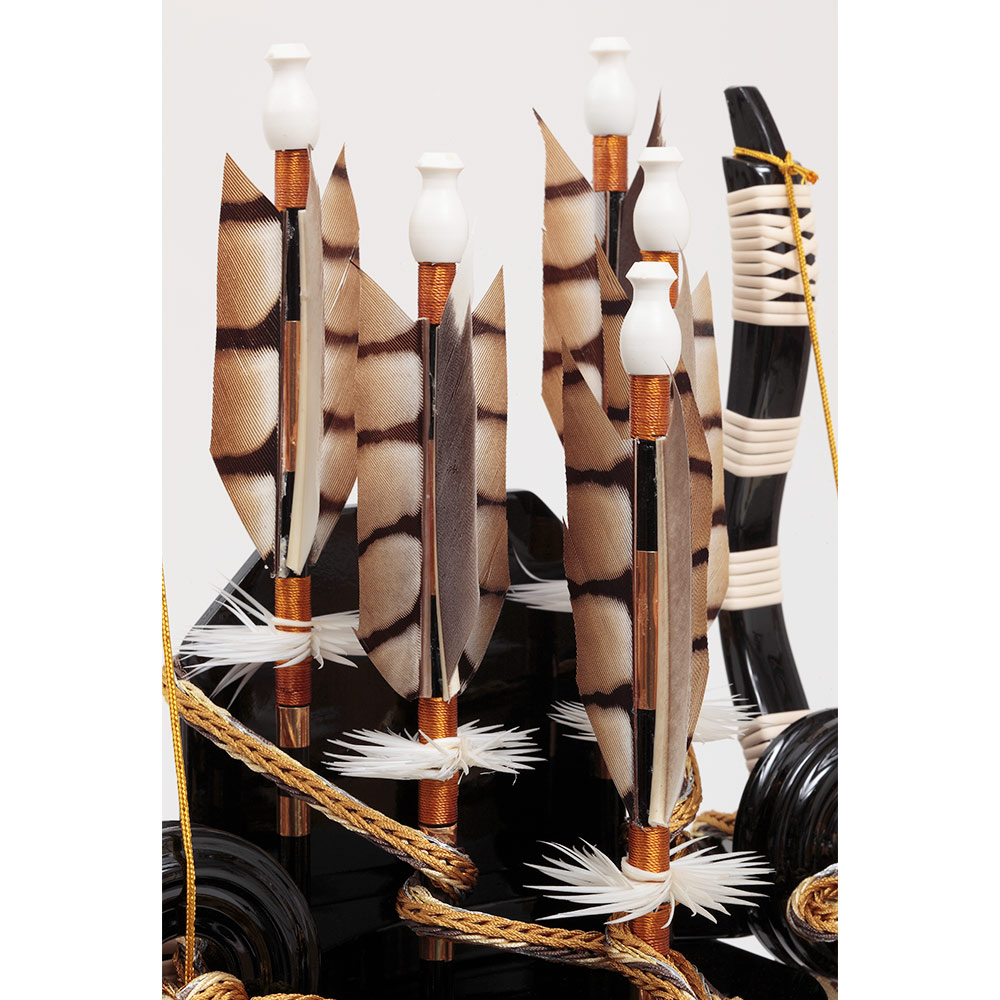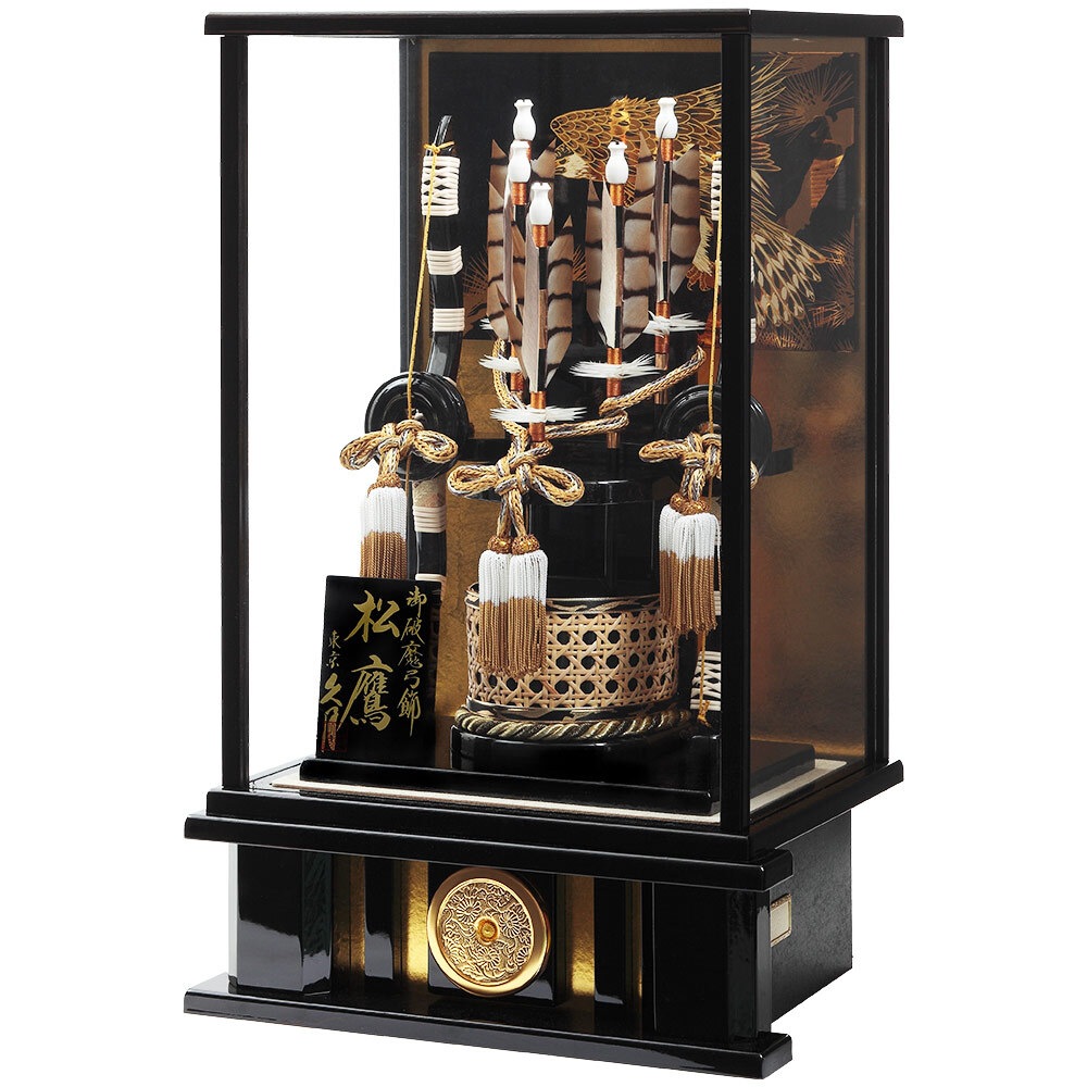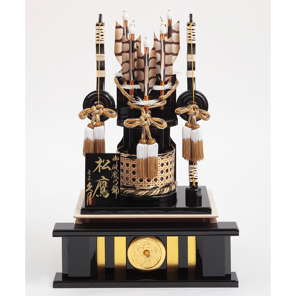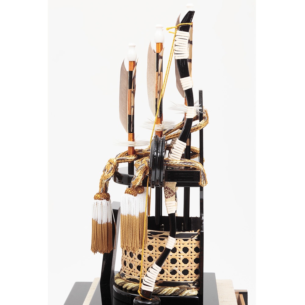 黒塗りのシックなケースが飽きの来ない魅力を感じさせる、根強い人気を誇る破魔弓飾りです。