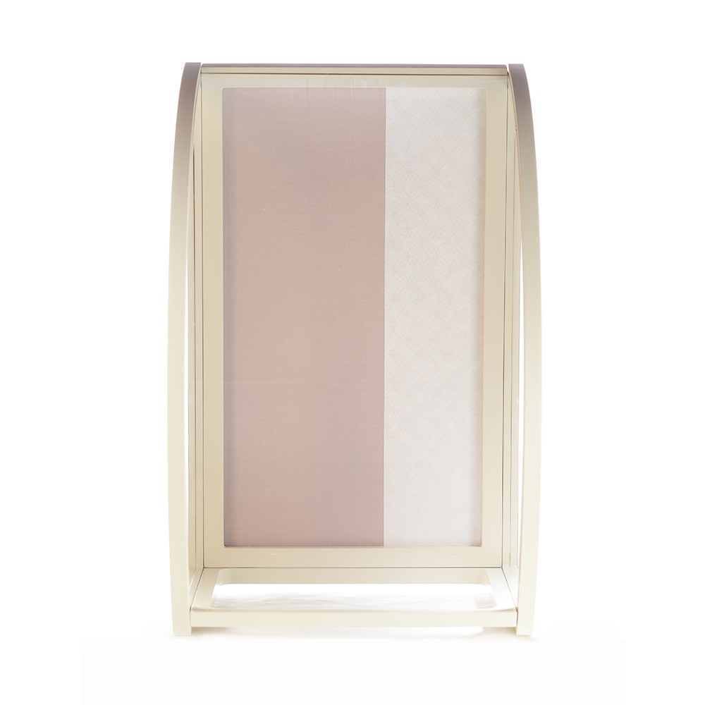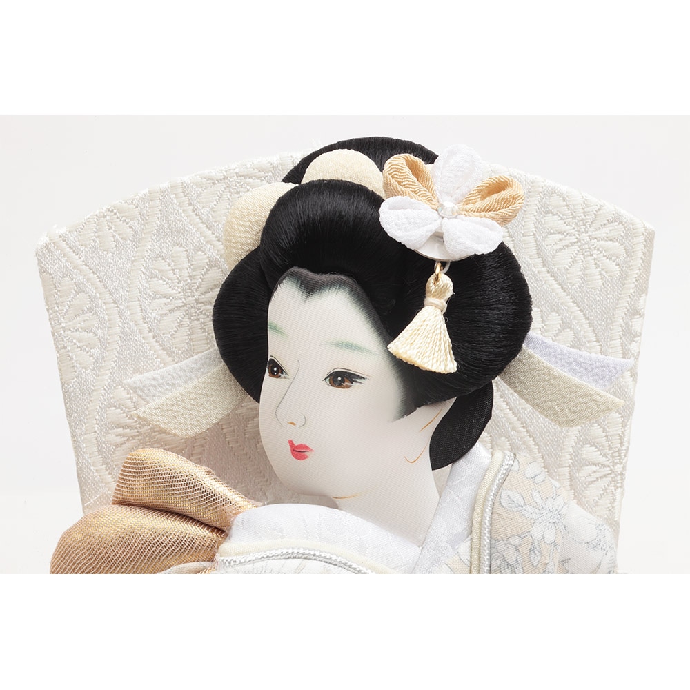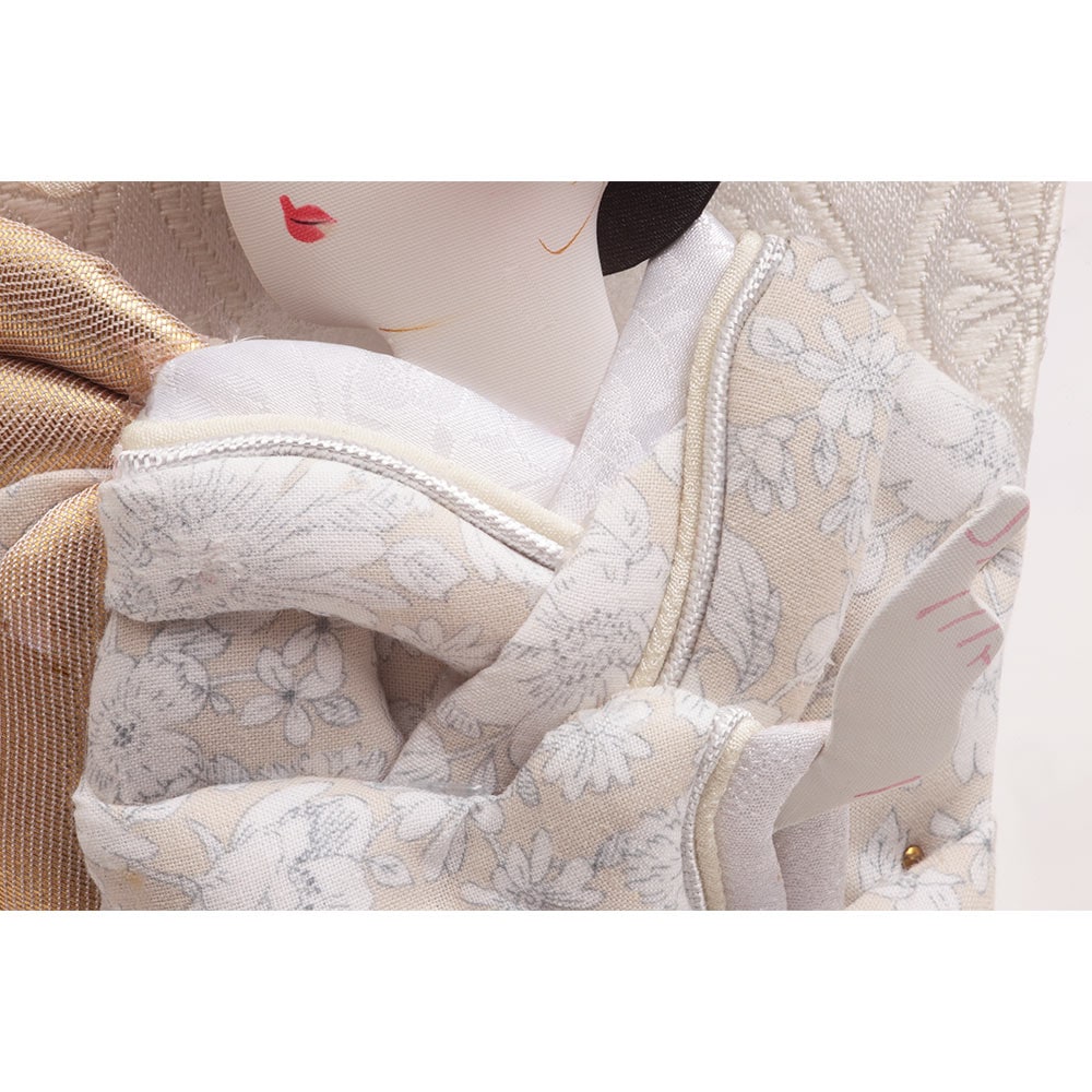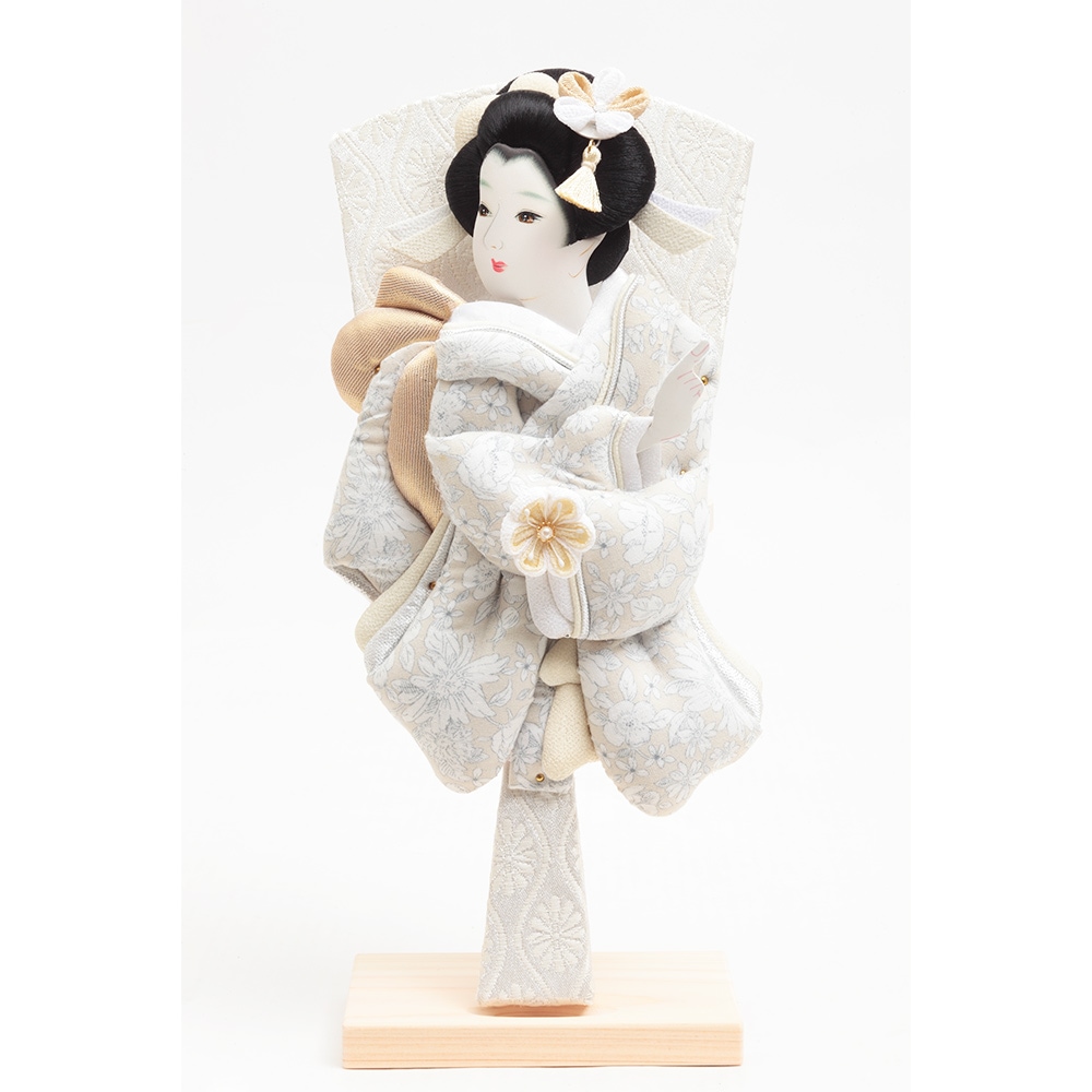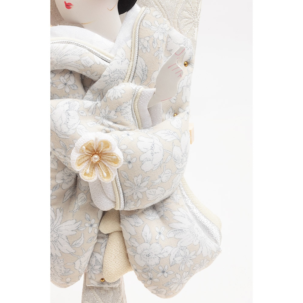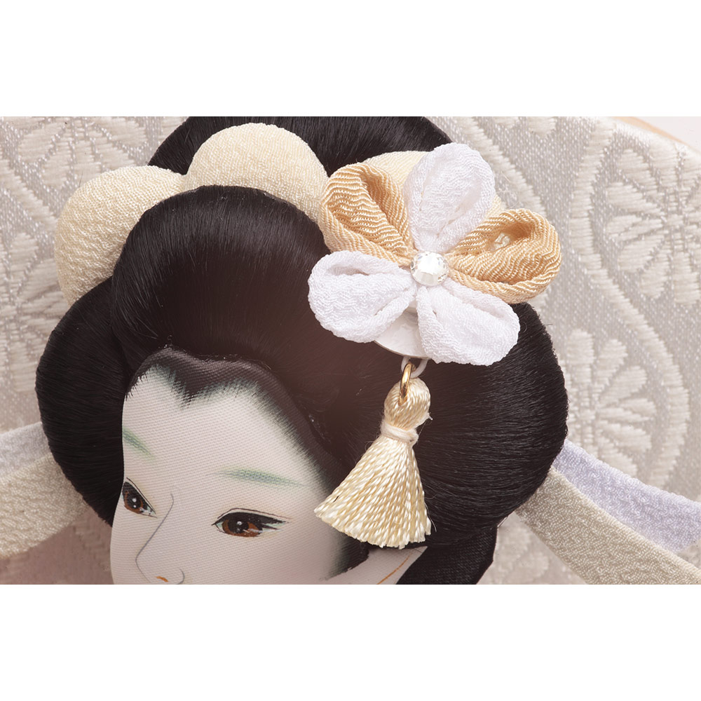 柔らかな印象を与える、アイボリーを基調にした羽子板飾りです。
