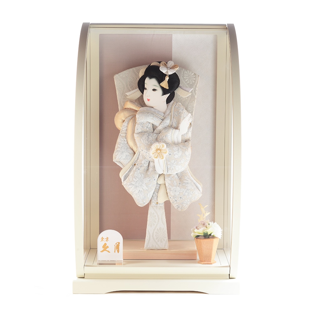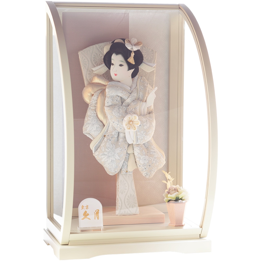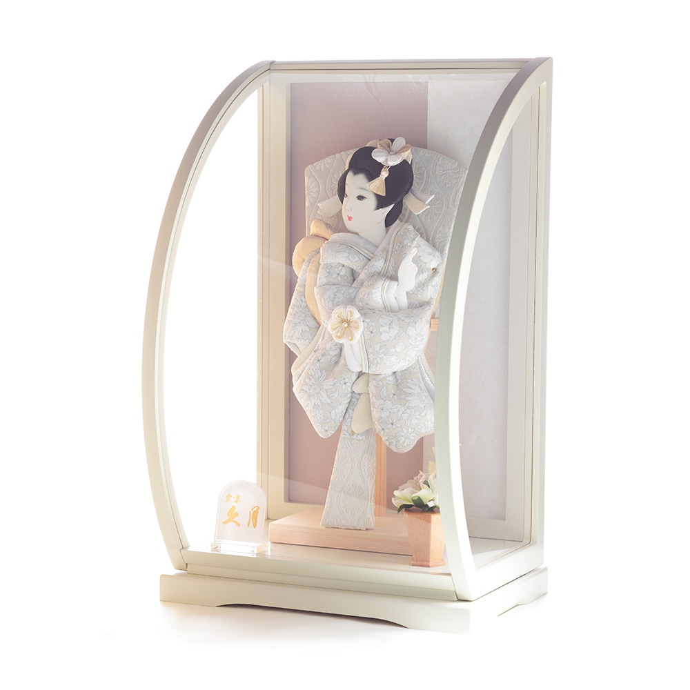 現代のインテリアにも違和感無くマッチする、久月オリジナルの丸みを帯びたR型のケースにボタニカル柄の羽子板が映えます。