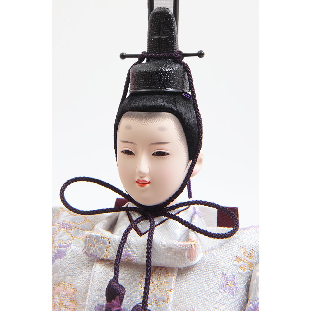 木肌のナチュラルな魅力を印象的に表現したケースに添えた、衣裳と色彩を合わせたお道具も全体の統一感をより高める、洋間にも違和感無くマッチする人気のおひなさまです。